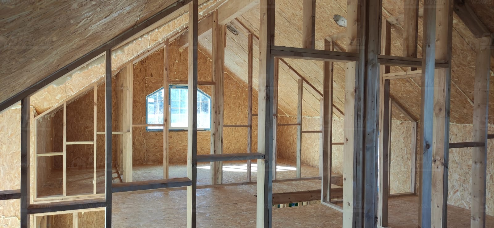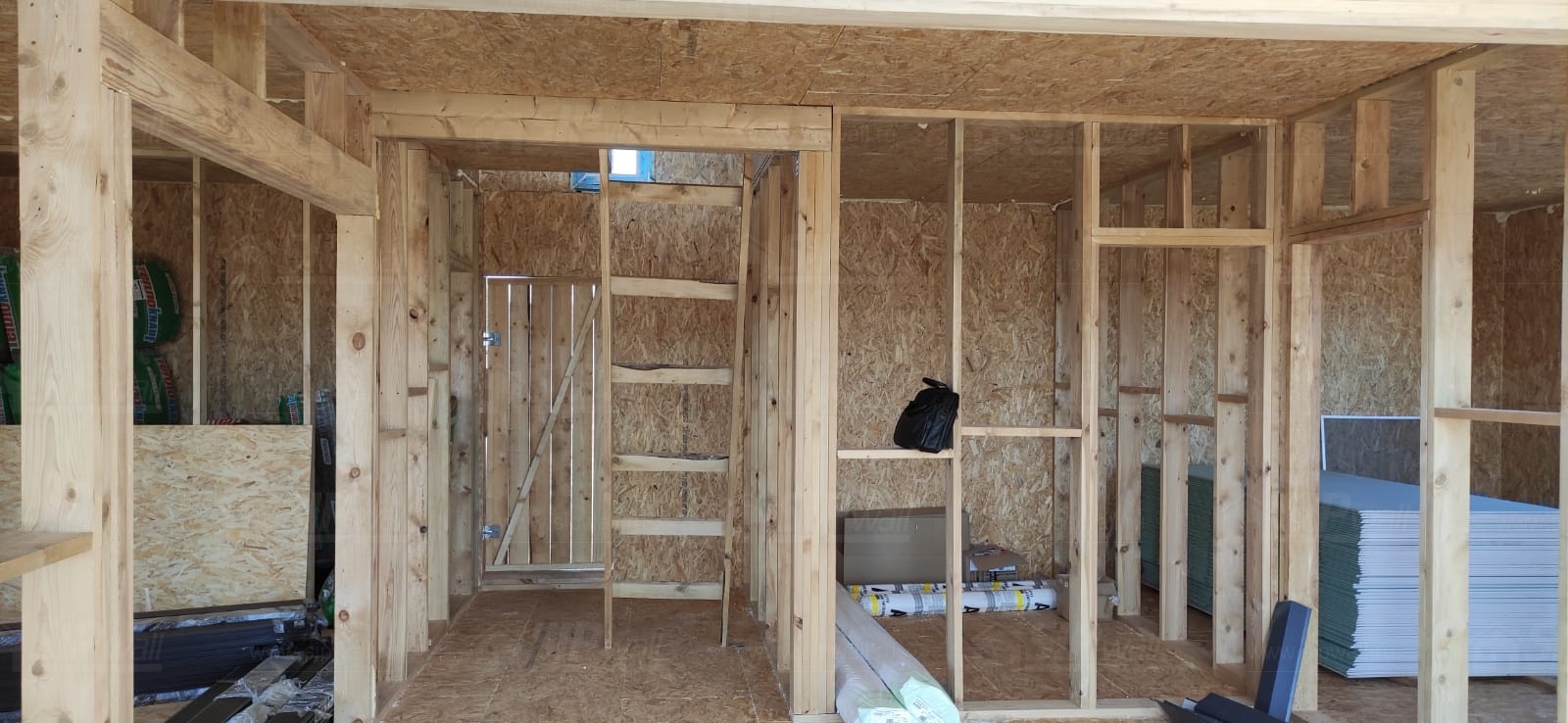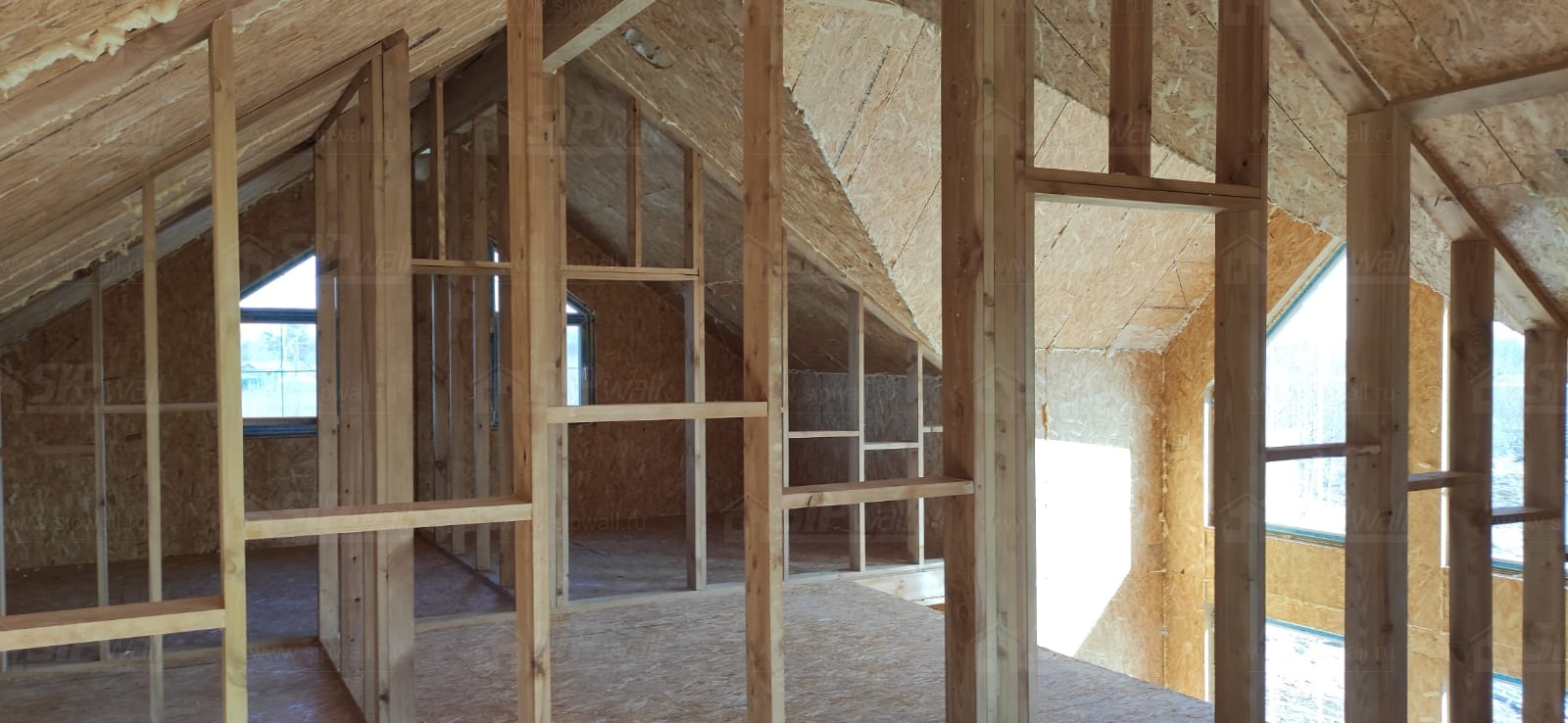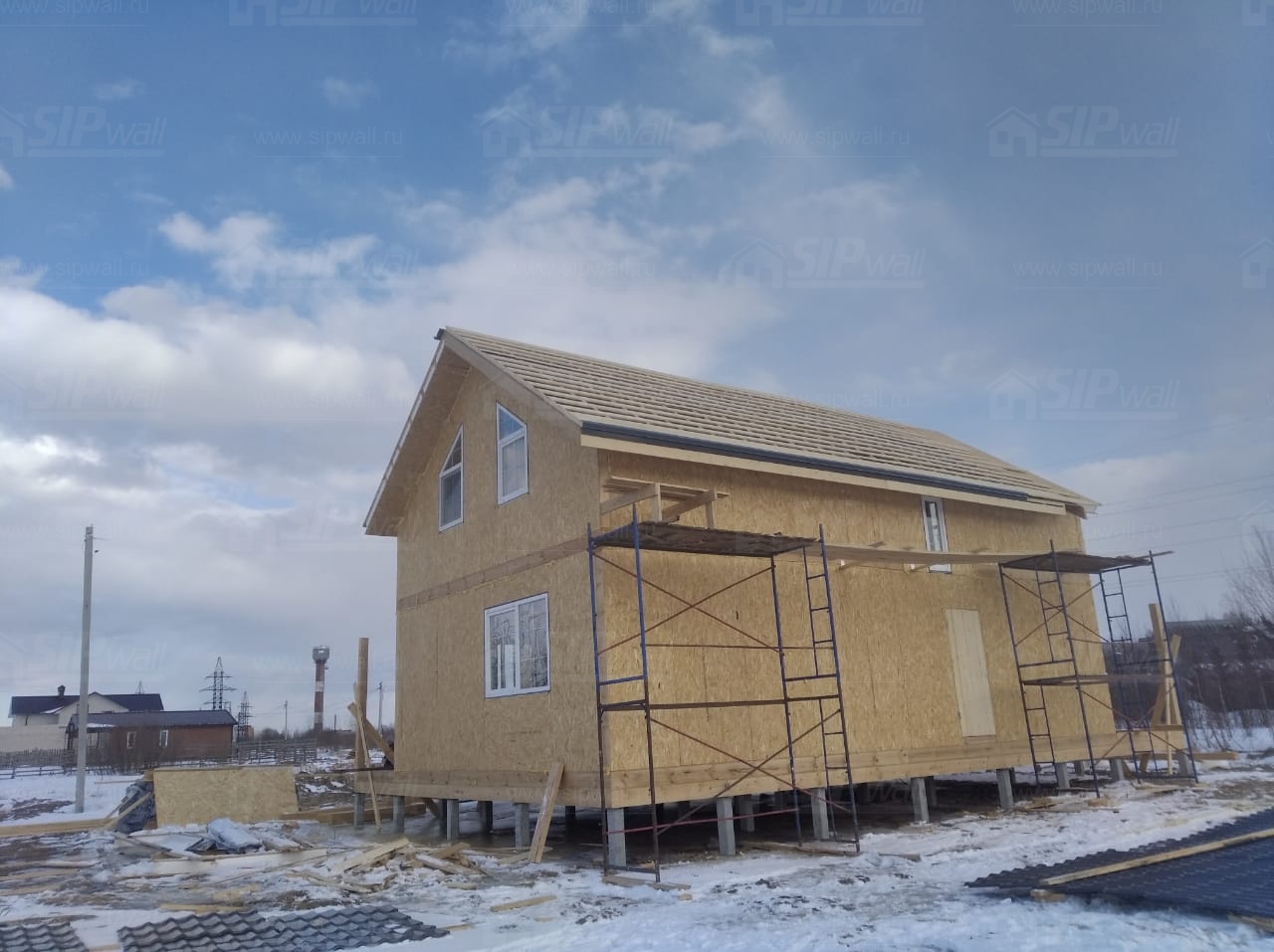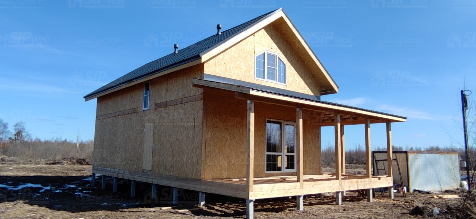 Все СИП панели SIPwall толщиной 224/174/124 мм (плиты OSB-3 толщиной 12 мм "Калевала" Россия и фасадный пенополистирол ППС-14 толщиной 200/150/100 мм производства, Россия) нарезаны и обрусованы сухим строганным брусом камерной сушки в соответствии с проектной документацией.