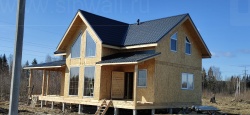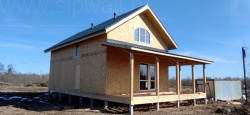 Домокомплект - изготовлен по проекту из СИП панелей произведенный по технологии SIPwall (ЭКОПАН) на собственном заводе расположенном в г. Шуя, Ивановской области. При изготовлении домокомплекта панельно каркасного дома используется только сухой строганный брус камерной сушки, обработанный огнебиозащитным составом.