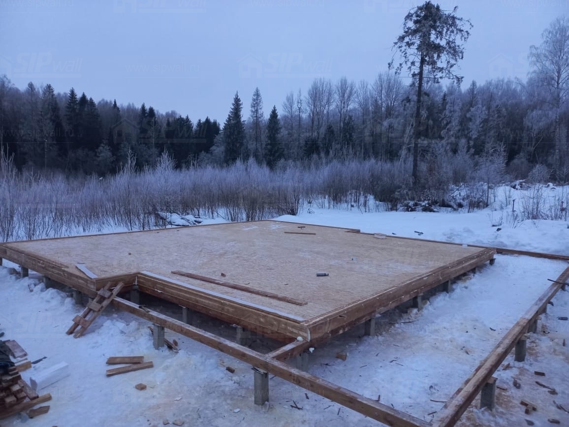 Комплектация домокомплекта: перекрытие на отметке +0.000 - СИП - 174У мм, несущие стены дома выполнены из СИП панелей 174 мм, внутренние несущие стены - СИП 174 мм, не несущие стены - СИП 124 мм Кровля - СИП 174У.