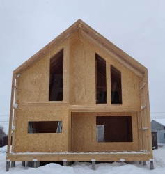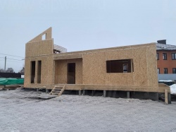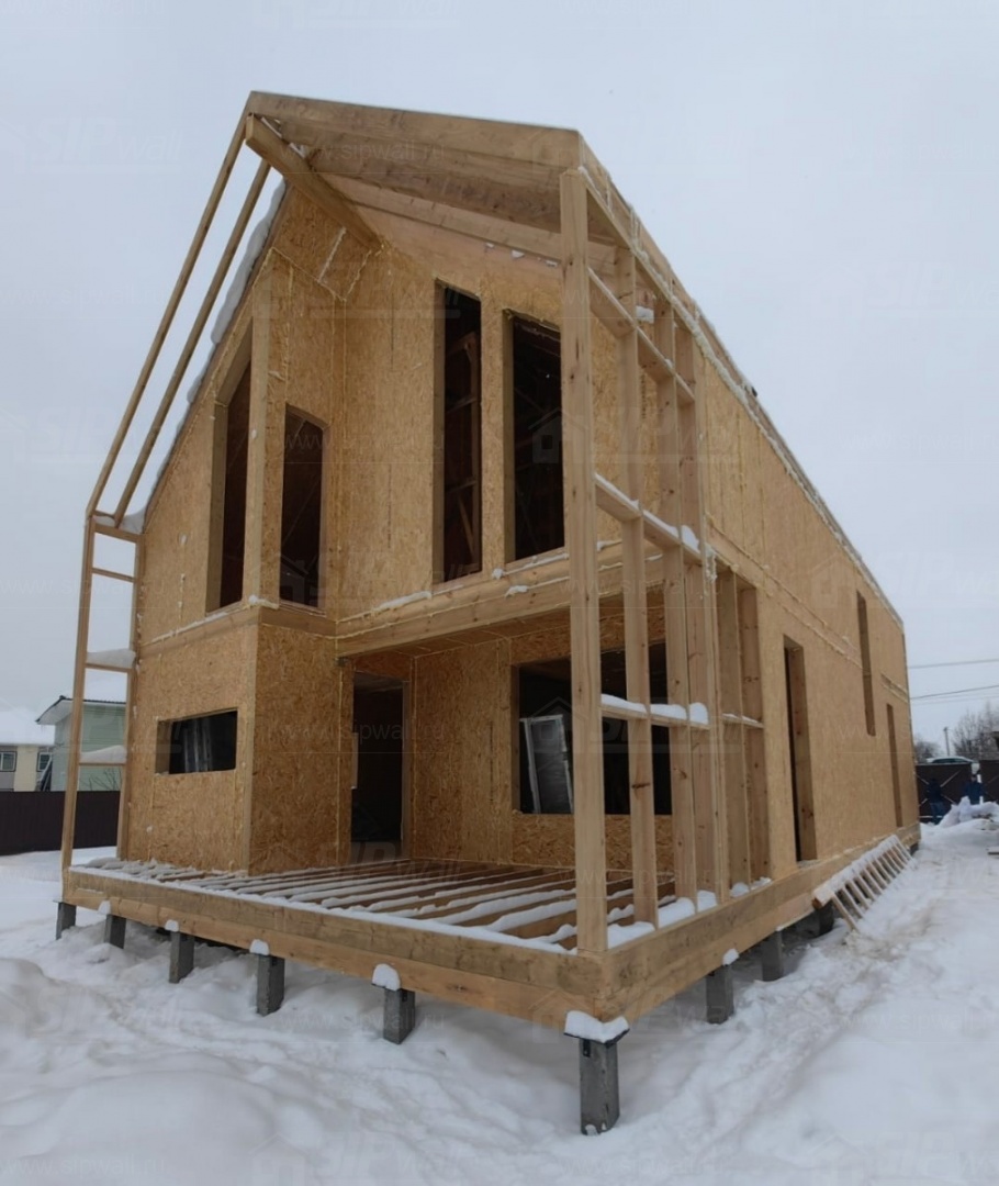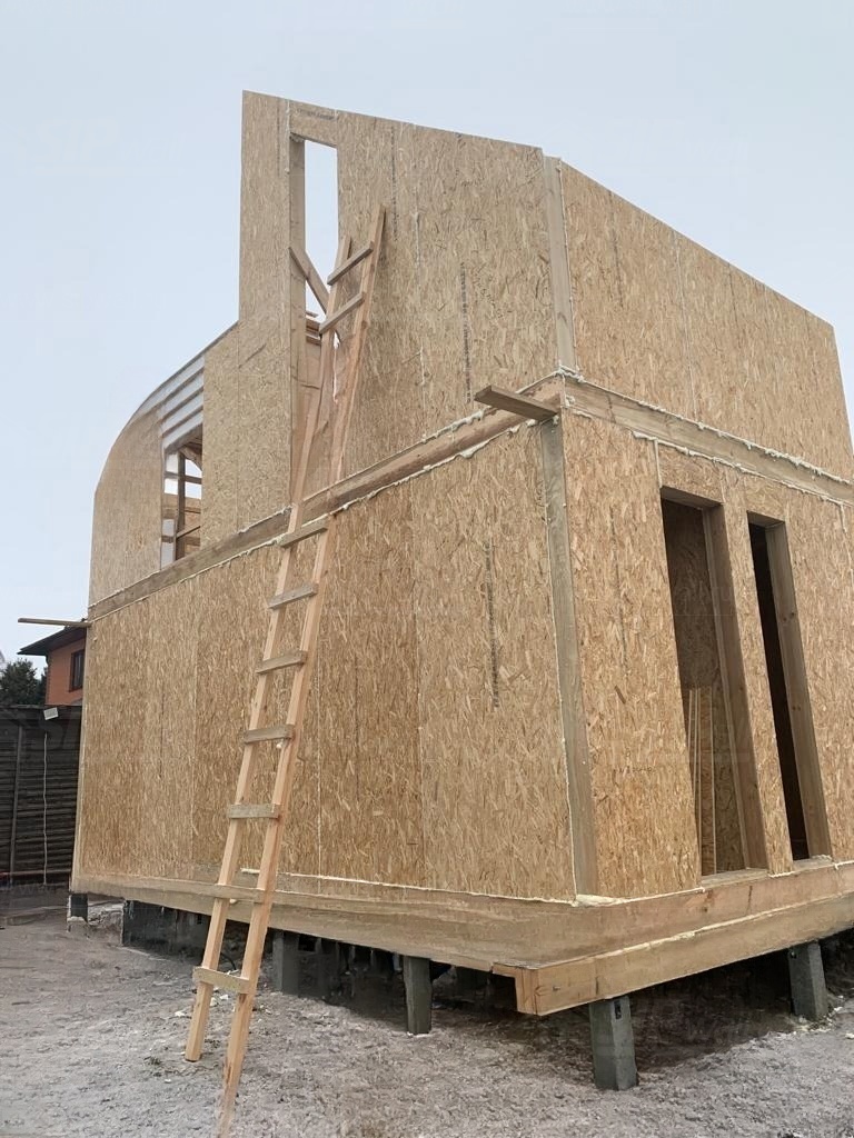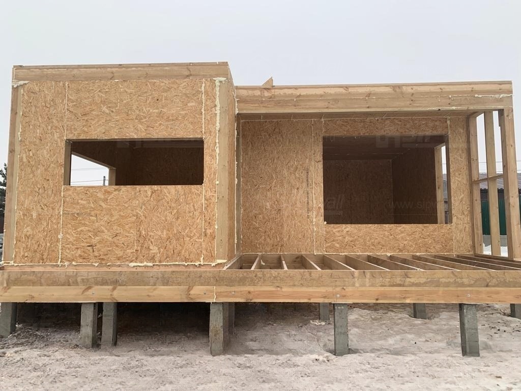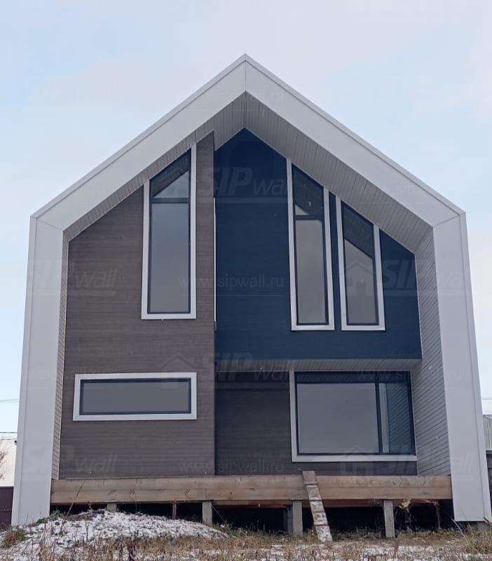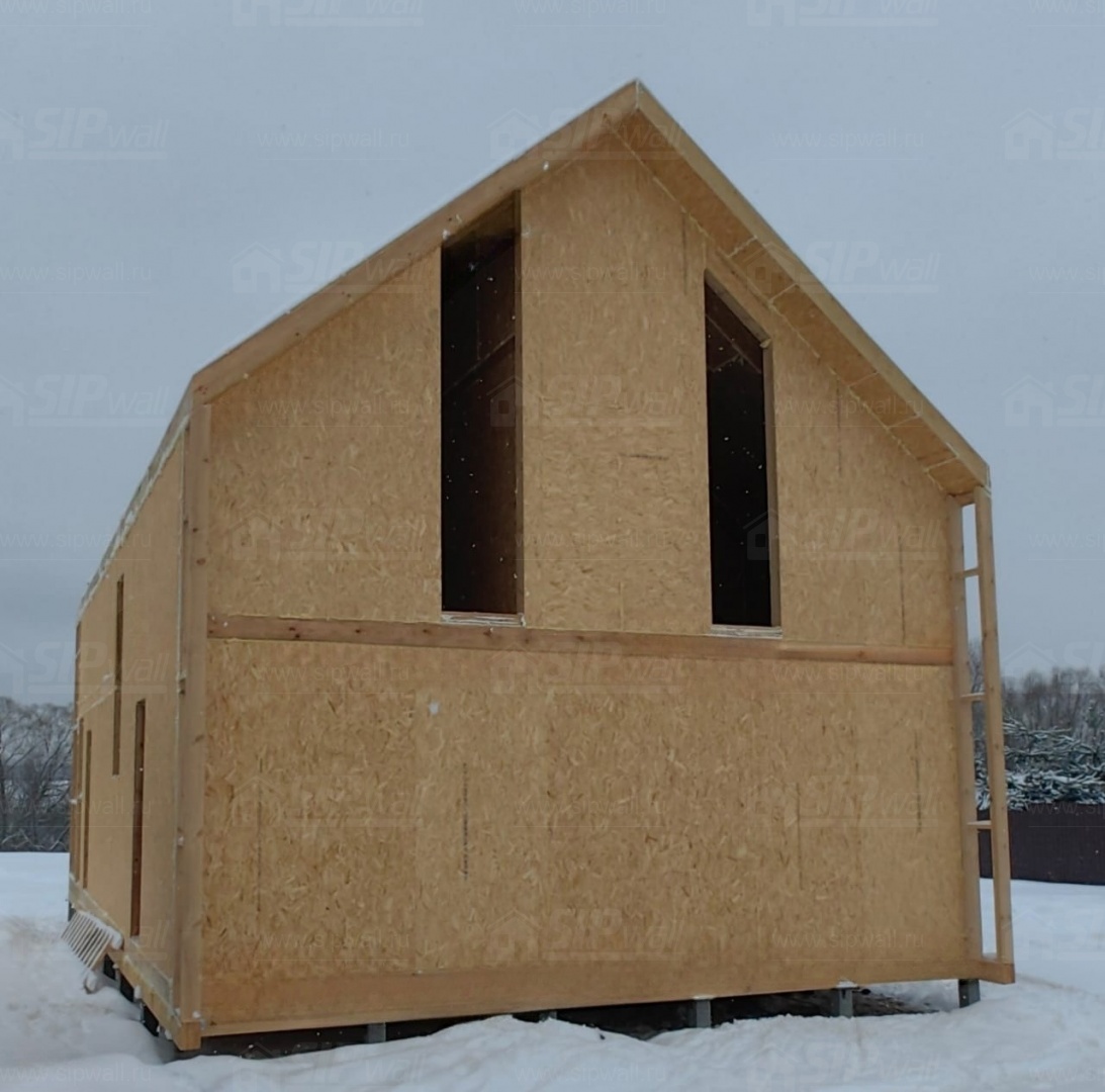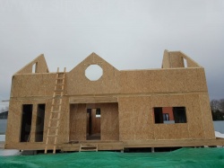 Все СИП панели SIPwall толщиной 224/174/124 мм (плиты OSB-3 толщиной 12 мм "Калевала" Россия и фасадный пенополистирол ППС-14 толщиной 200/150/100 мм производства, Россия) нарезаны и обрусованы сухим строганным брусом камерной сушки в соответствии с проектной документацией.