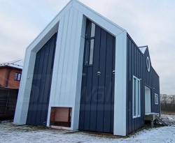 Домокомплект - изготовлен по проекту из СИП панелей произведенный по технологии SIPwall (ЭКОПАН) на собственном заводе расположенном в г. Шуя, Ивановской области. При изготовлении домокомплекта панельно каркасного дома используется только сухой строганный брус камерной сушки, обработанный огнебиозащитным составом.