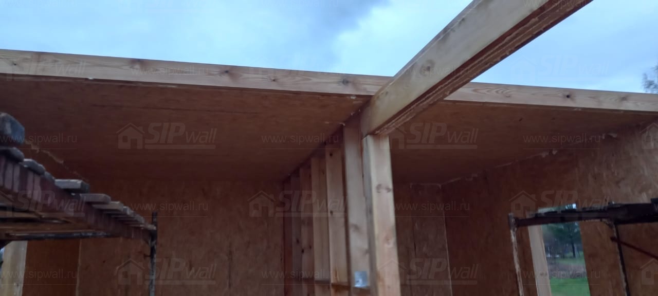 Все СИП панели SIPwall толщиной 224/174/124 мм (плиты OSB-3 толщиной 12 мм "Калевала" Россия и фасадный пенополистирол ППС-14 толщиной 200/150/100 мм производства, Россия) нарезаны и обрусованы сухим строганным брусом камерной сушки в соответствии с проектной документацией.