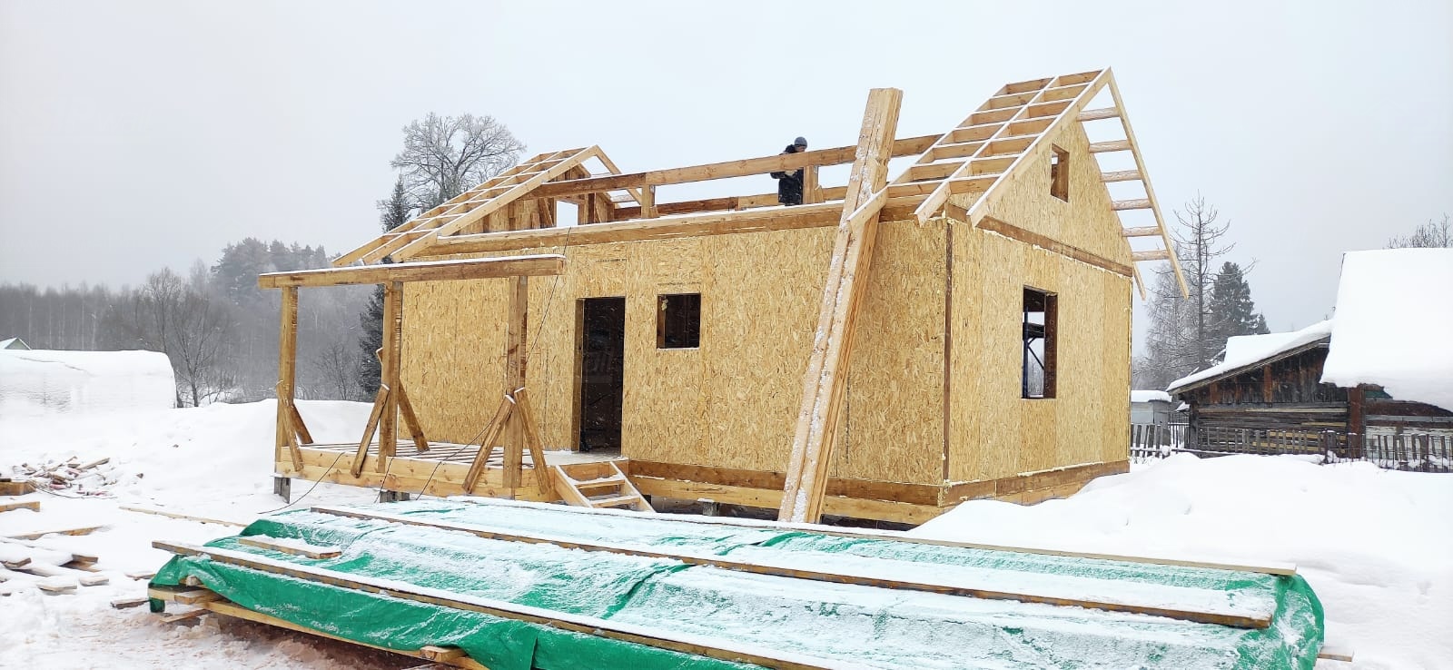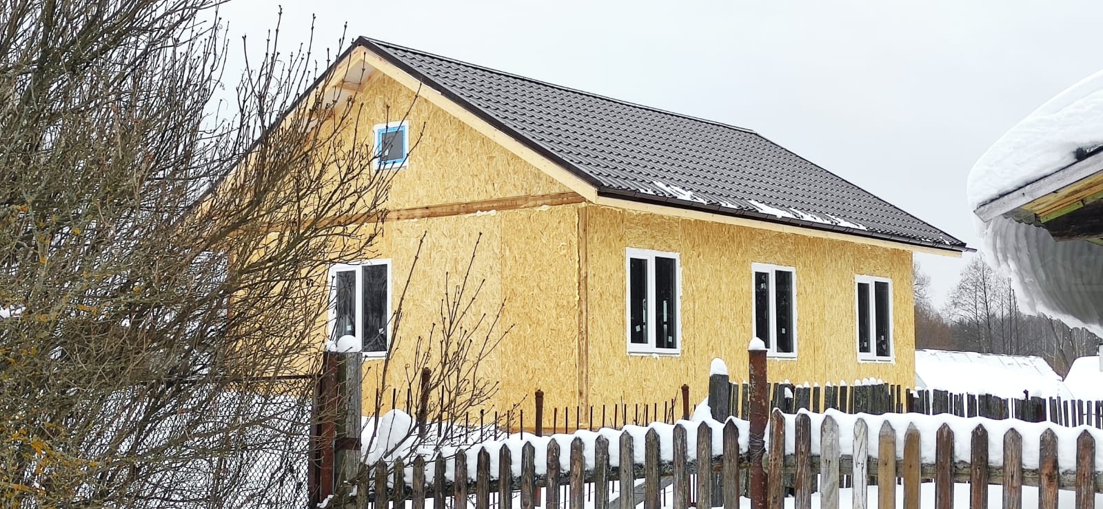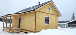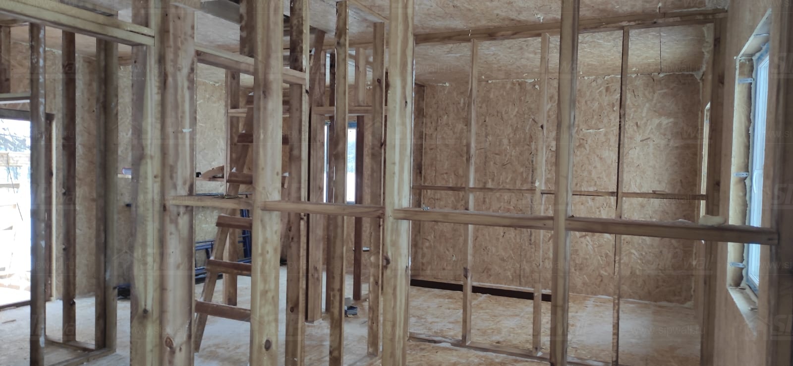 Все СИП панели SIPwall толщиной 224/174/124 мм (плиты OSB-3 толщиной 12 мм "Калевала" Россия и фасадный пенополистирол ППС-14 толщиной 200/150/100 мм производства, Россия) нарезаны и обрусованы сухим строганным брусом камерной сушки в соответствии с проектной документацией.