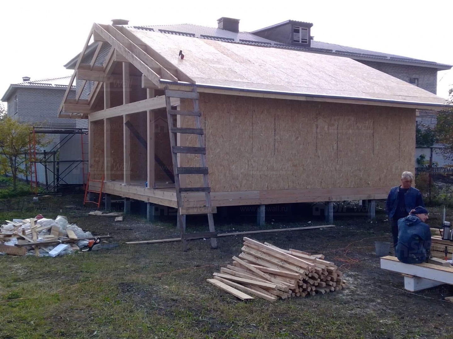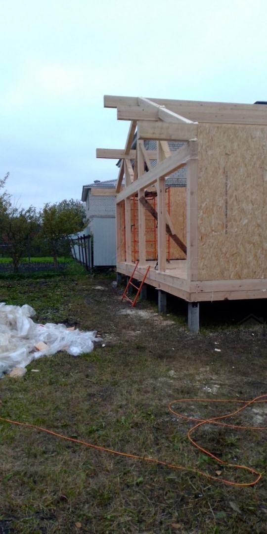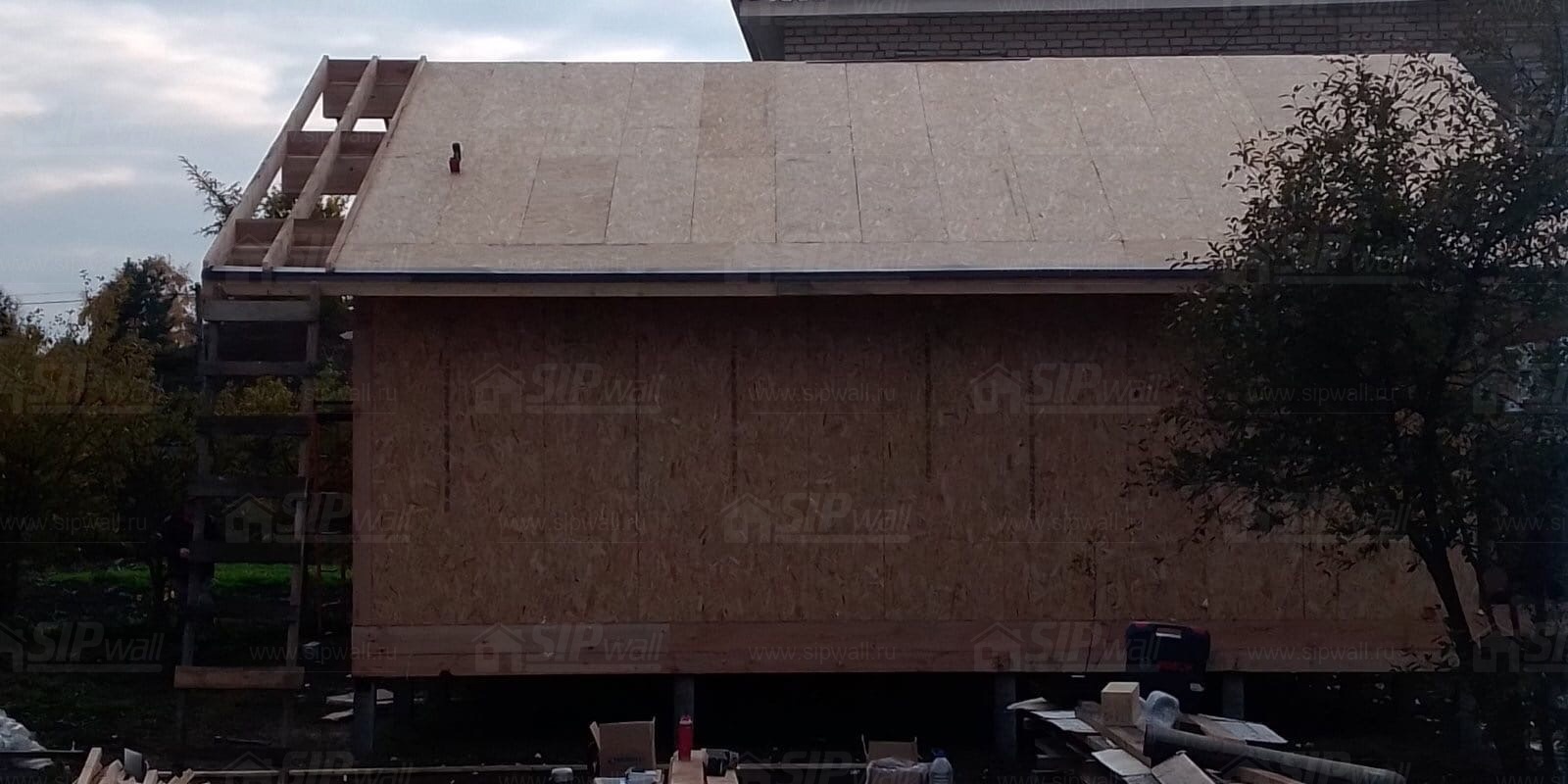 Все СИП панели SIPwall толщиной 224/174/124 мм (плиты OSB-3 толщиной 12 мм "Калевала" Россия и фасадный пенополистирол ППС-14 толщиной 200/150/100 мм производства, Россия) нарезаны и обрусованы сухим строганным брусом камерной сушки в соответствии с проектной документацией.
