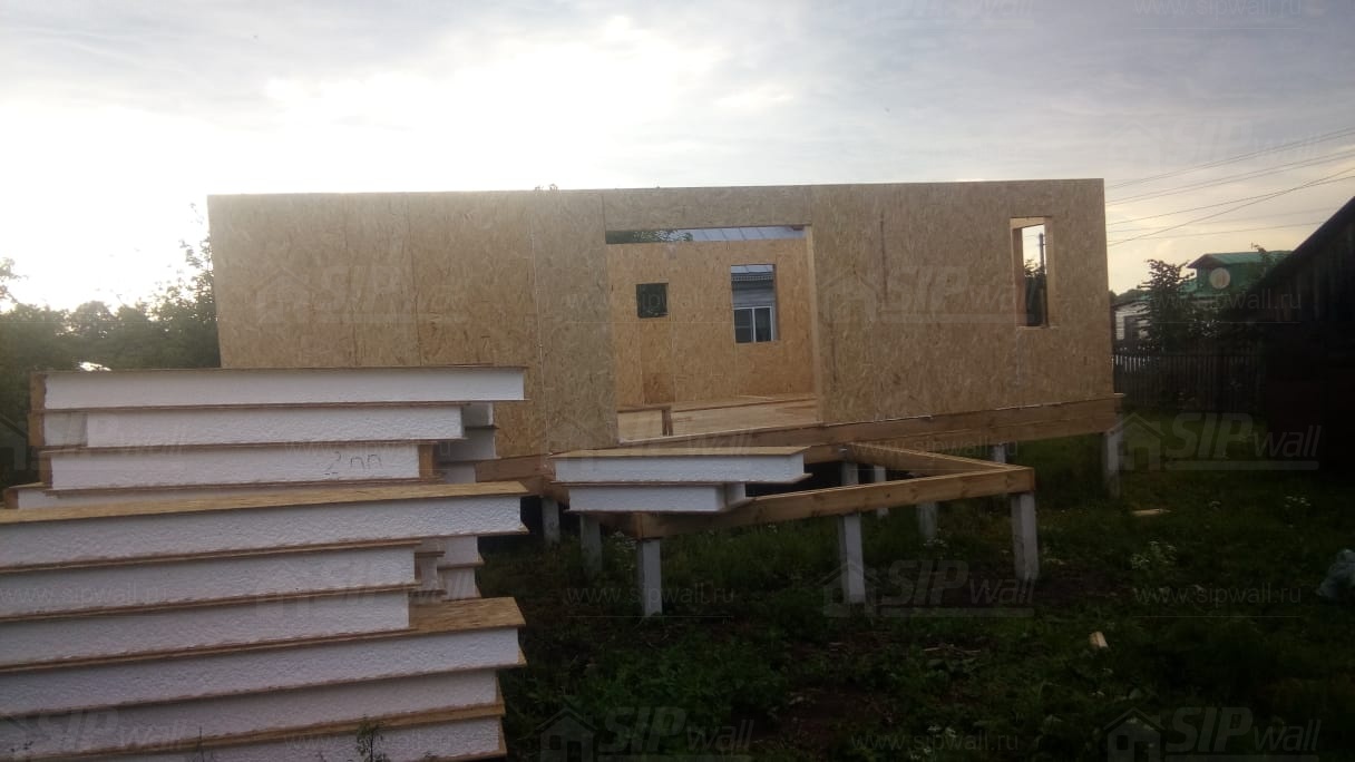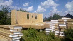 Все СИП панели SIPwall толщиной 224/174/124 мм (плиты OSB-3 толщиной 12 мм "Калевала" Россия и фасадный пенополистирол ППС-14 толщиной 200/150/100 мм производства, Россия) нарезаны и обрусованы сухим строганным брусом камерной сушки в соответствии с проектной документацией.