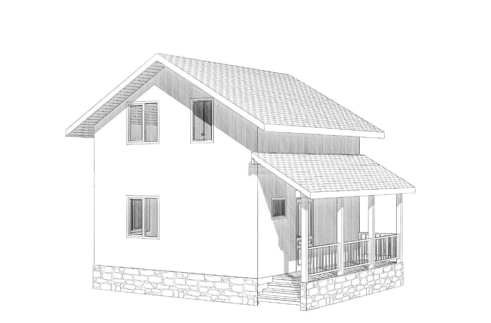 Комплектация домокомплекта: перекрытие на отметке +0.000 - СИП - 174У мм, несущие стены дома выполнены из СИП панелей 174 мм, внутренние несущие стены - СИП 174 мм, не несущие стены - СИП 124 мм Кровля - СИП 174У.