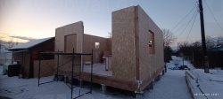 Домокомплект - изготовлен по проекту из СИП панелей произведенный по технологии SIPwall (ЭКОПАН) на собственном заводе расположенном в г. Шуя, Ивановской области. При изготовлении домокомплекта панельно каркасного дома используется только сухой строганный брус камерной сушки, обработанный огнебиозащитным составом.
