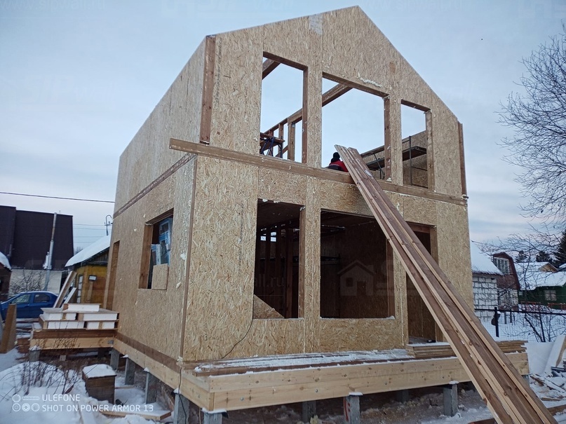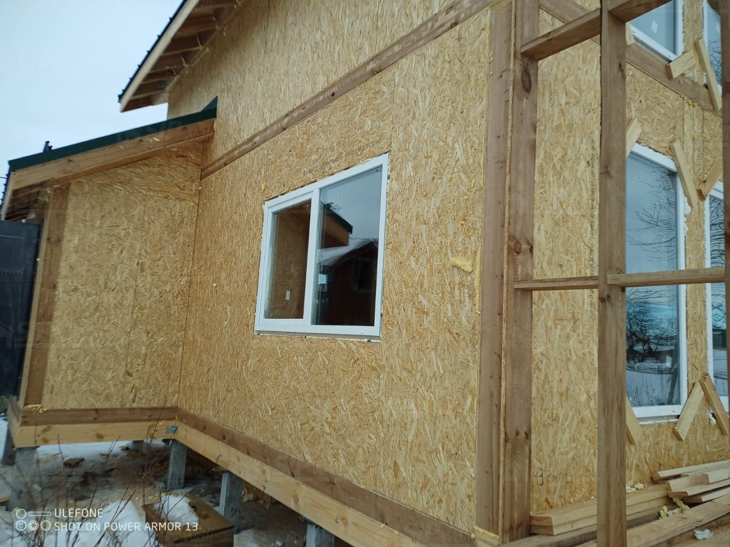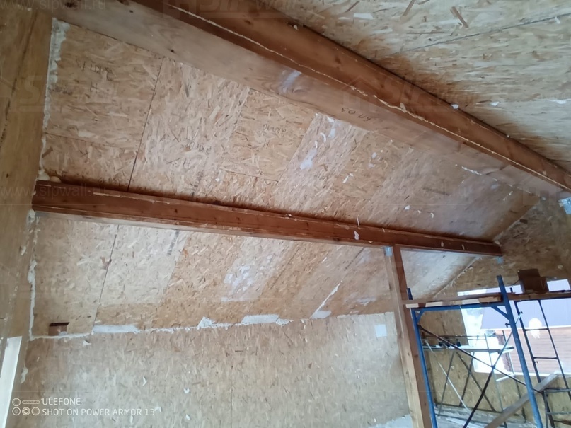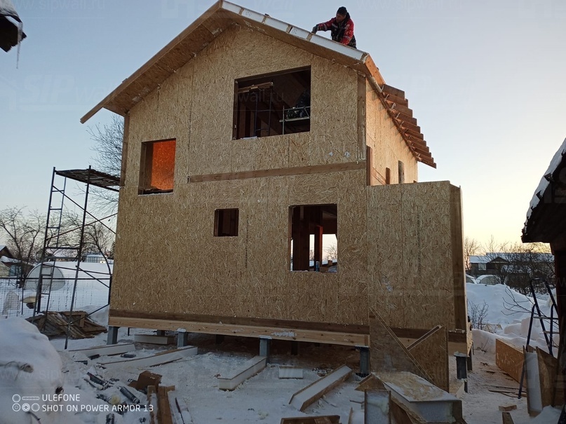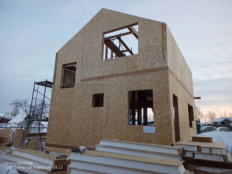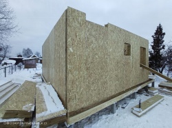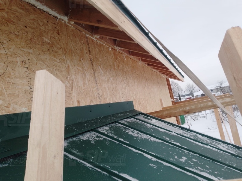 Все СИП панели SIPwall толщиной 224/174/124 мм (плиты OSB-3 толщиной 12 мм "Калевала" Россия и фасадный пенополистирол ППС-14 толщиной 200/150/100 мм производства, Россия) нарезаны и обрусованы сухим строганным брусом камерной сушки в соответствии с проектной документацией.