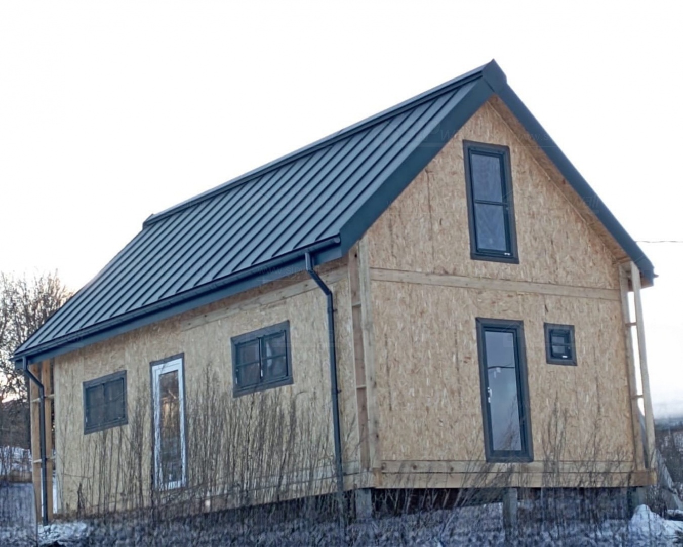 Домокомплект - изготовлен по проекту из СИП панелей произведенный по технологии SIPwall (ЭКОПАН) на собственном заводе расположенном в г. Шуя, Ивановской области. При изготовлении домокомплекта панельно каркасного дома используется только сухой строганный брус камерной сушки, обработанный огнебиозащитным составом.