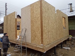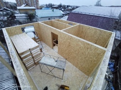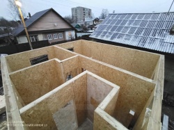 Все СИП панели SIPwall толщиной 224/174/124 мм (плиты OSB-3 толщиной 12 мм "Калевала" Россия и фасадный пенополистирол ППС-14 толщиной 200/150/100 мм производства, Россия) нарезаны и обрусованы сухим строганным брусом камерной сушки в соответствии с проектной документацией.