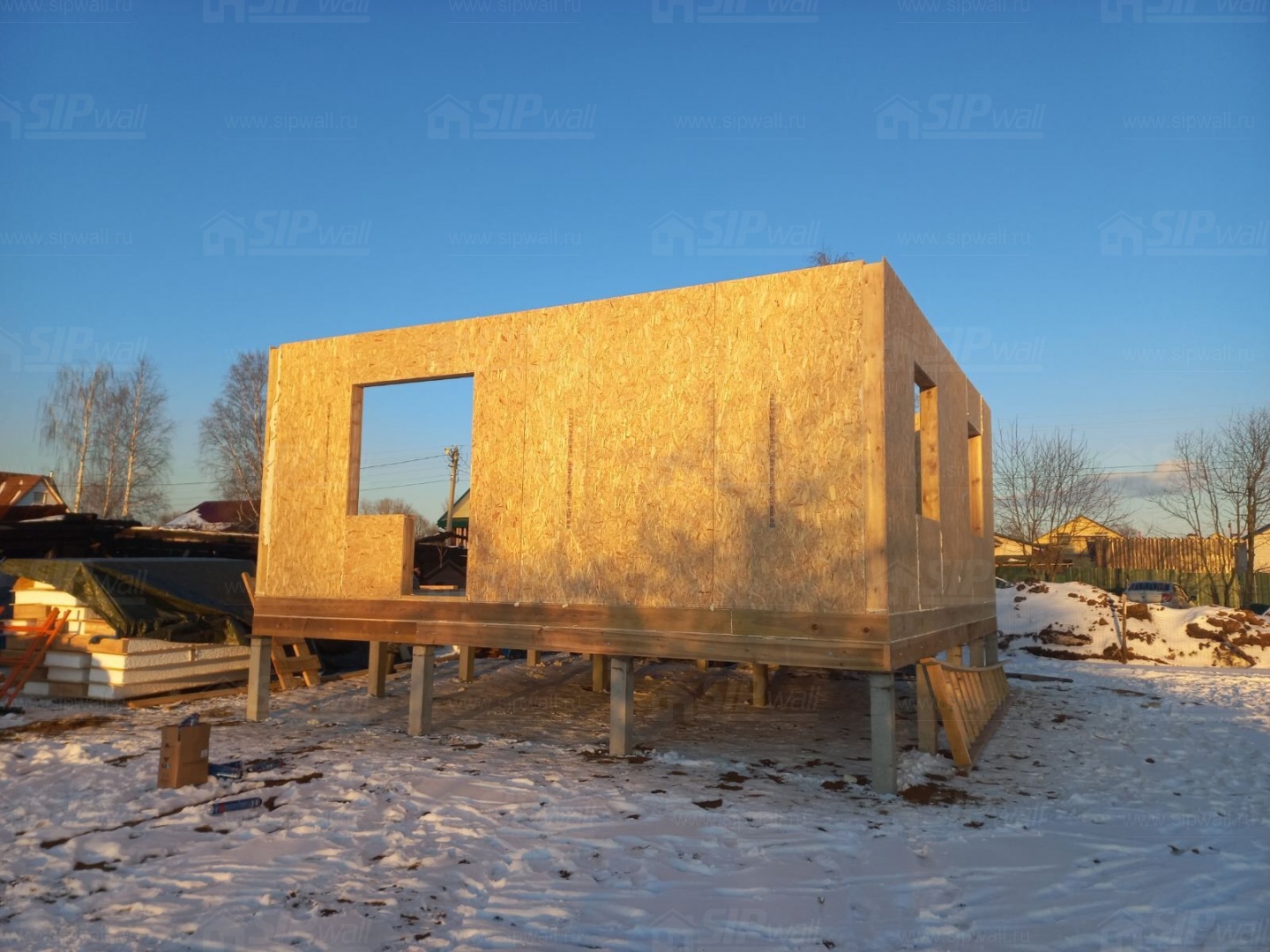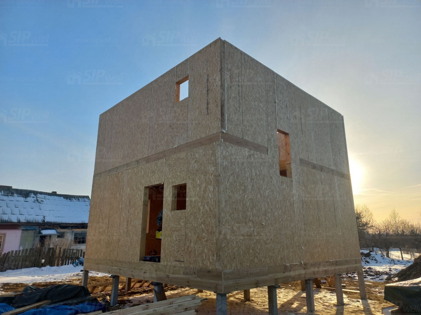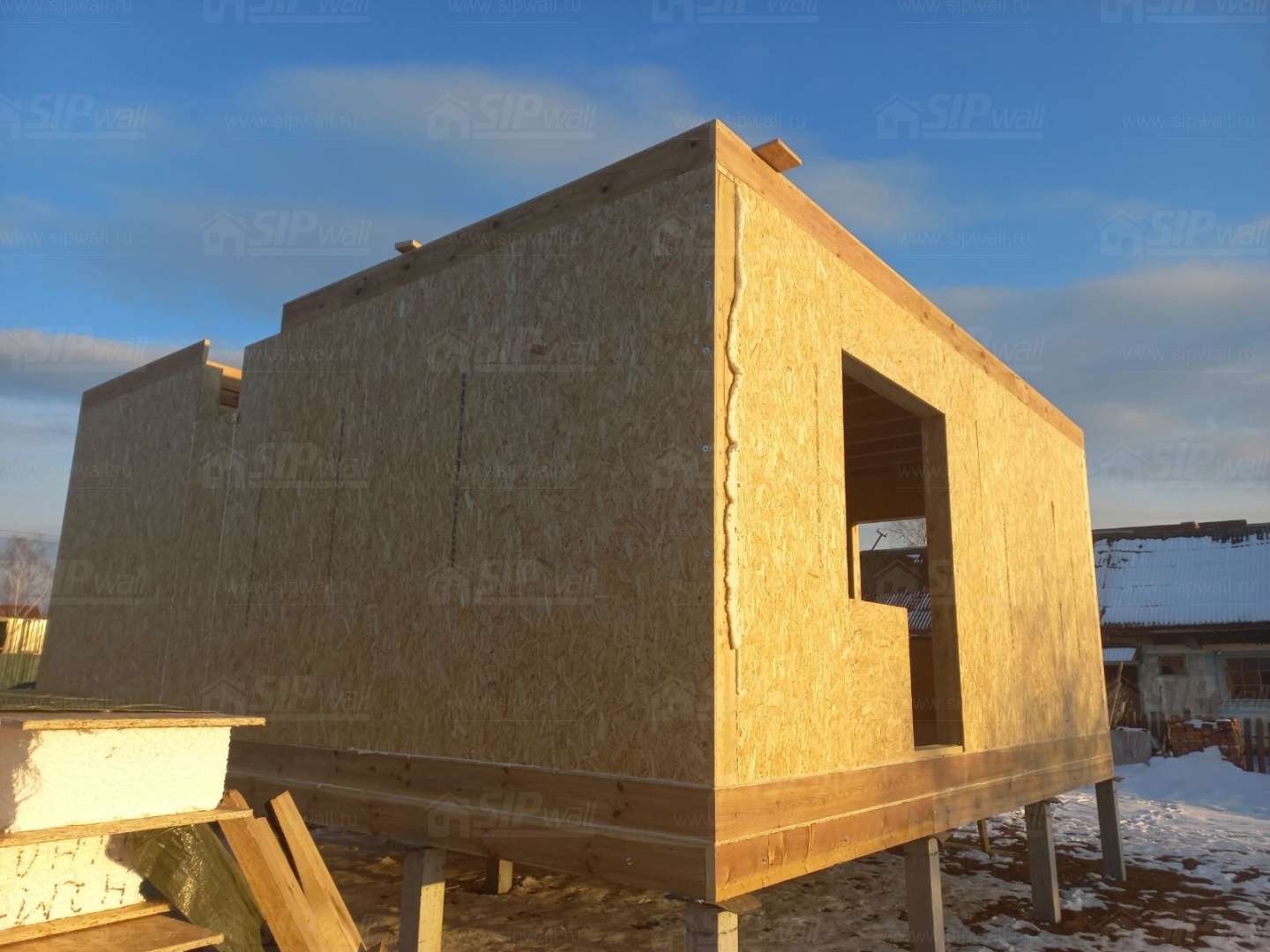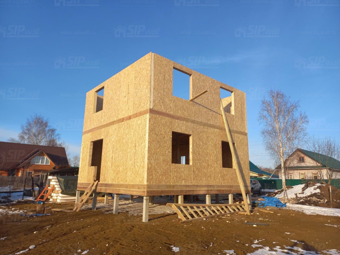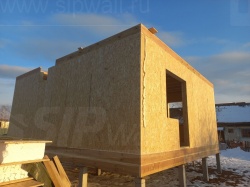 Все СИП панели SIPwall толщиной 224/174/124 мм (плиты OSB-3 толщиной 12 мм "Калевала" Россия и фасадный пенополистирол ППС-14 толщиной 200/150/100 мм производства, Россия) нарезаны и обрусованы сухим строганным брусом камерной сушки в соответствии с проектной документацией.