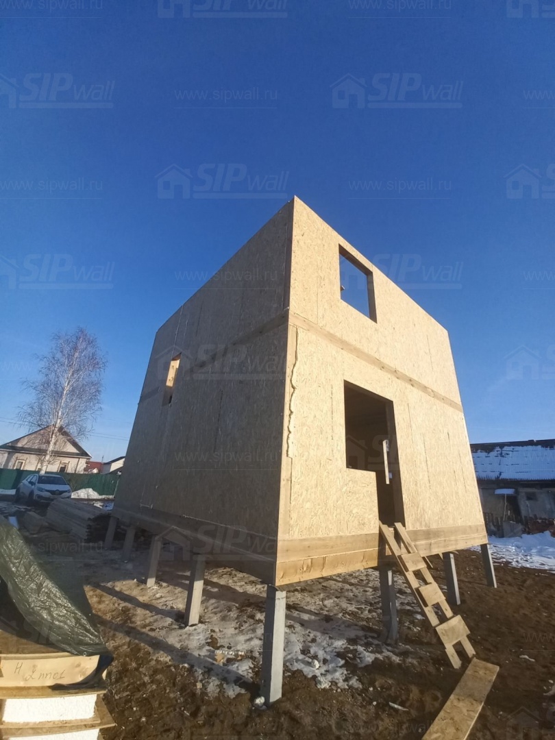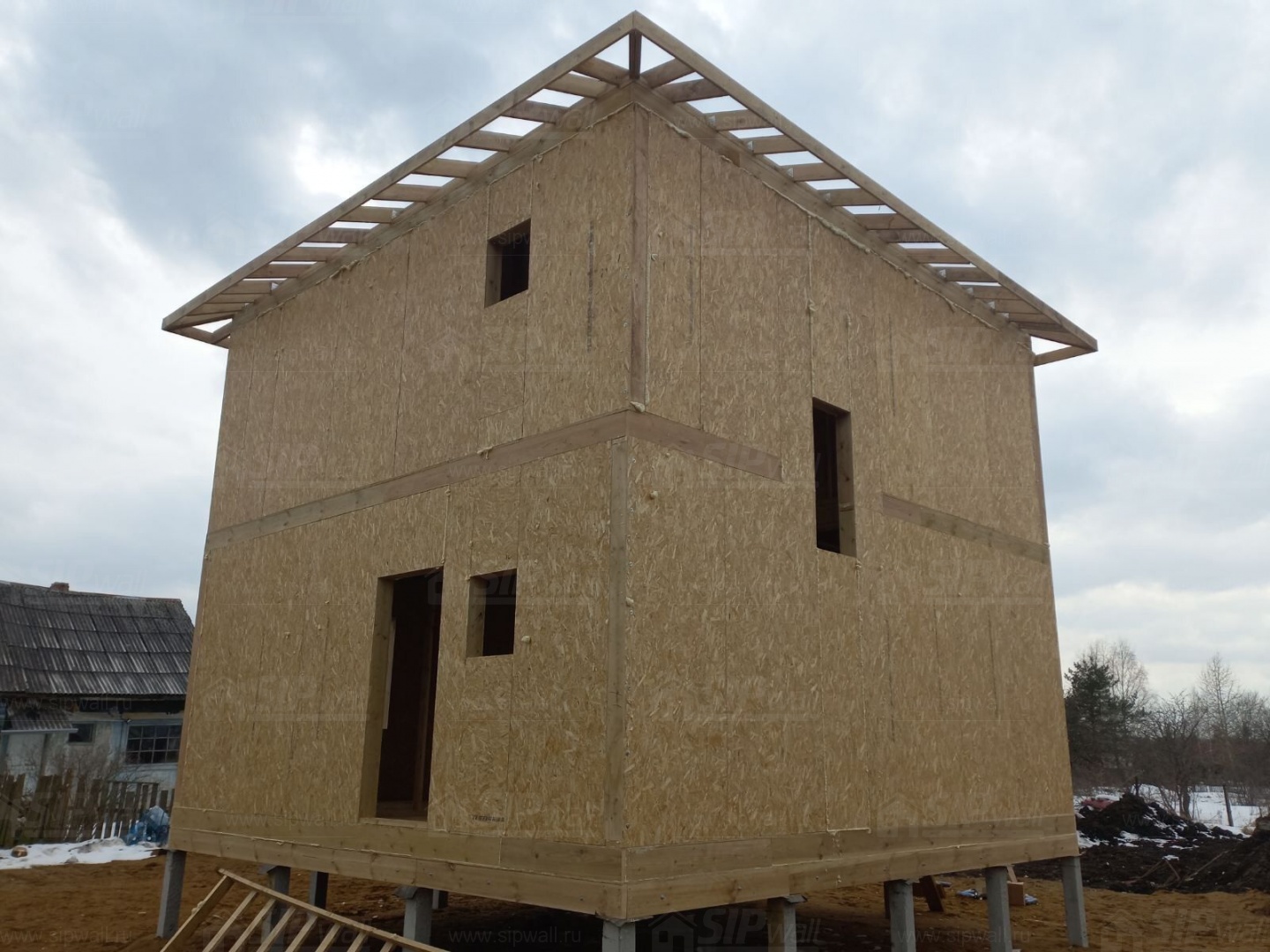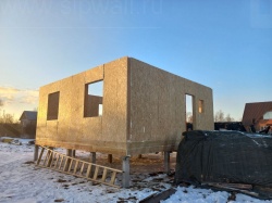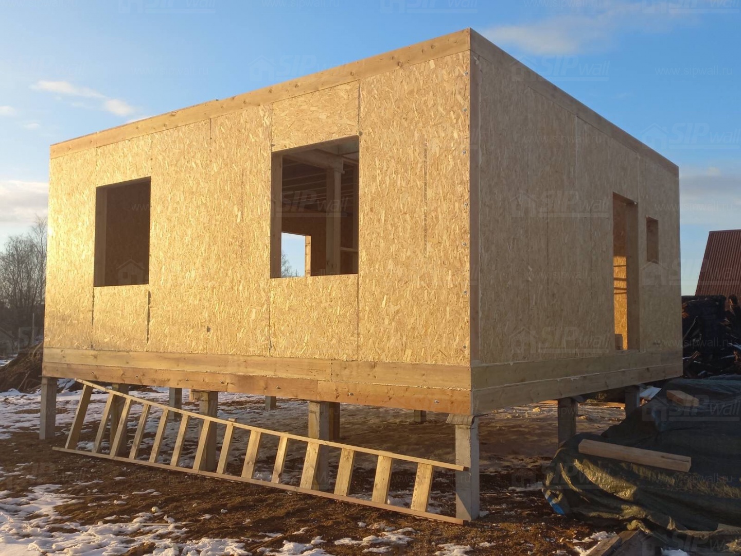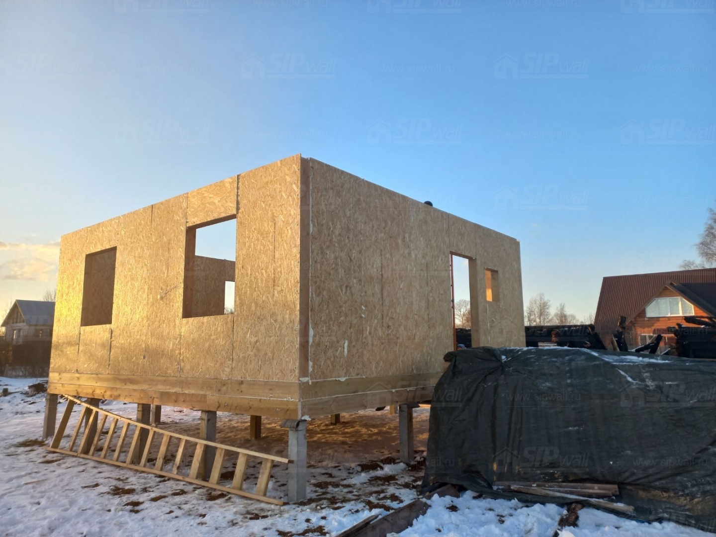 Все СИП панели SIPwall толщиной 224/174/124 мм (плиты OSB-3 толщиной 12 мм "Калевала" Россия и фасадный пенополистирол ППС-14 толщиной 200/150/100 мм производства, Россия) нарезаны и обрусованы сухим строганным брусом камерной сушки в соответствии с проектной документацией.