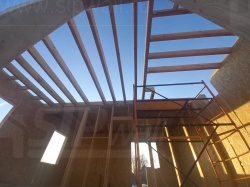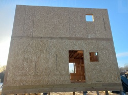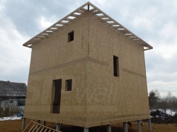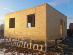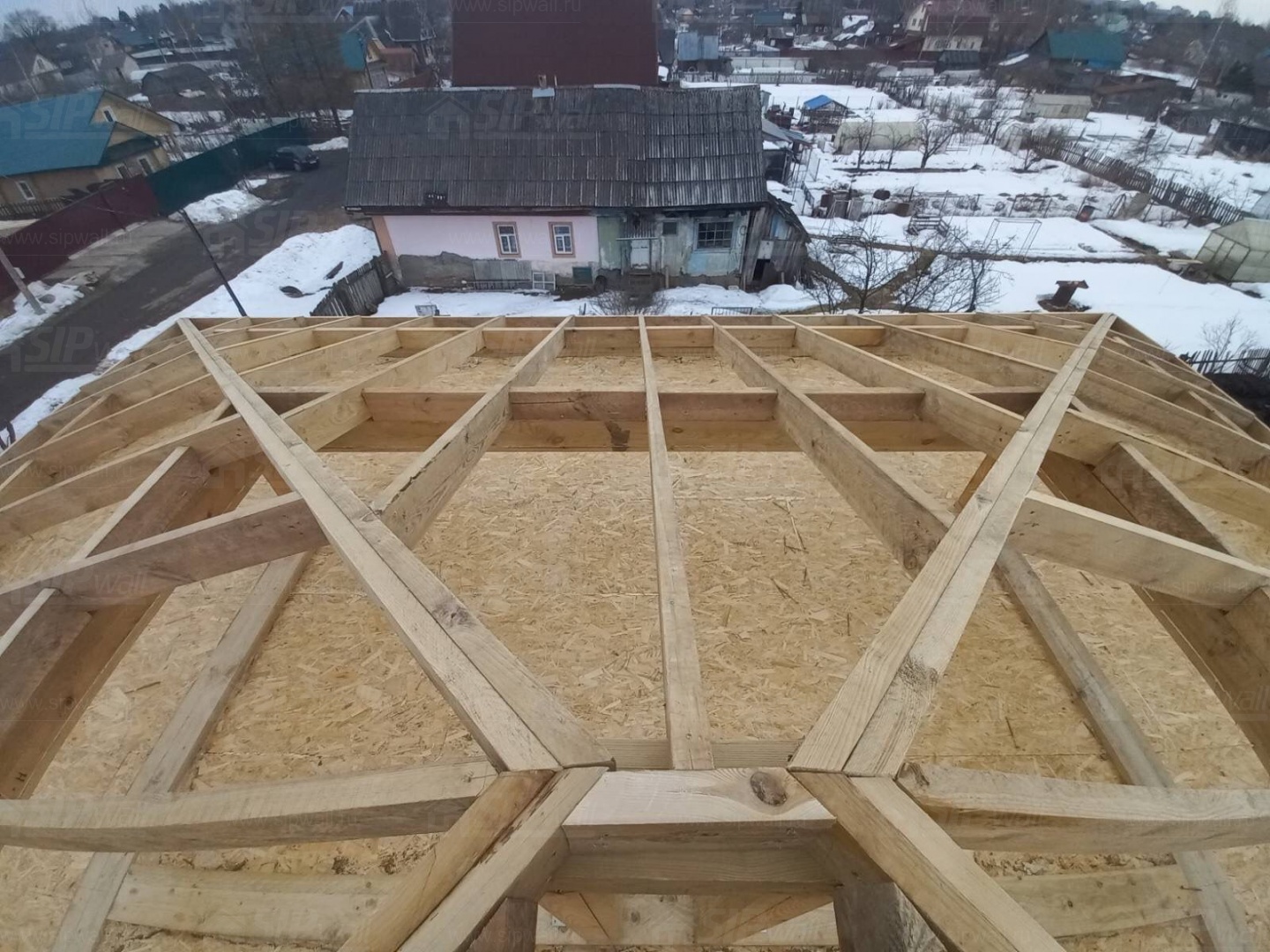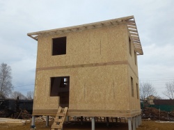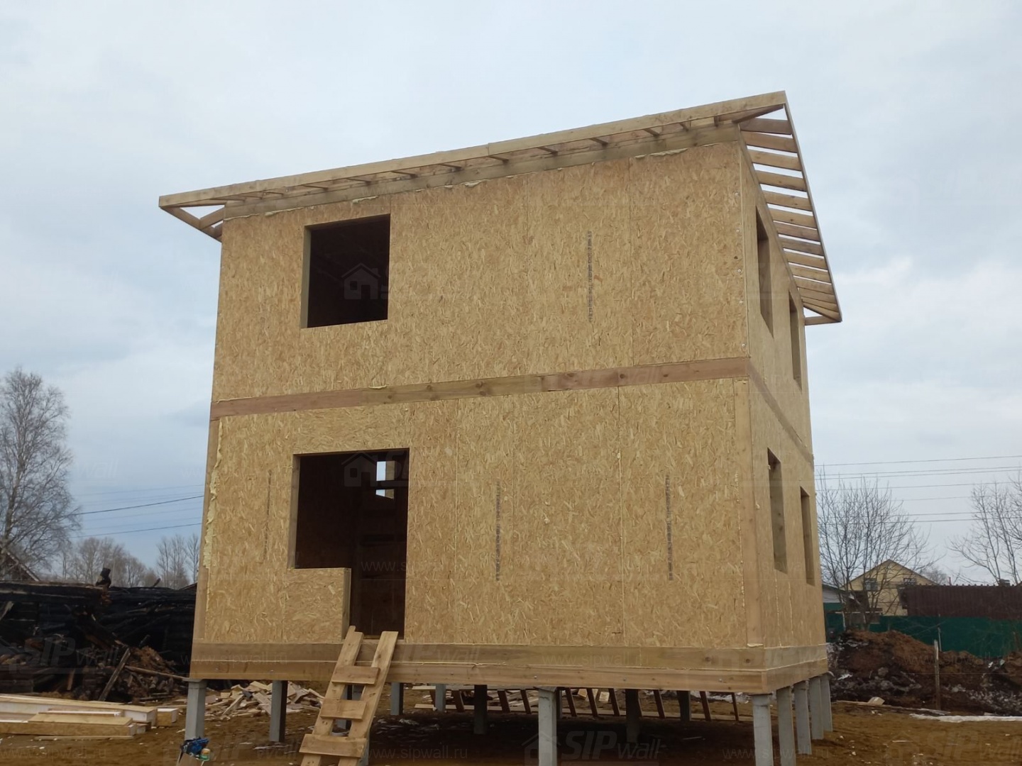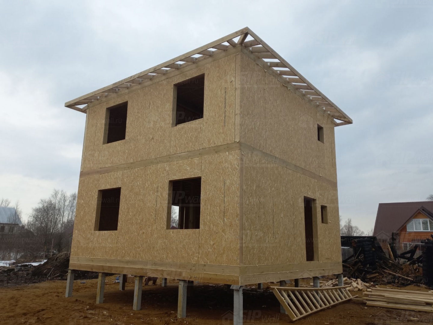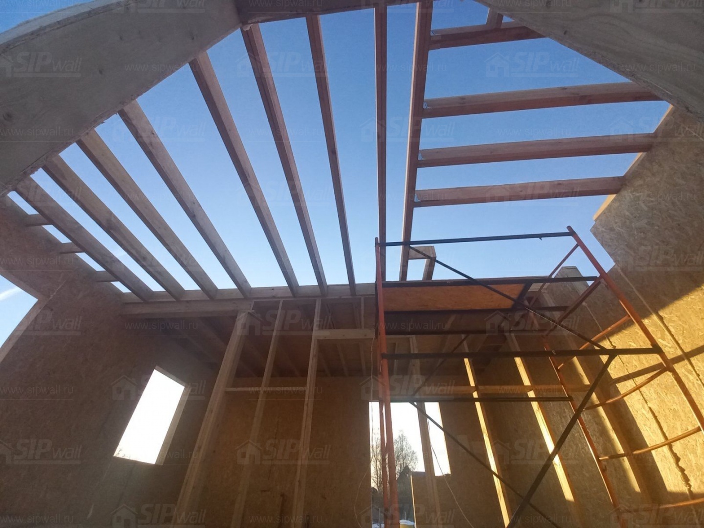 Все СИП панели SIPwall толщиной 224/174/124 мм (плиты OSB-3 толщиной 12 мм "Калевала" Россия и фасадный пенополистирол ППС-14 толщиной 200/150/100 мм производства, Россия) нарезаны и обрусованы сухим строганным брусом камерной сушки в соответствии с проектной документацией.