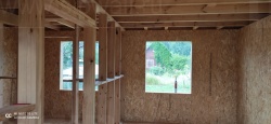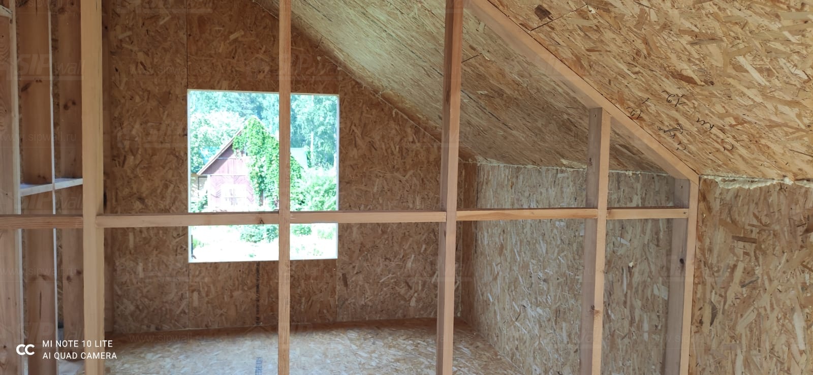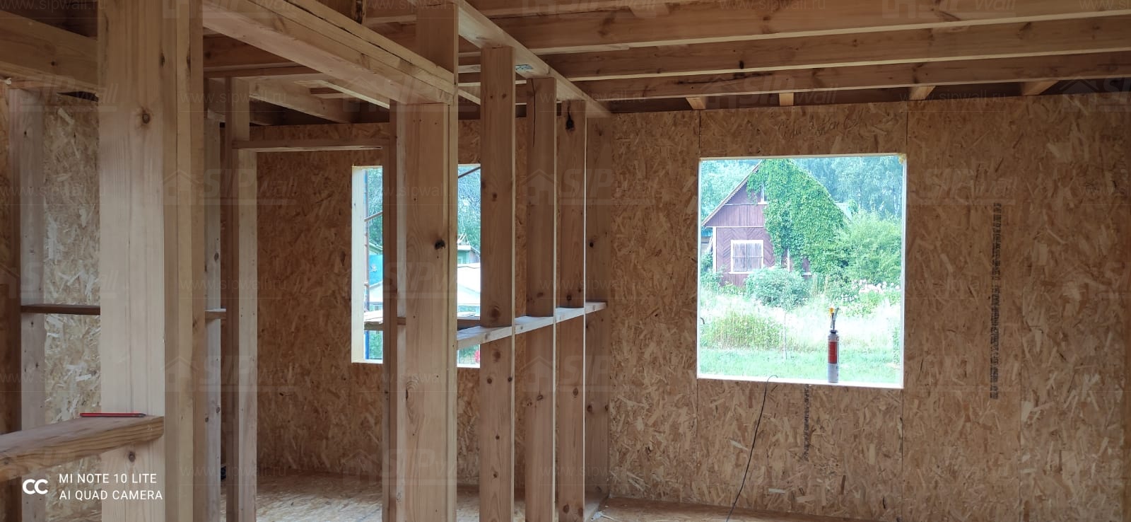 Все СИП панели SIPwall толщиной 224/174/124 мм (плиты OSB-3 толщиной 12 мм "Калевала" Россия и фасадный пенополистирол ППС-14 толщиной 200/150/100 мм производства, Россия) нарезаны и обрусованы сухим строганным брусом камерной сушки в соответствии с проектной документацией.