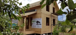 Домокомплект - изготовлен по проекту из СИП панелей произведенный по технологии SIPwall (ЭКОПАН) на собственном заводе расположенном в г. Шуя, Ивановской области. При изготовлении домокомплекта панельно каркасного дома используется только сухой строганный брус камерной сушки, обработанный огнебиозащитным составом.