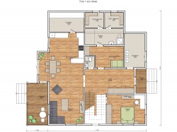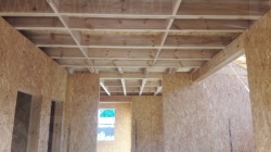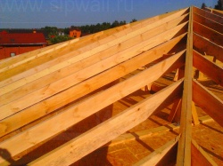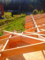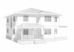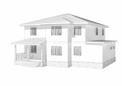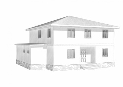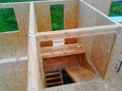 Комплектация домокомплекта: перекрытие на отметке +0.000 - СИП 224 мм., несущие стены дома выполнены из СИП панелей 174 мм., внутренние несущие стены выполнены из СИП панелей 174 мм, и внутренние не несущие перегородки выполнены из СИП панелей 124 мм. Чердачное перекрытие - СИП панели 224У мм. Кровля - стропильная система