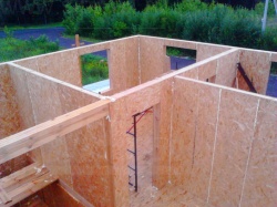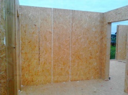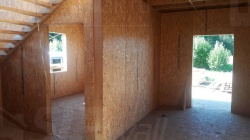 Все СИП панели SIPwall толщиной 224/174/124 мм (плиты OSB-3 толщиной 12 мм "Калевала" Россия и фасадный пенополистирол ПСБ-С 25 по ГОСТ 15588-14 толщиной 200/150/100 мм производства завода "PolarPlast", Россия) нарезаны и обрусованы сухим строганным брусом камерной сушки в соответствии с проектной документацией.