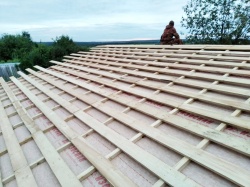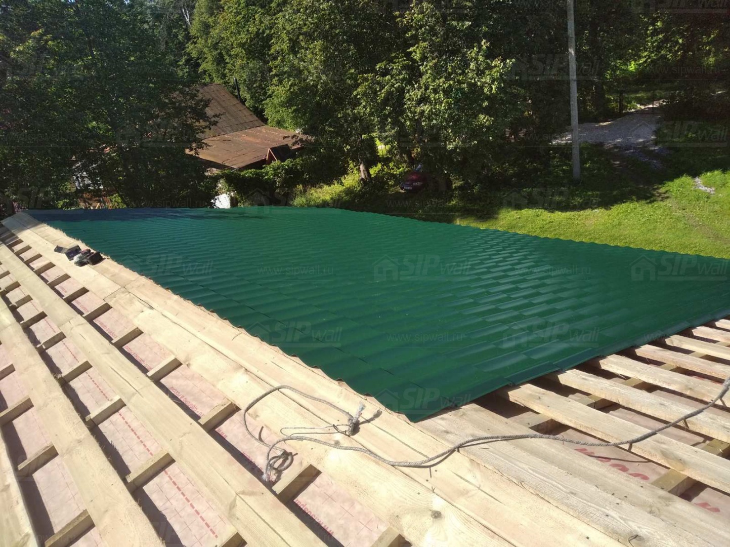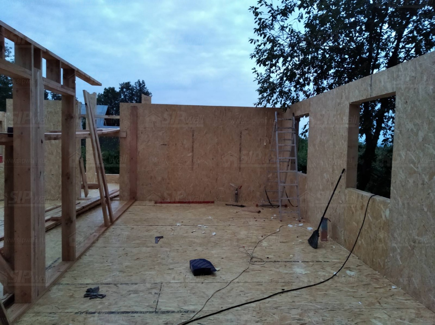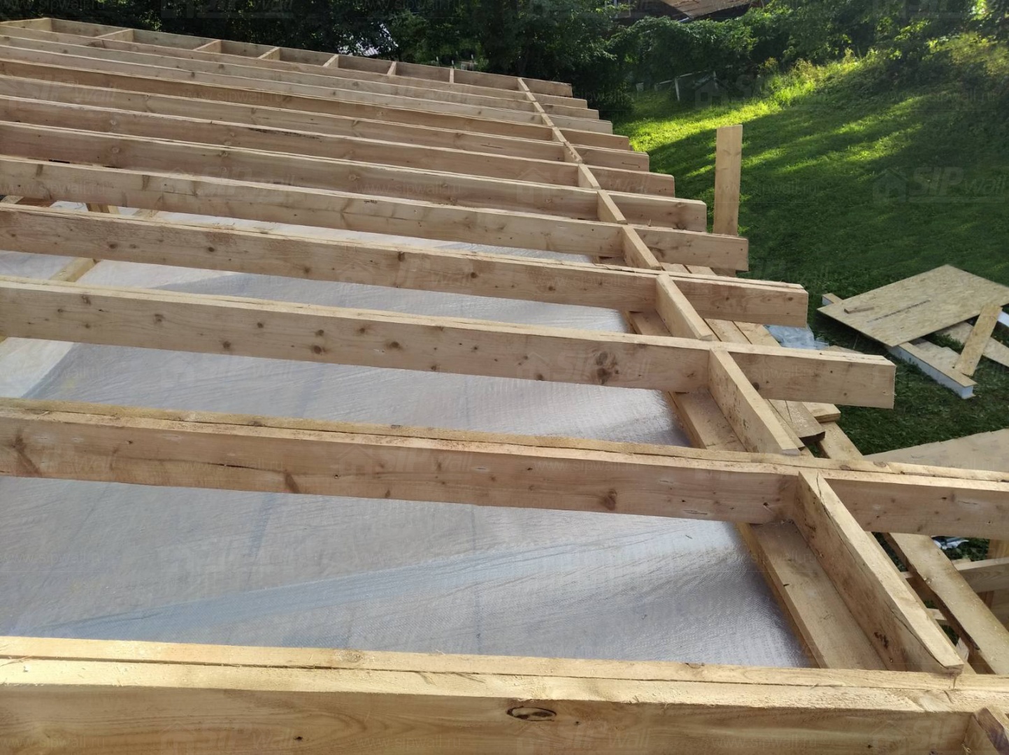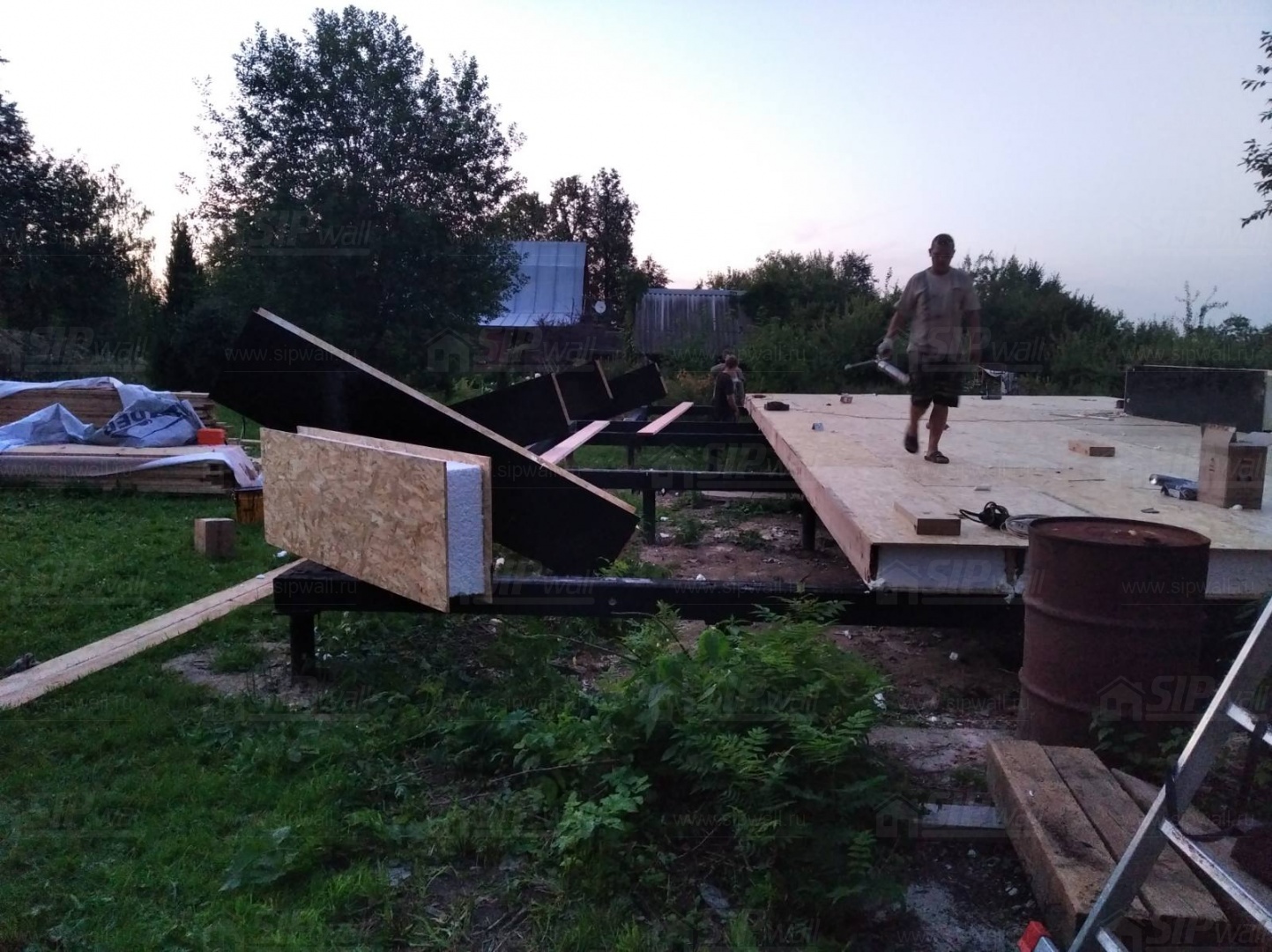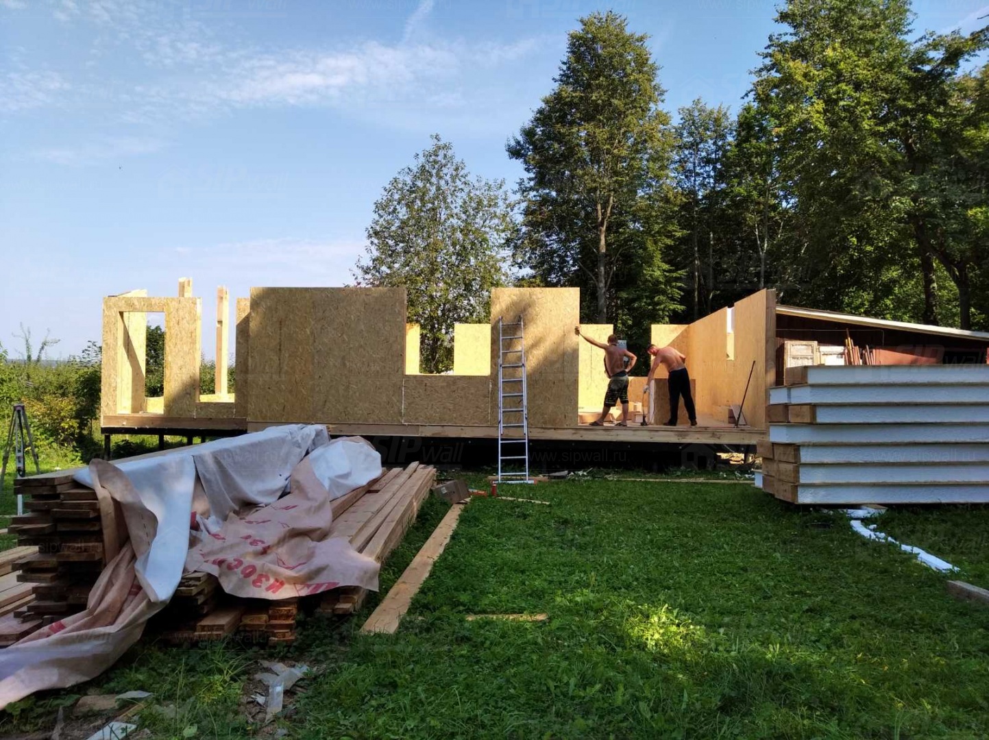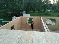 Все СИП панели SIPwall толщиной 224/174/124 мм (плиты OSB-3 толщиной 12 мм "Калевала" Россия и фасадный пенополистирол ППС-14 толщиной 200/150/100 мм производства, Россия) нарезаны и обрусованы сухим строганным брусом камерной сушки в соответствии с проектной документацией.