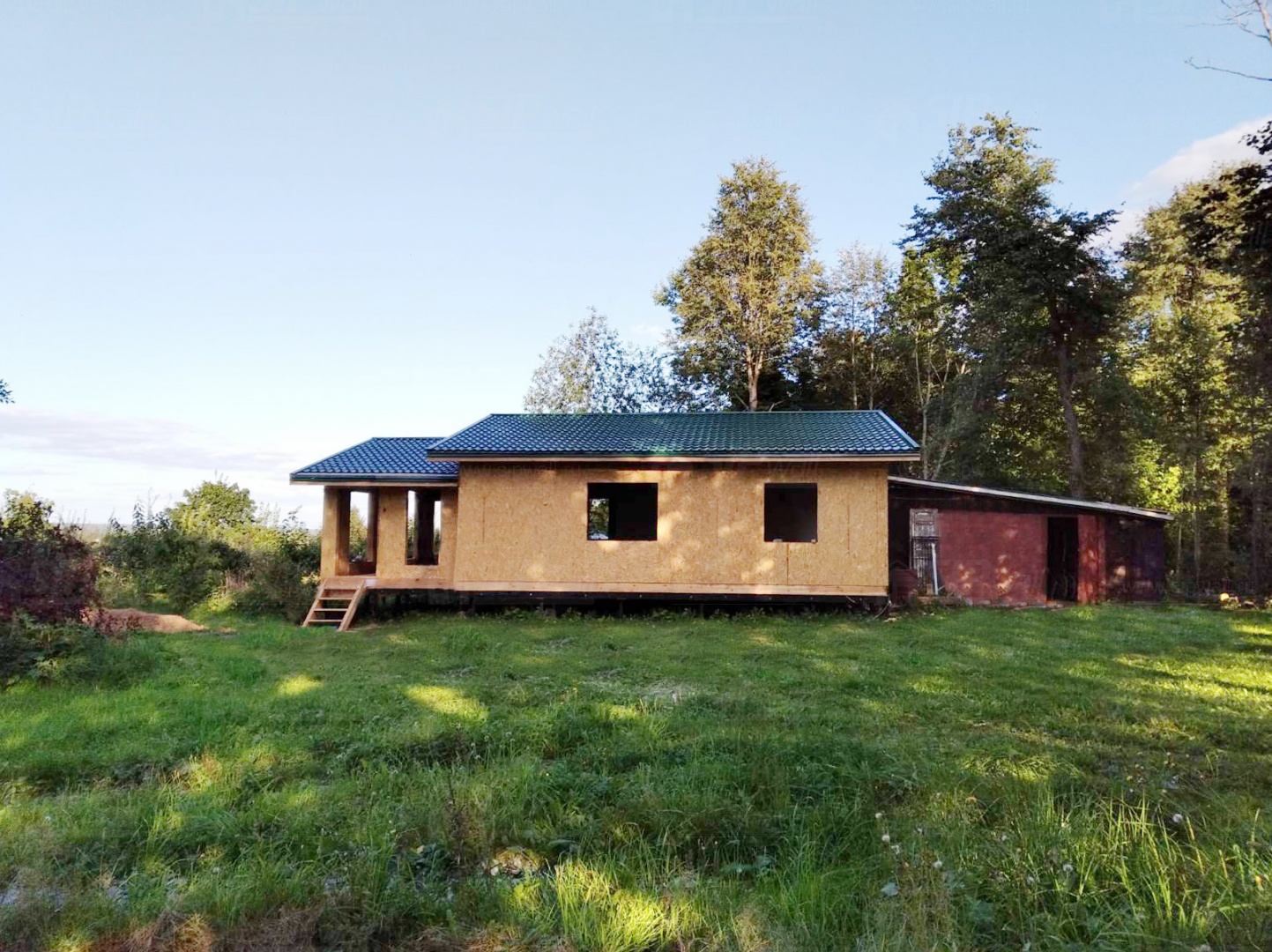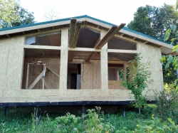 Домокомплект - изготовлен по проекту из СИП панелей произведенный по технологии SIPwall (ЭКОПАН) на собственном заводе расположенном в г. Шуя, Ивановской области. При изготовлении домокомплекта панельно каркасного дома используется только сухой строганный брус камерной сушки, обработанный огнебиозащитным составом.