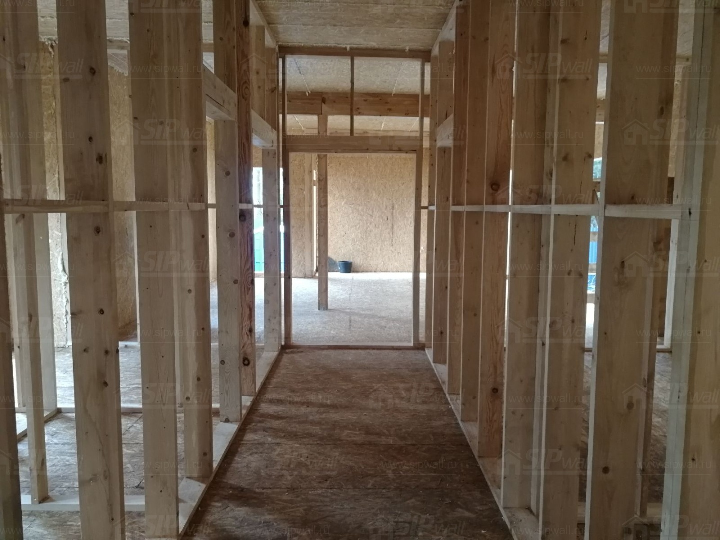 Комплектация домокомплекта: перекрытие на отметке +0.000 - СИП - 224У мм., несущие стены дома выполнены из СИП панелей 174 мм., внутренние несущие стены и внутренние не несущие перегородки выполнены по каркасной технологии. Межэтажное перекрытие - СИП - 224У мм, чердачное перекрытие - СИП - 224У мм, Кровля - стропильная система.