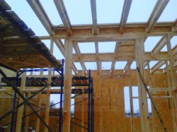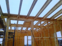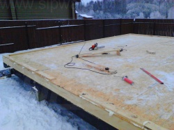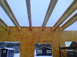 Комплектация домокомплекта: перекрытие на отметке +0.000 - СИП - 224У мм., несущие стены дома выполнены из СИП панелей 174 мм., внутренние несущие стены выполнены по каркасной технологии. Кровля - стропильная система.