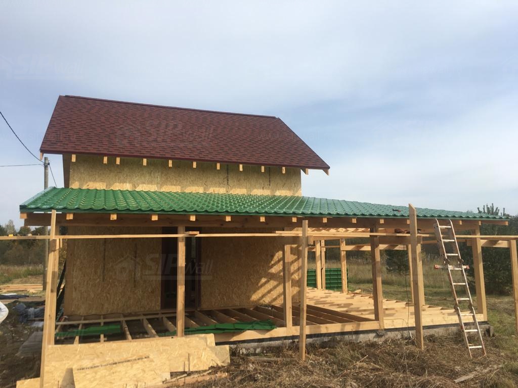 Домокомплект - изготовлен по проекту из СИП панелей произведенный по технологии SIPwall (ЭКОПАН) на собственном заводе расположенном в г. Шуя, Ивановской области. При изготовлении домокомплекта панельно каркасного дома используется только сухой строганный брус камерной сушки, обработанный огнебиозащитным составом.
