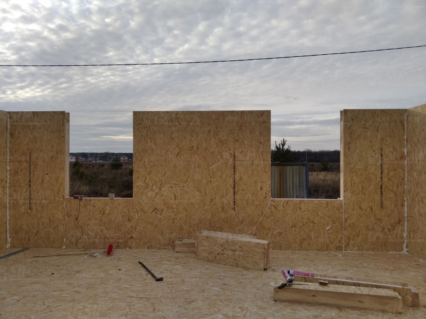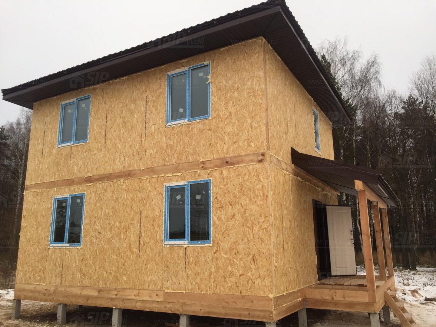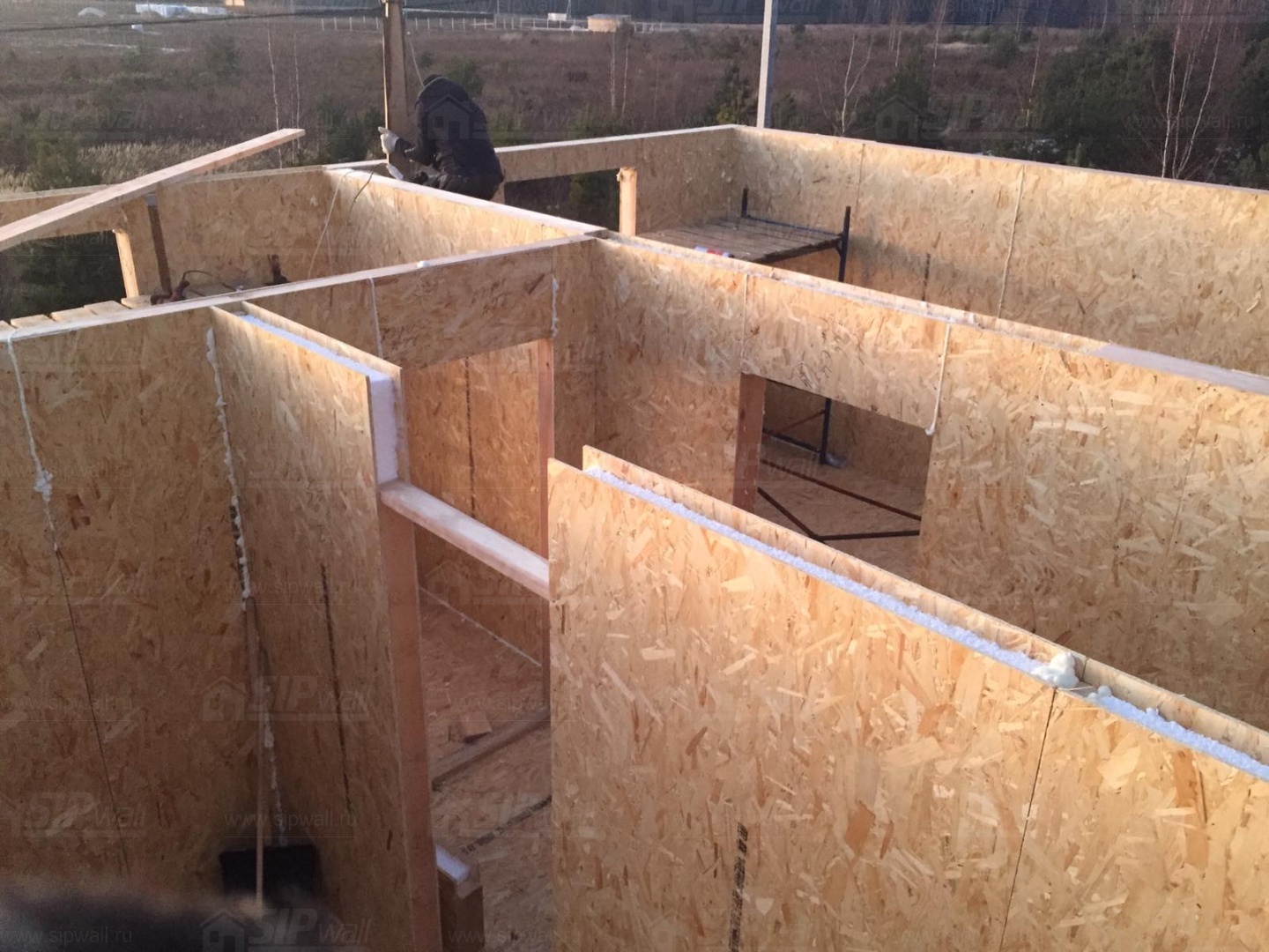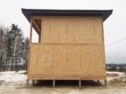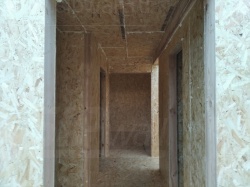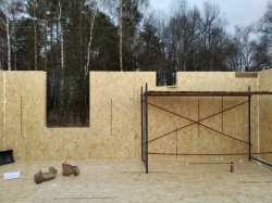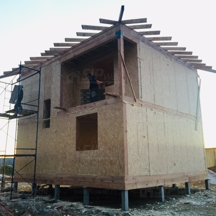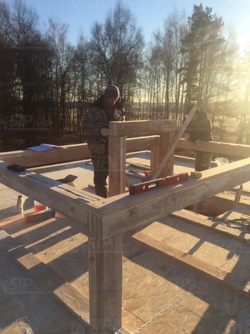 Все СИП панели SIPwall толщиной 224/174/124 мм (плиты OSB-3 толщиной 12 мм "Калевала" Россия и фасадный пенополистирол ППС-14 толщиной 200/150/100 мм производства, Россия) нарезаны и обрусованы сухим строганным брусом камерной сушки в соответствии с проектной документацией.