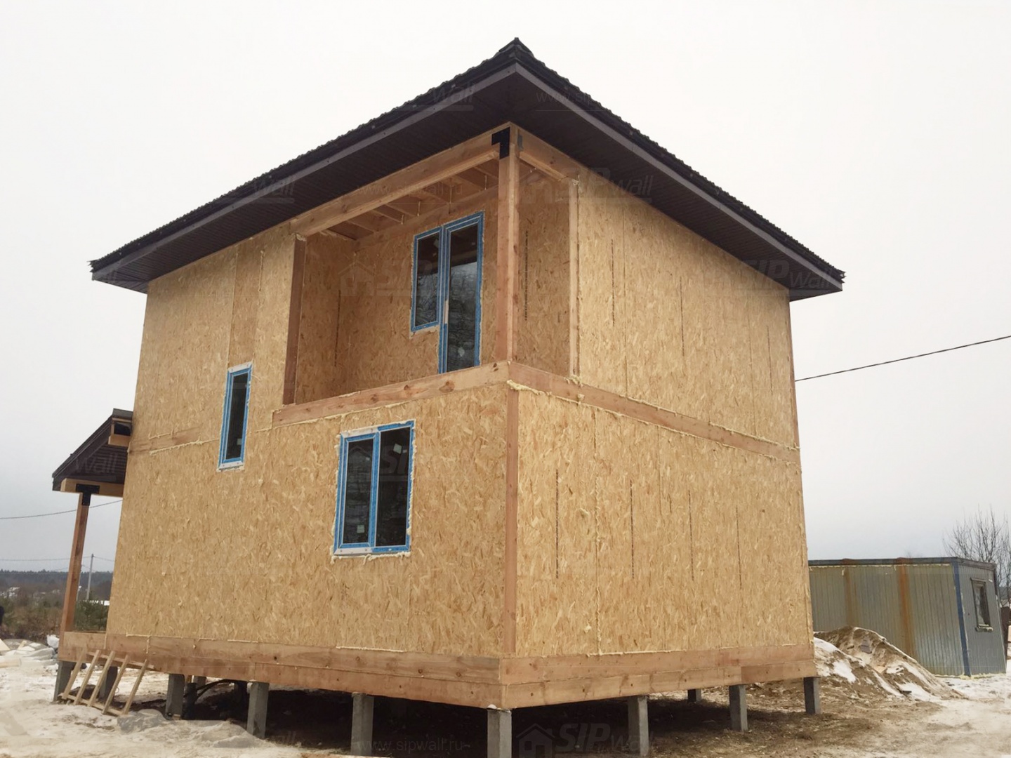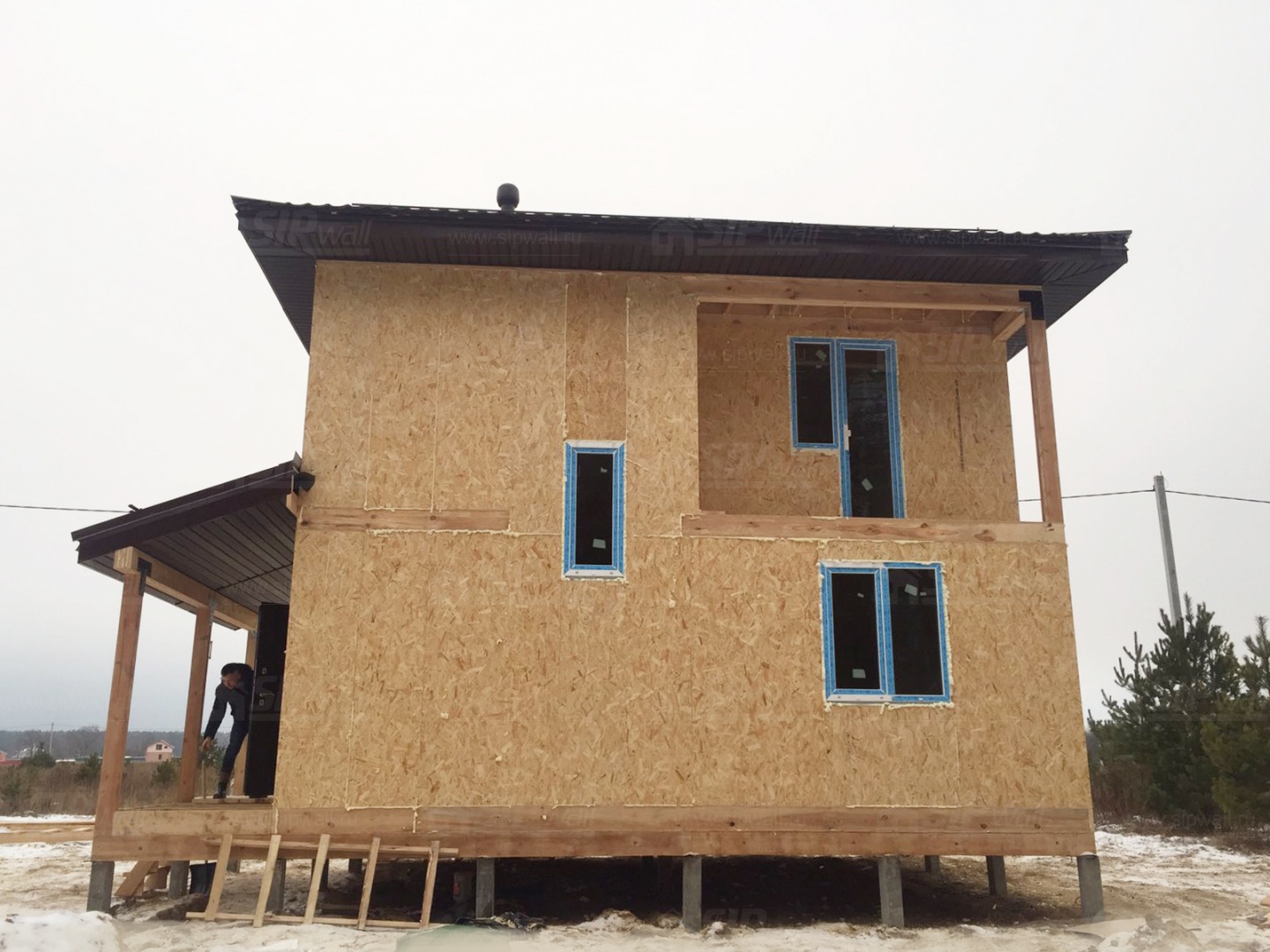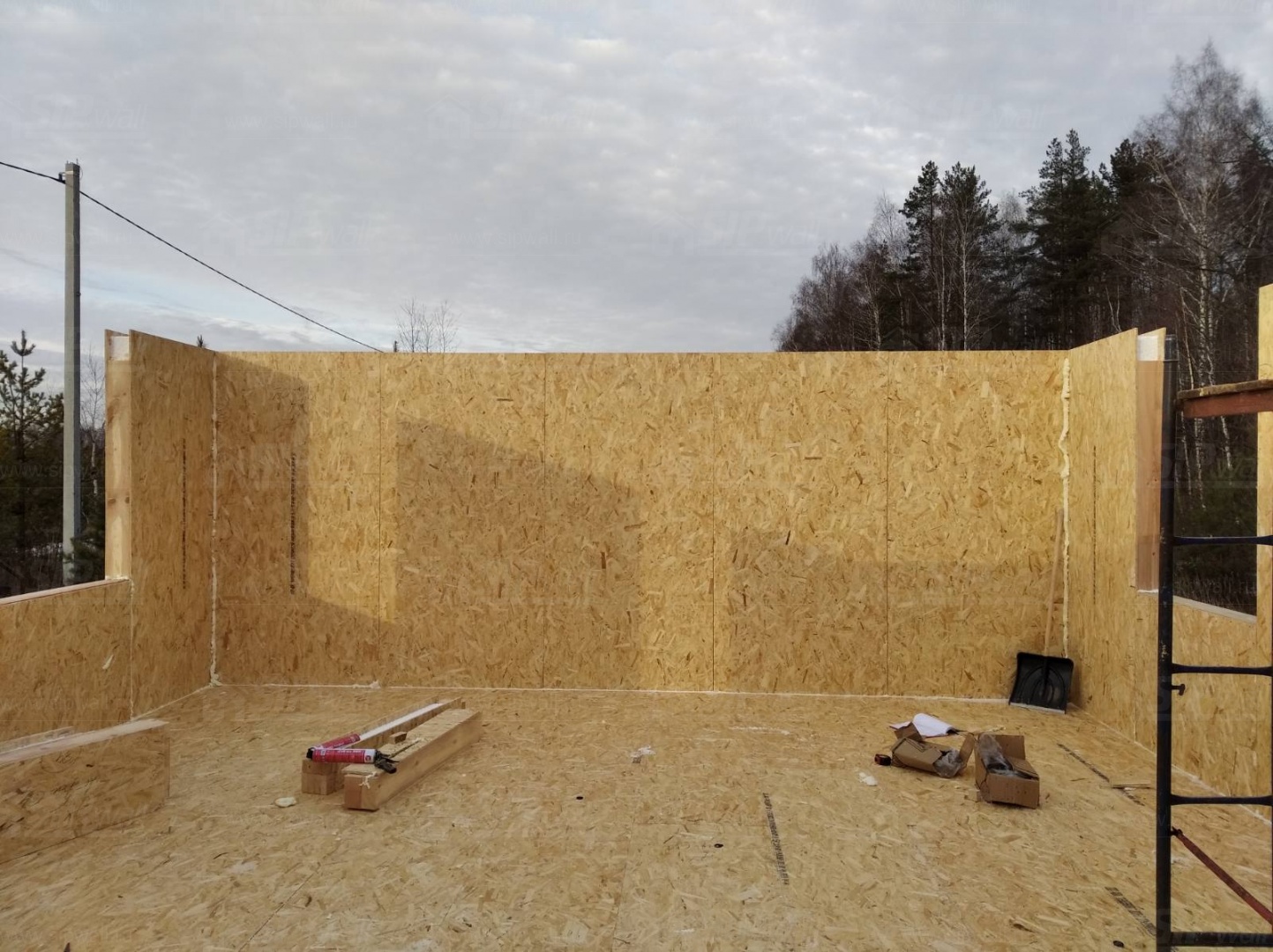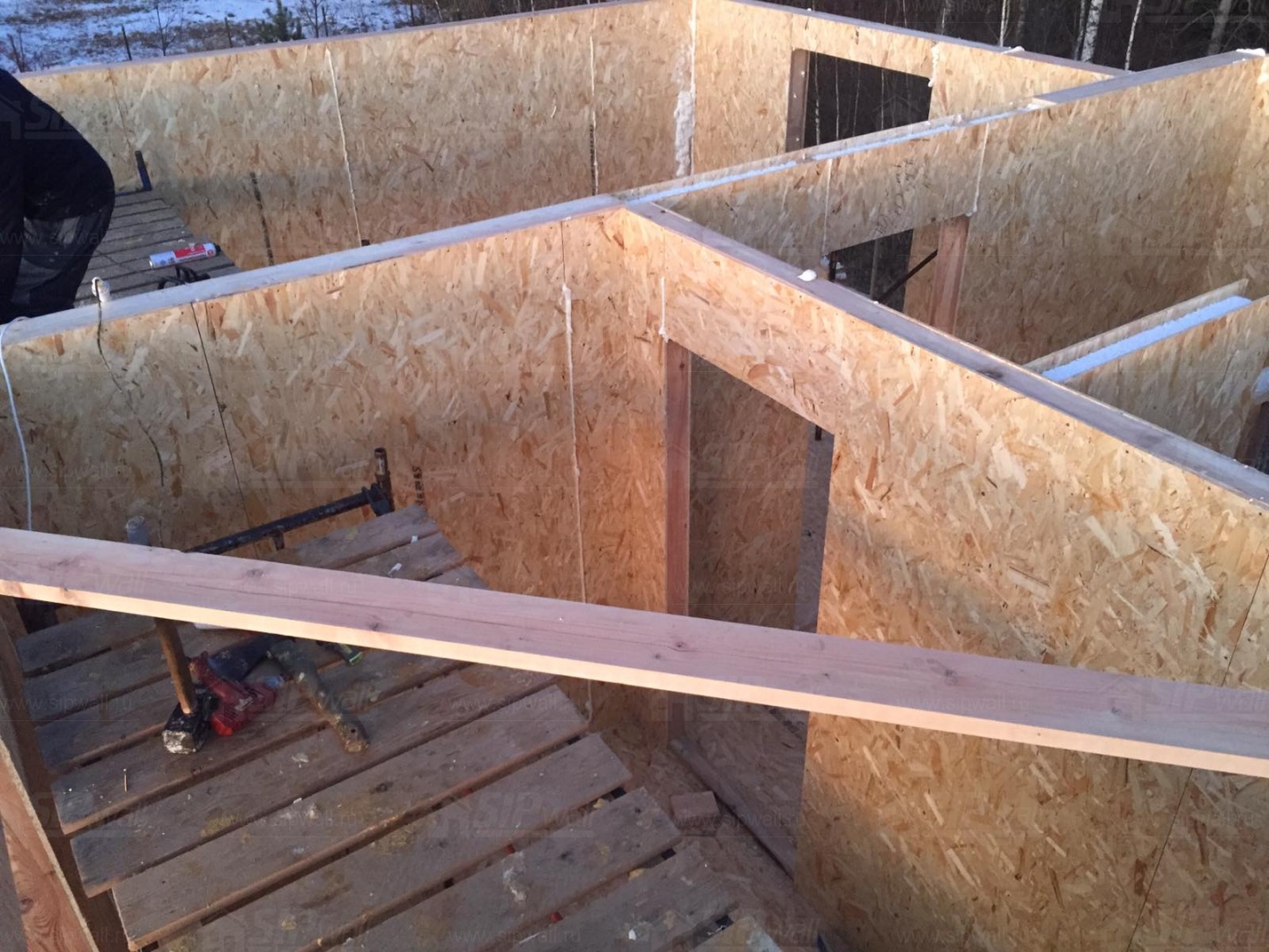 Все СИП панели SIPwall толщиной 224/174/124 мм (плиты OSB-3 толщиной 12 мм "Калевала" Россия и фасадный пенополистирол ППС-14 толщиной 200/150/100 мм производства, Россия) нарезаны и обрусованы сухим строганным брусом камерной сушки в соответствии с проектной документацией.