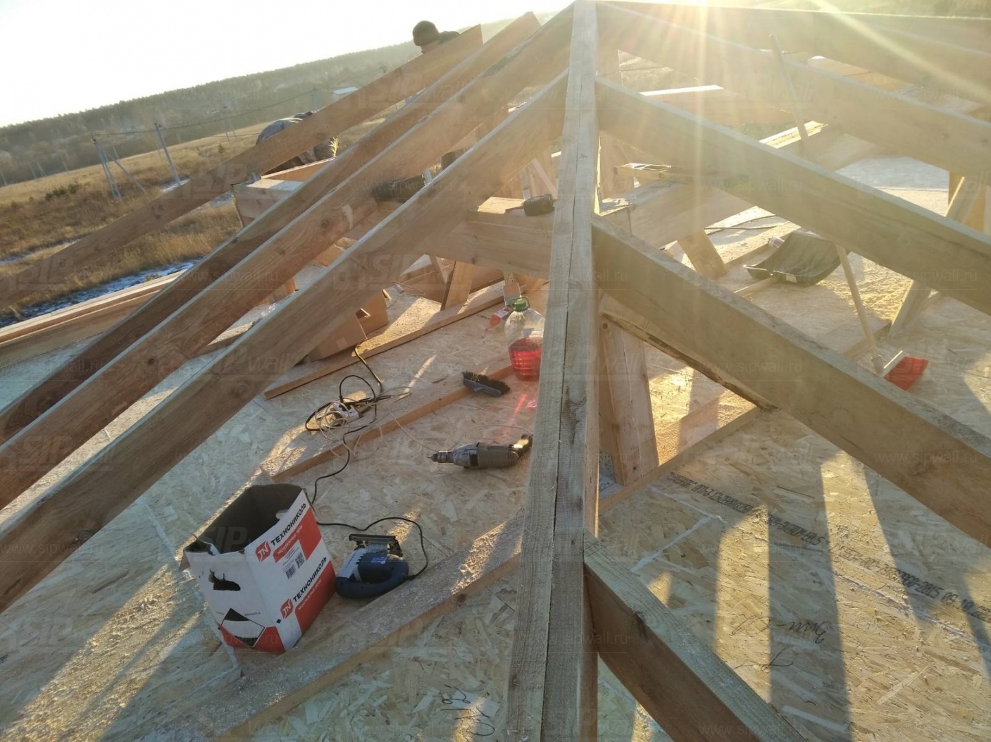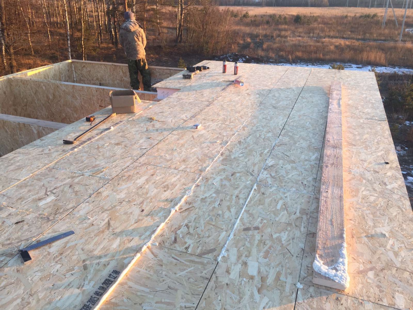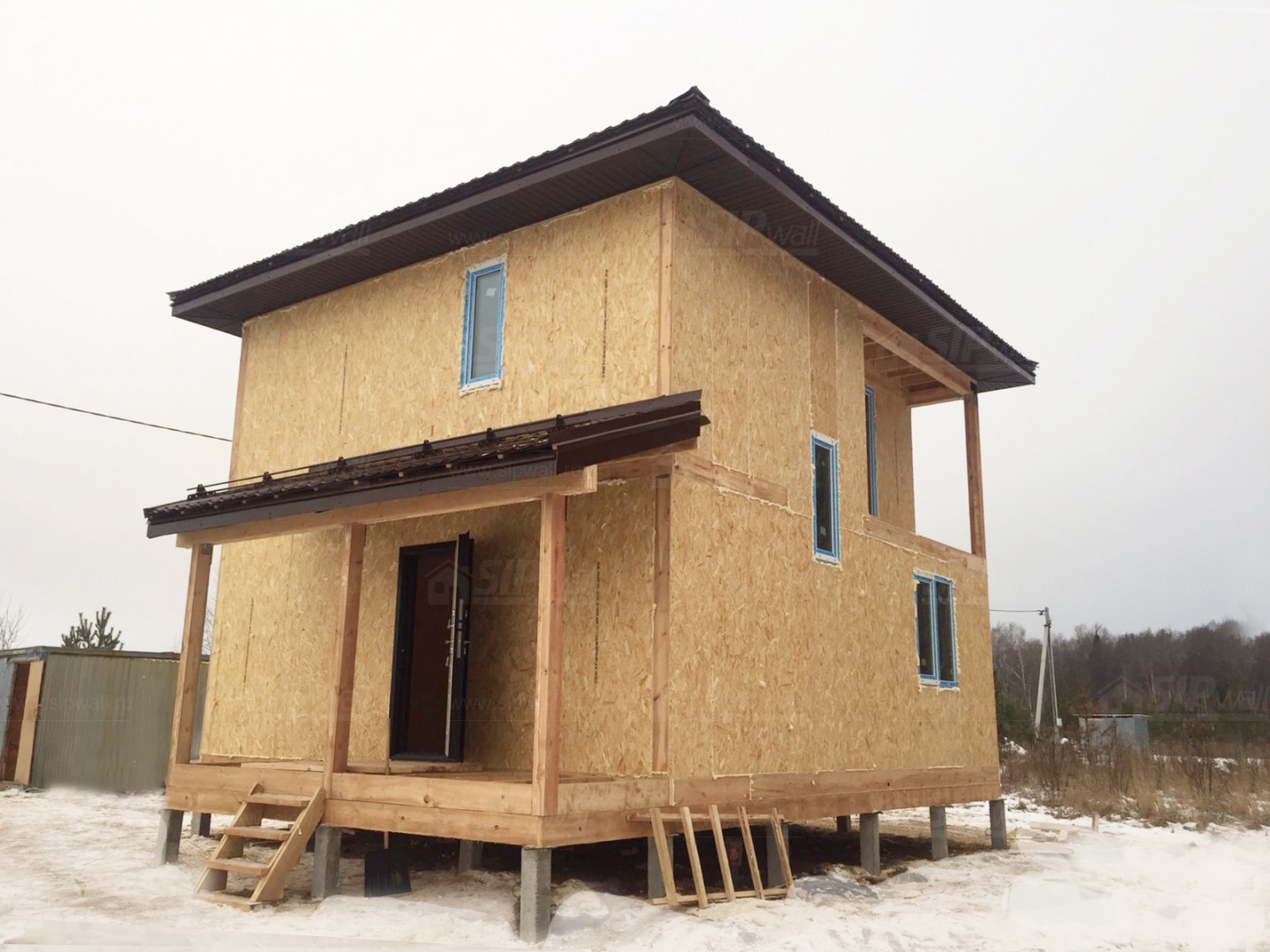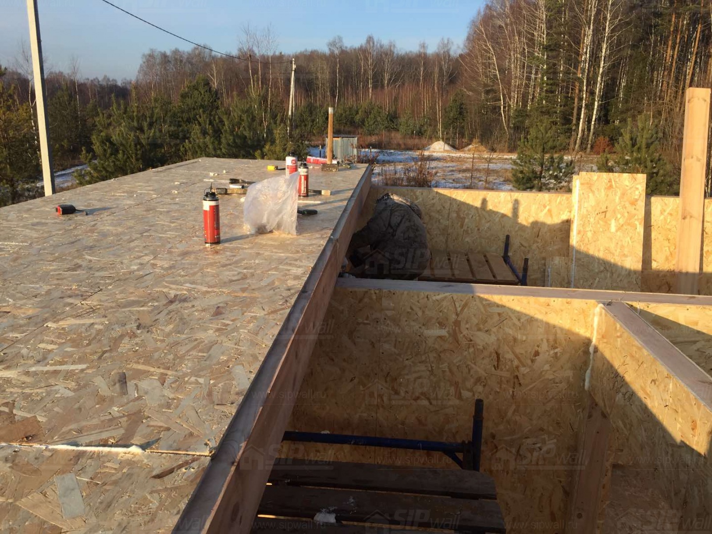 Все СИП панели SIPwall толщиной 224/174/124 мм (плиты OSB-3 толщиной 12 мм "Калевала" Россия и фасадный пенополистирол ППС-14 толщиной 200/150/100 мм производства, Россия) нарезаны и обрусованы сухим строганным брусом камерной сушки в соответствии с проектной документацией.