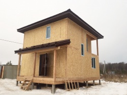 Домокомплект - изготовлен по проекту из СИП панелей произведенный по технологии SIPwall (ЭКОПАН) на собственном заводе расположенном в г. Шуя, Ивановской области. При изготовлении домокомплекта панельно каркасного дома используется только сухой строганный брус камерной сушки, обработанный огнебиозащитным составом.