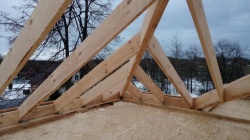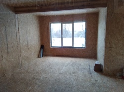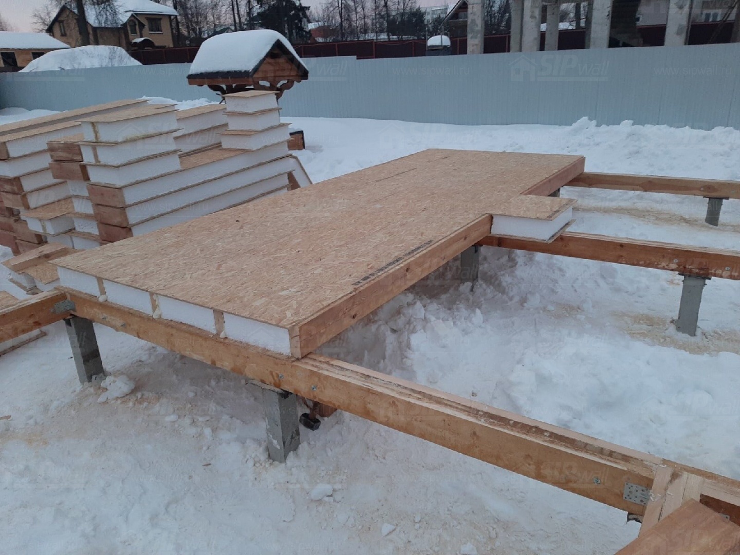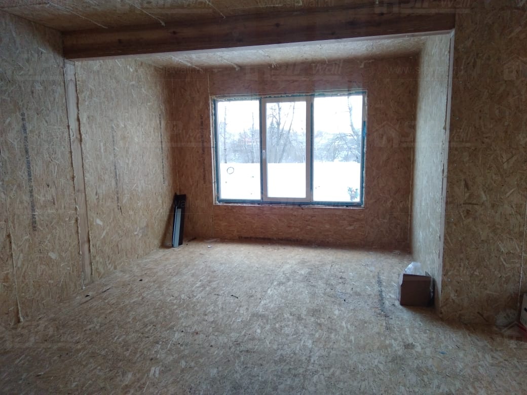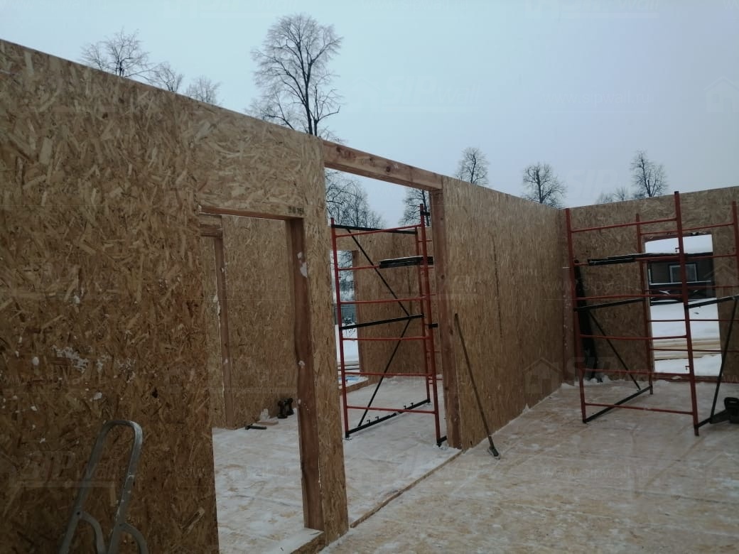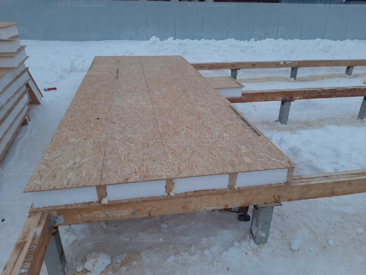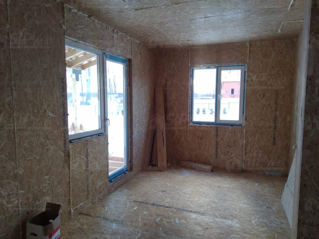 Все СИП панели SIPwall толщиной 224/174/124 мм (плиты OSB-3 толщиной 12 мм "Калевала" Россия и фасадный пенополистирол ППС-14 толщиной 200/150/100 мм производства, Россия) нарезаны и обрусованы сухим строганным брусом камерной сушки в соответствии с проектной документацией.
