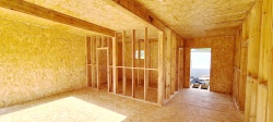 Все СИП панели SIPwall толщиной 224/174/124 мм (плиты OSB-3 толщиной 12 мм "Калевала" Россия и фасадный пенополистирол ПСБ-С 25 по ГОСТ 15588-14 толщиной 200/150/100 мм производства завода "PolarPlast", Россия) нарезаны и обрусованы сухим строганным брусом камерной сушки в соответствии с проектной документацией.