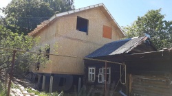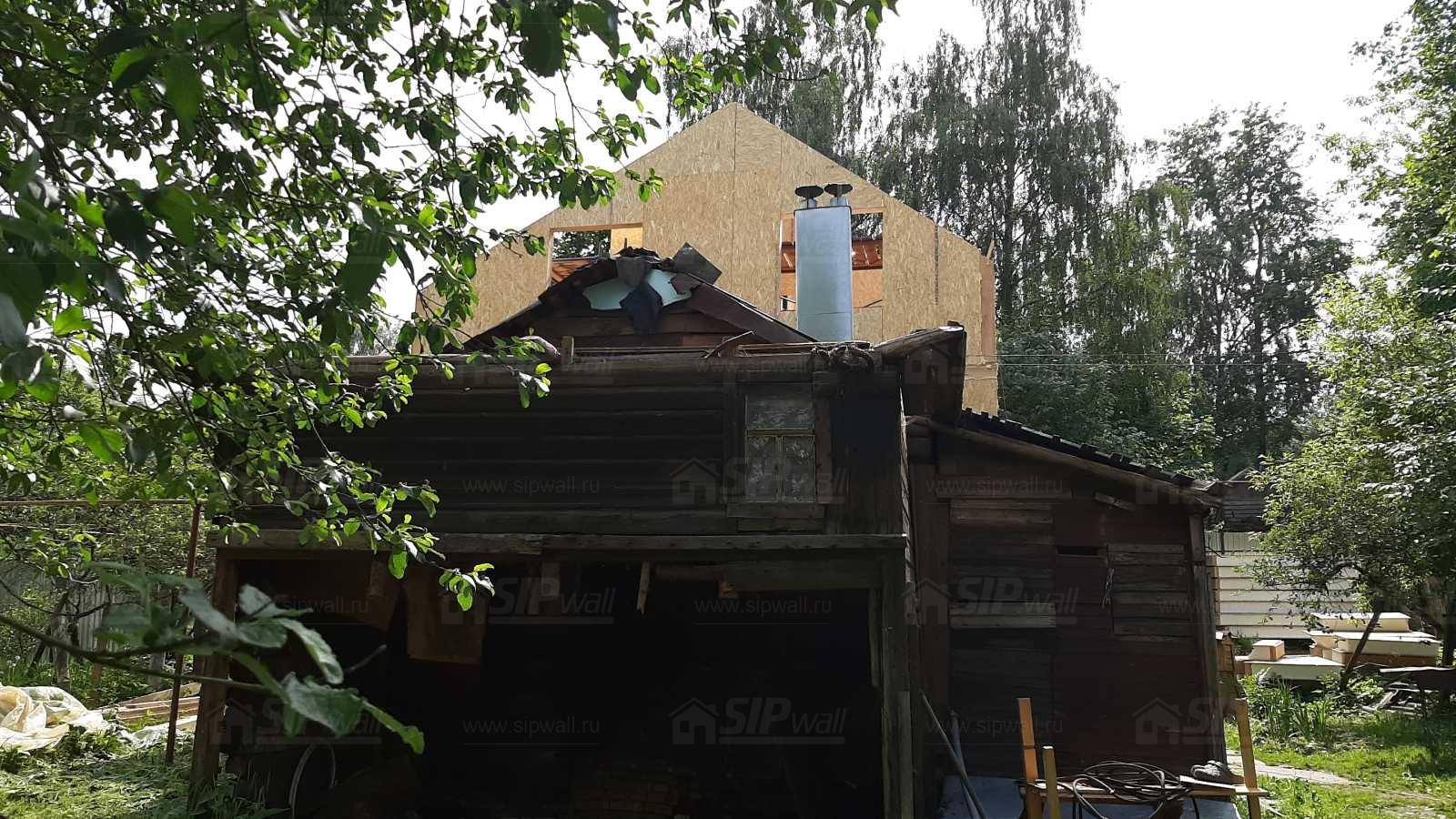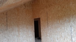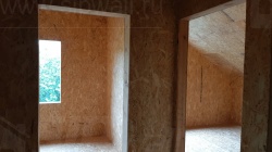 Комплектация домокомплекта: перекрытие на отметке +0.000 - СИП - 224У мм., несущие стены дома выполнены из СИП панелей 174 мм, внутренние несущие стены выполнены из СИП панелей 174 мм и не несущие стены выполнены из СИП панелей 124 мм. Кровля дома выполнена из СИП панелей 174 мм.