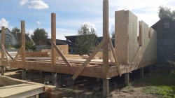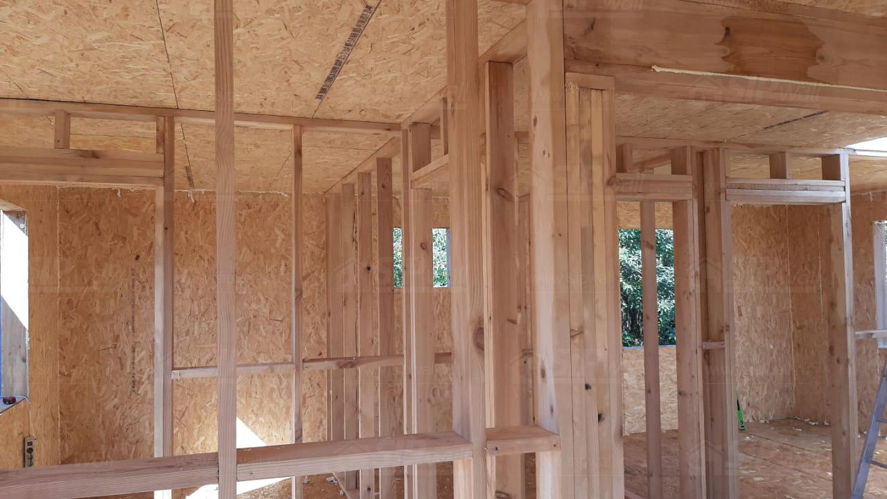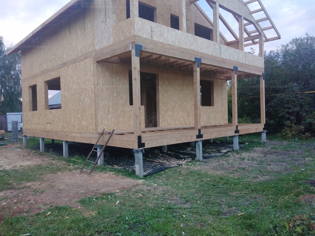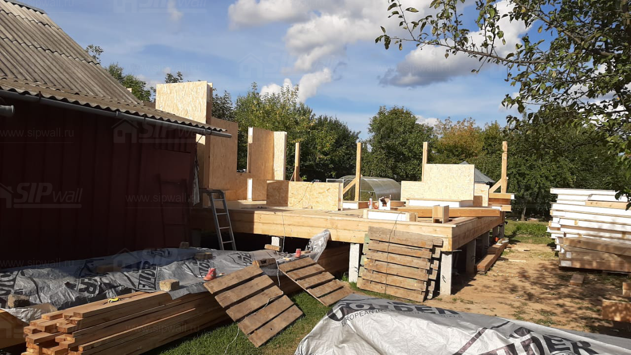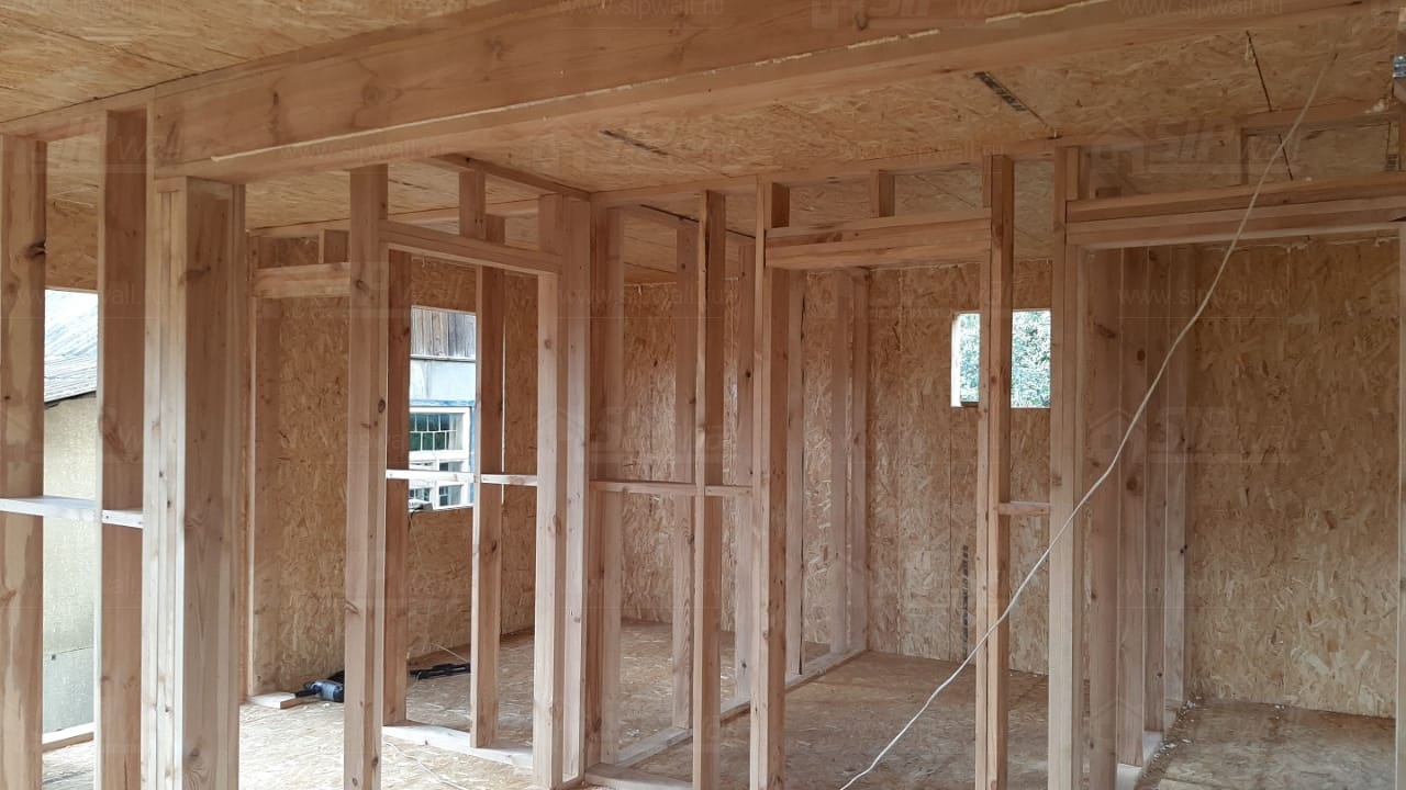 Все СИП панели SIPwall толщиной 224/174/124 мм (плиты OSB-3 толщиной 12 мм "Калевала" Россия и фасадный пенополистирол ППС-14 толщиной 200/150/100 мм производства, Россия) нарезаны и обрусованы сухим строганным брусом камерной сушки в соответствии с проектной документацией.