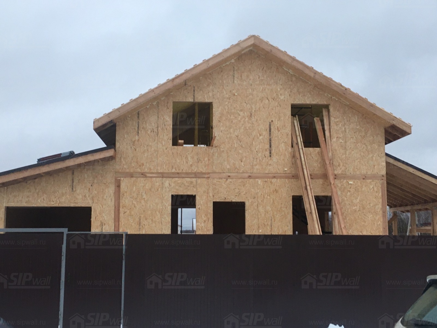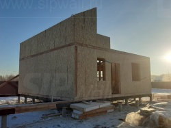 <b>Все СИП панели</b> SIPwall толщиной 224/174/124 мм (плиты OSB-3 толщиной 12 мм "Калевала" Россия и фасадный пенополистирол ПСБ-С 25 по ГОСТ 15588-14 толщиной 200/150/100 мм производства завода "PolarPlast", Россия) нарезаны и обрусованы сухим строганным брусом камерной сушки в соответствии с проектной документацией.<br>