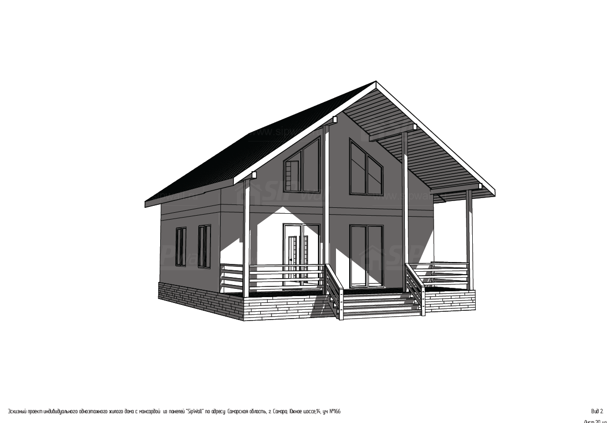 Домокомплект - изготовлен по проекту из СИП панелей произведенный по технологии SIPwall (ЭКОПАН) на собственном заводе расположенном в г. Шуя, Ивановской области. При изготовлении домокомплекта панельно каркасного дома используется только сухой строганный брус камерной сушки, обработанный огнебиозащитным составом.