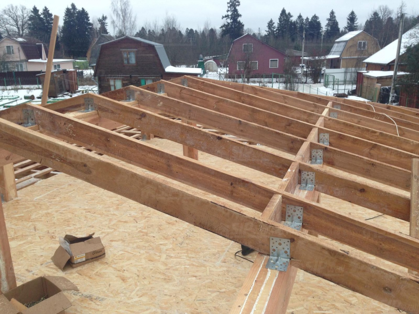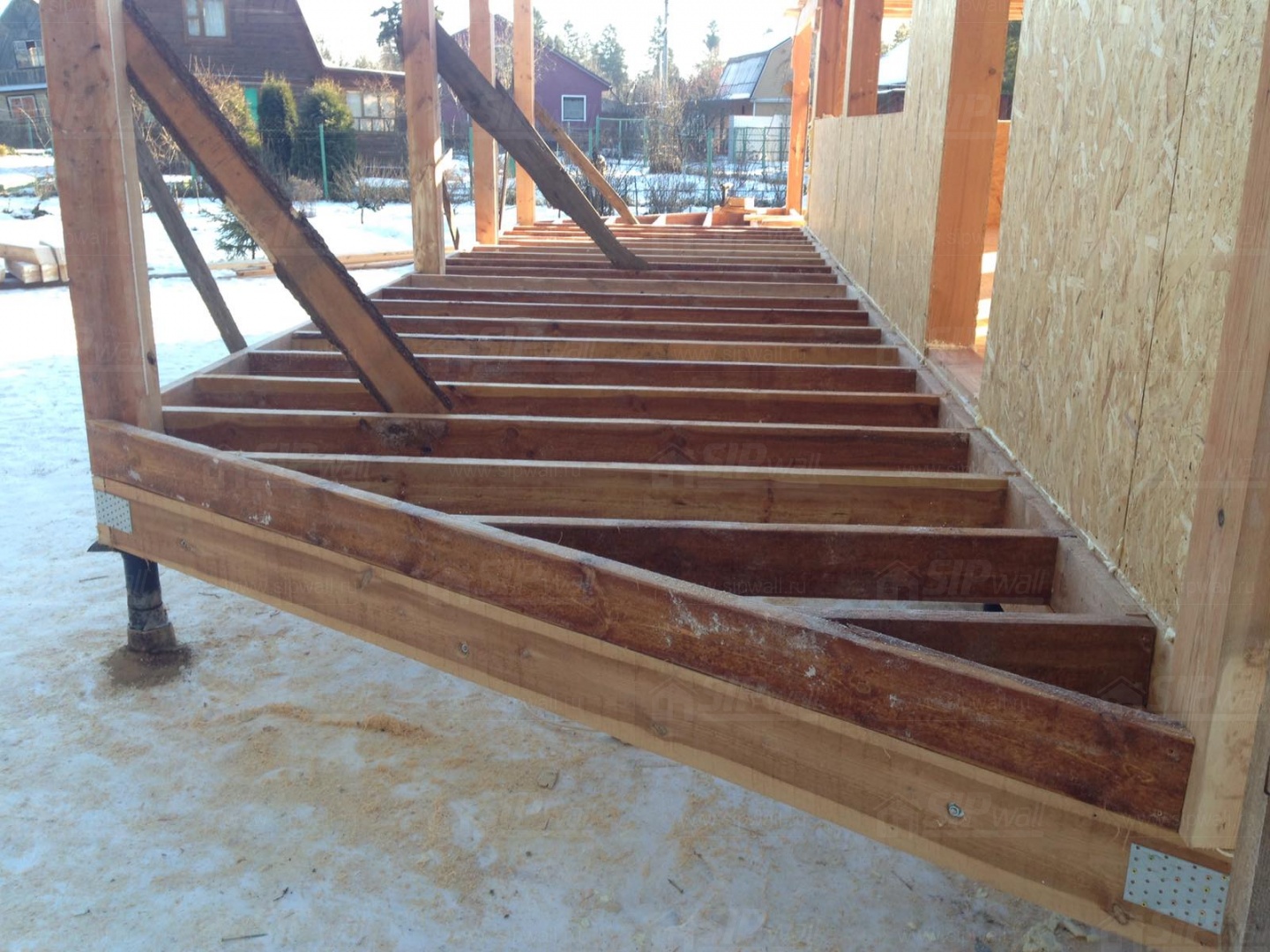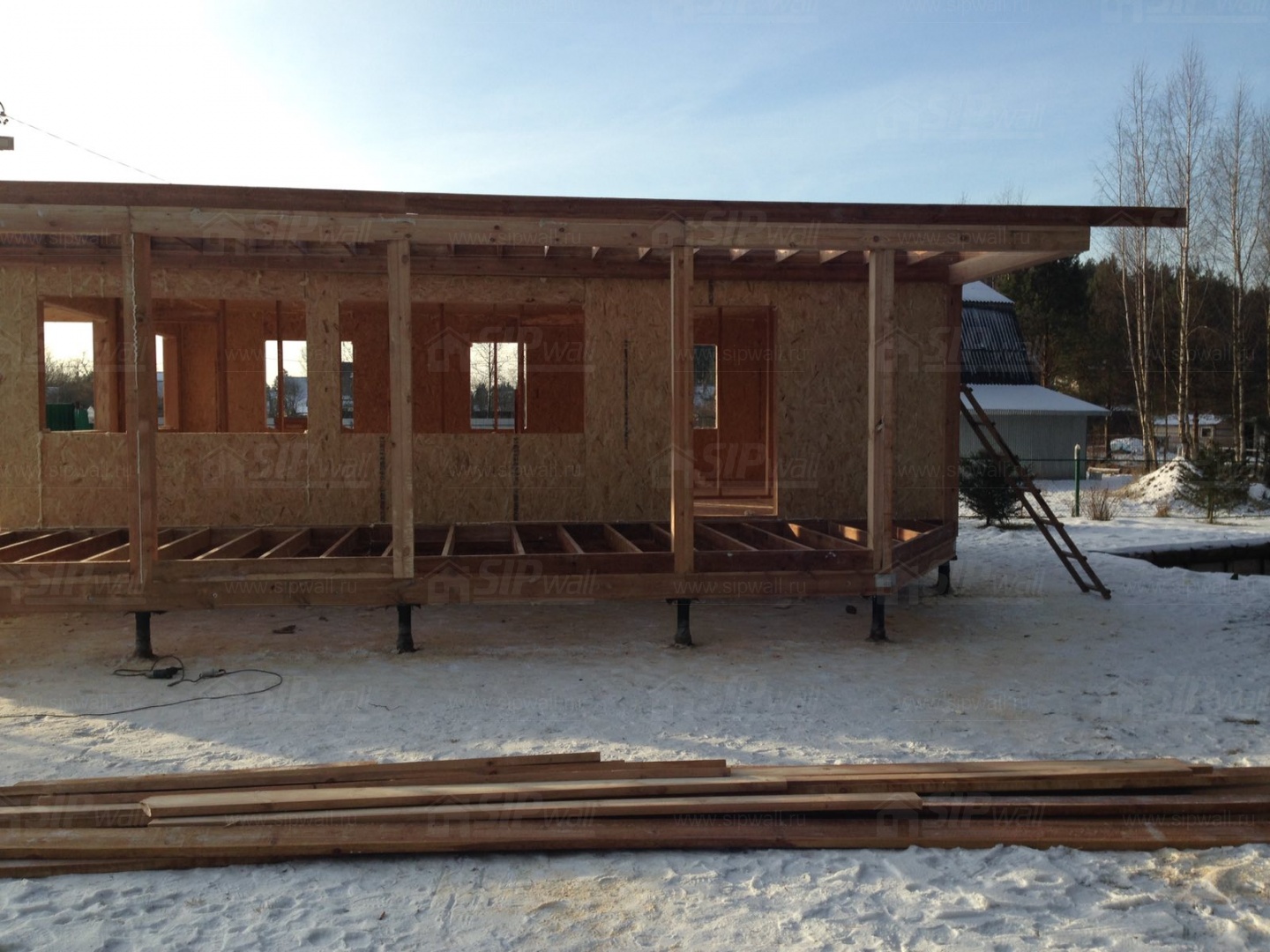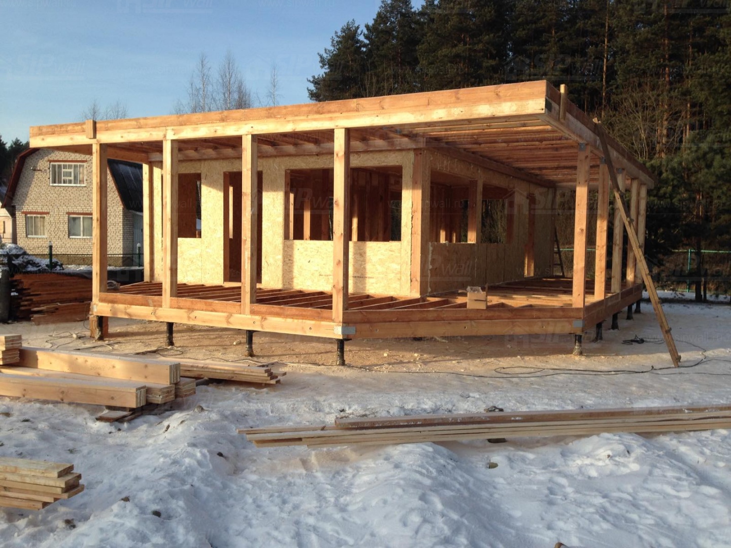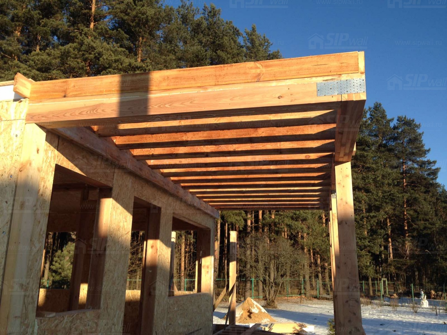 Все СИП панели SIPwall толщиной 224/174/124 мм (плиты OSB-3 толщиной 12 мм "Калевала" Россия и фасадный пенополистирол ППС-14 толщиной 200/150/100 мм производства, Россия) нарезаны и обрусованы сухим строганным брусом камерной сушки в соответствии с проектной документацией.