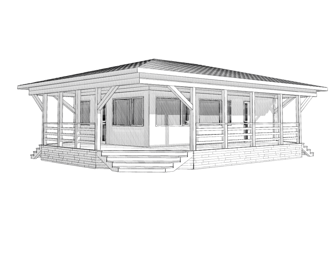 Домокомплект - изготовлен по проекту из СИП панелей произведенный по технологии SIPwall (ЭКОПАН) на собственном заводе расположенном в г. Шуя, Ивановской области. При изготовлении домокомплекта панельно каркасного дома используется только сухой строганный брус камерной сушки, обработанный огнебиозащитным составом.