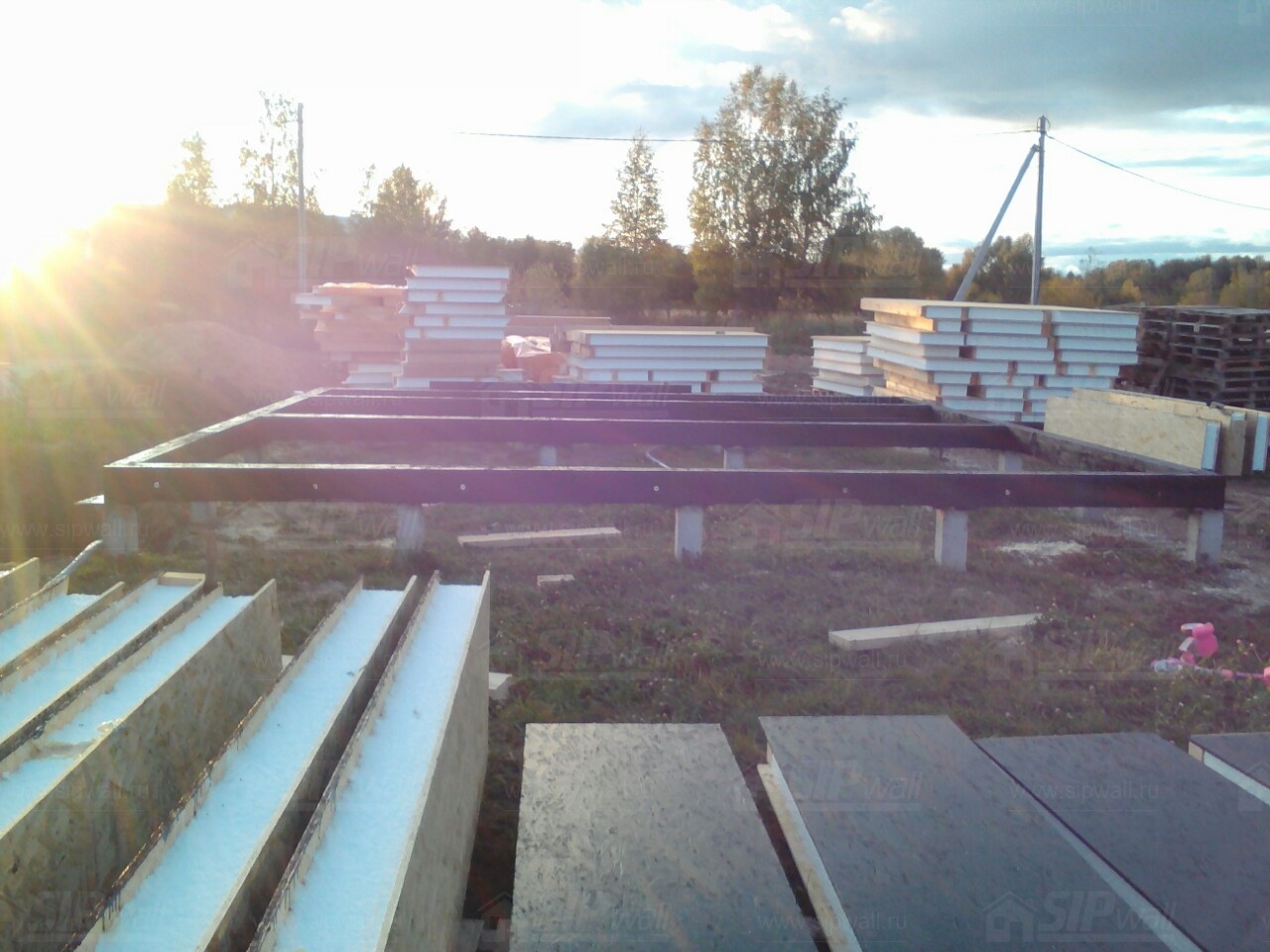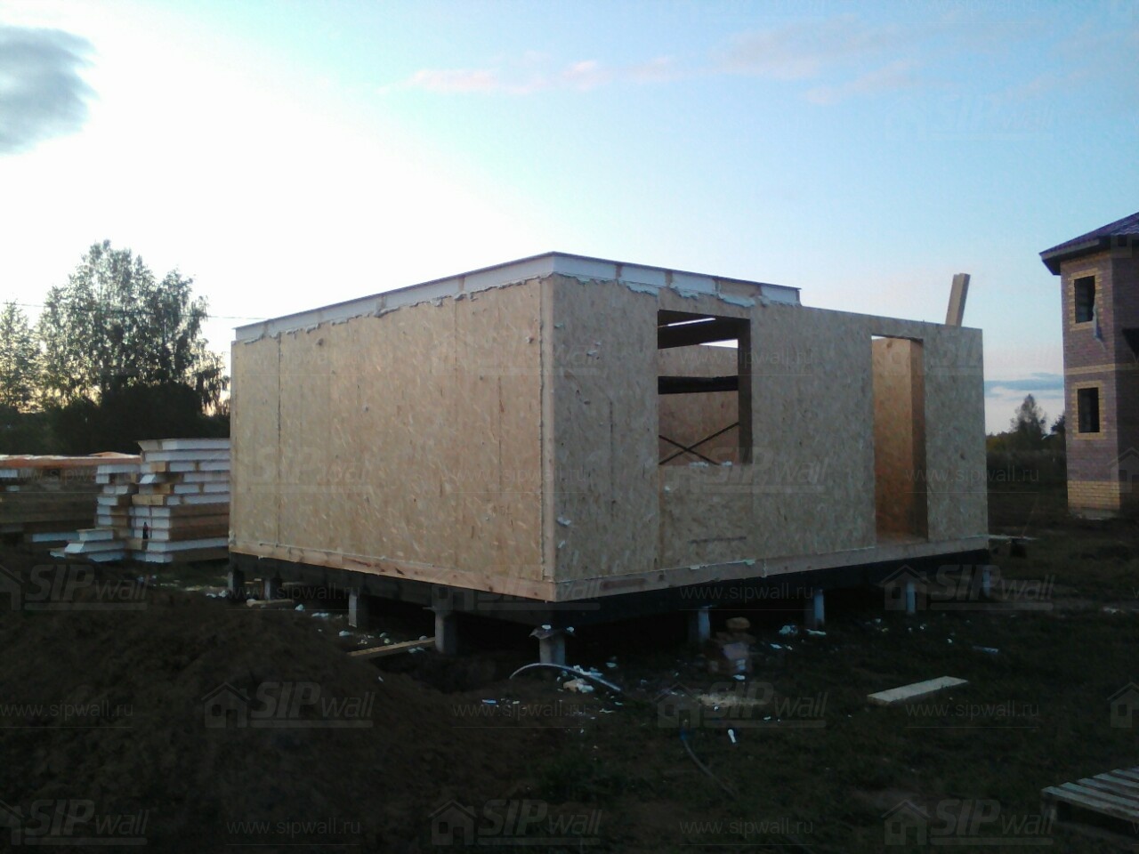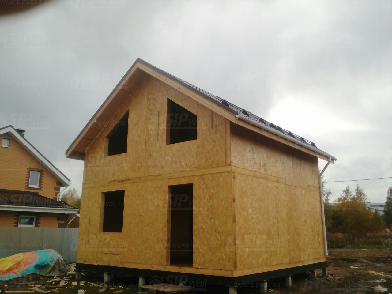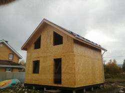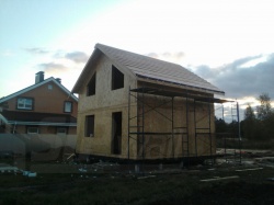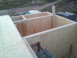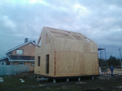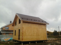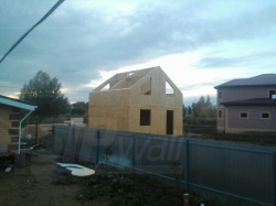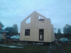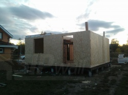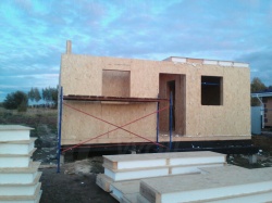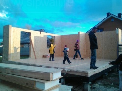 Комплектация домокомплекта: перекрытие на отметке +0.000 - СИП - 174У мм., несущие стены дома выполнены из СИП панелей 174 мм., внутренние несущие стены из СИП панелей 174 мм. и внутренние не несущие перегородки выполнены из СИП панелей 124 мм. Кровля - СИП - 174У мм.