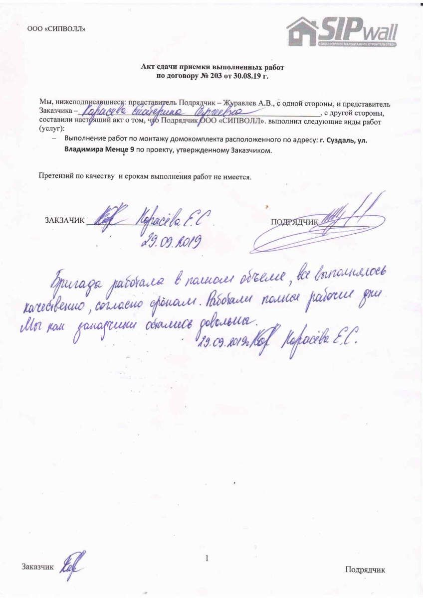 На выходе с завода «СИПВОЛЛ» домокомплект имеет 99-% ную готовность.
