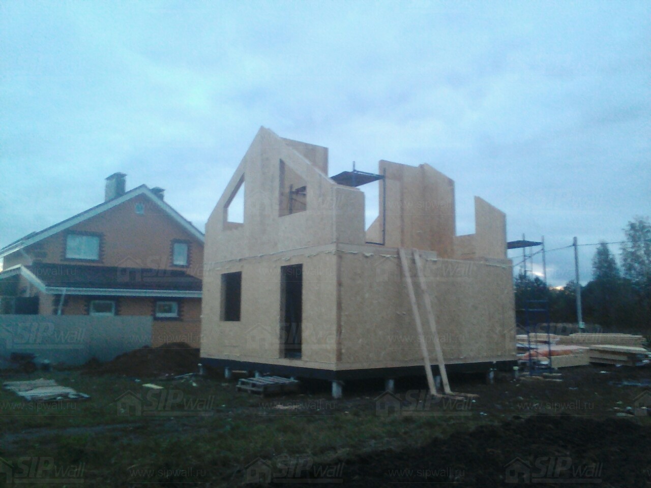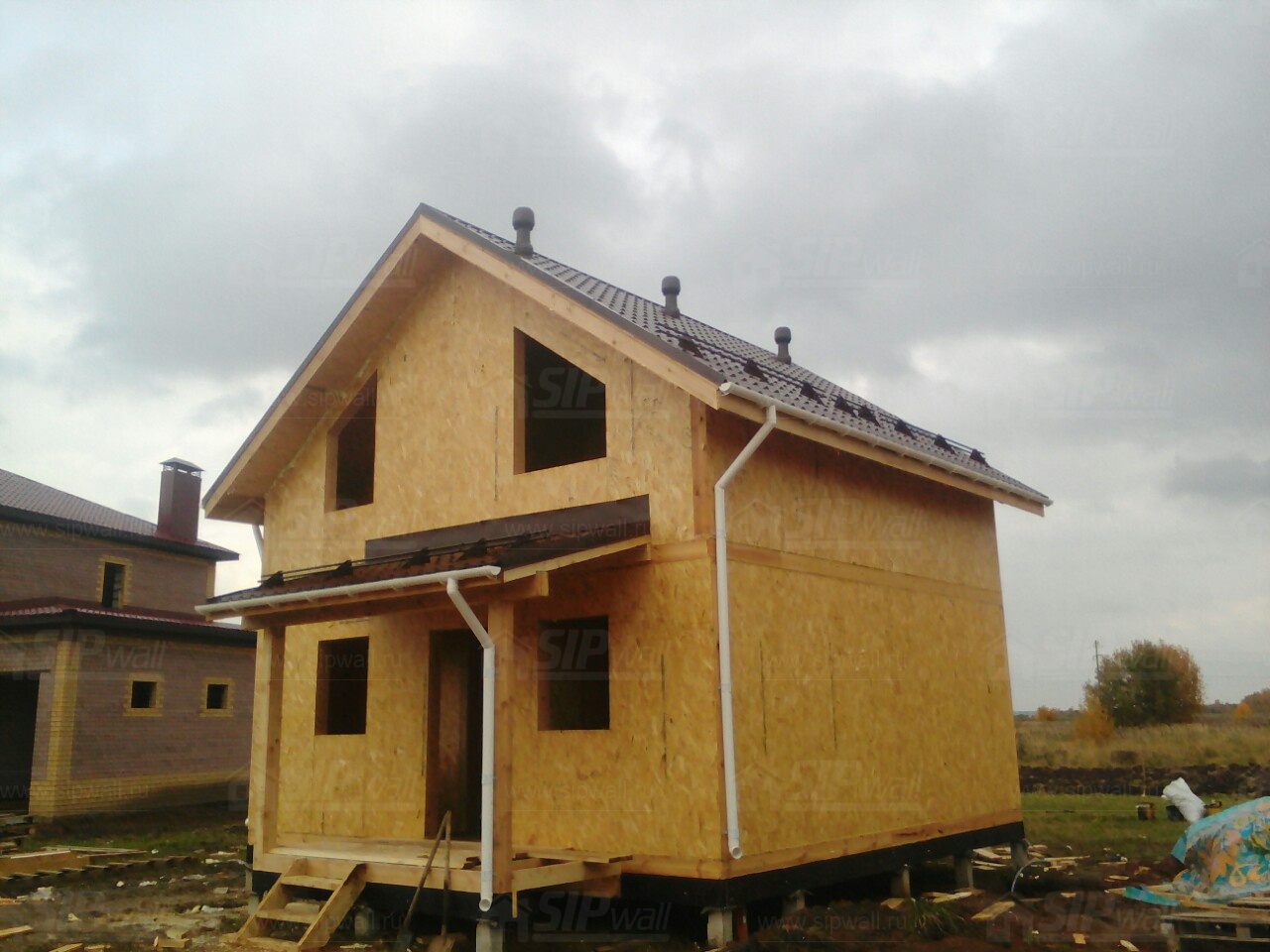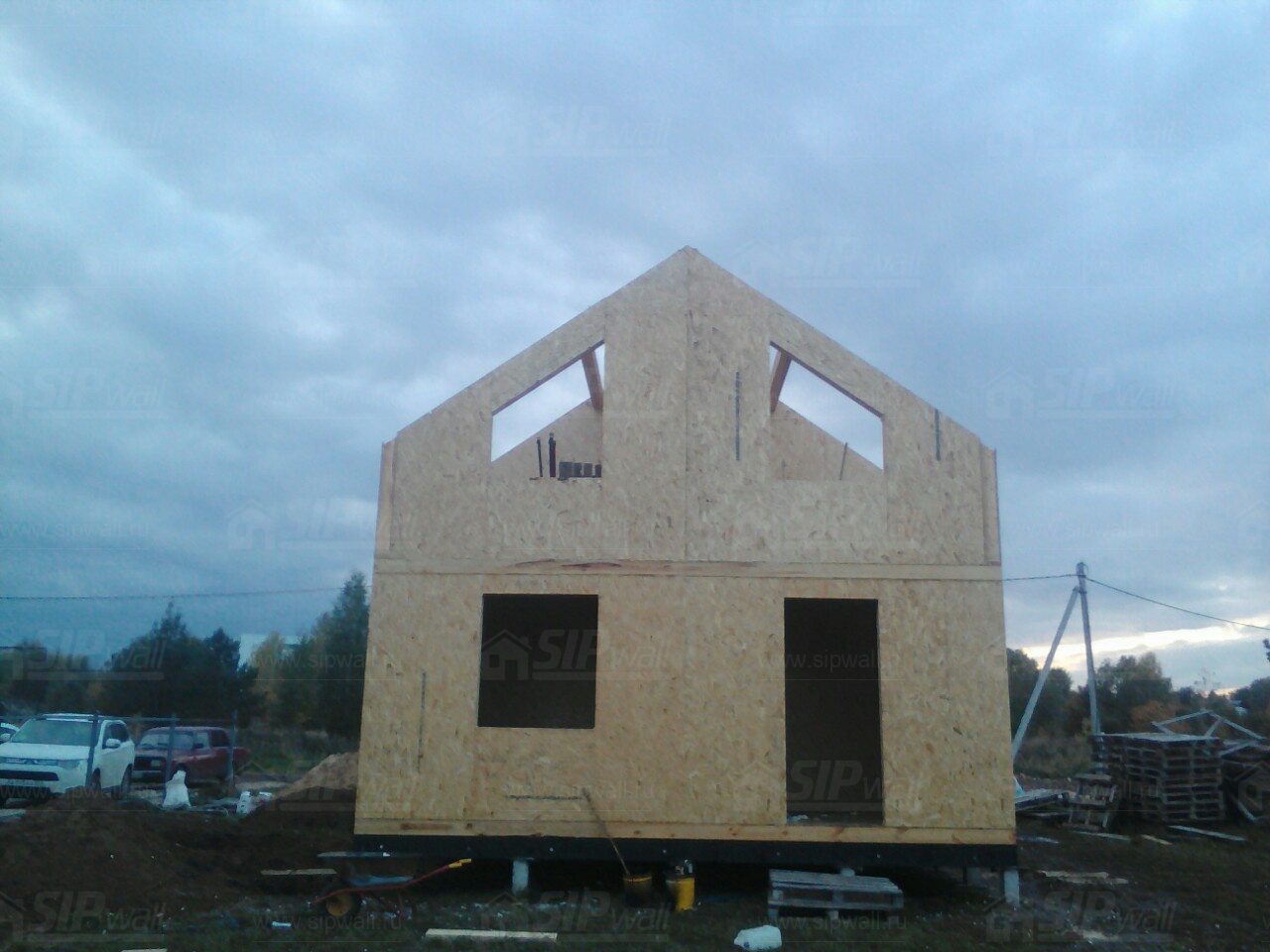 Домокомплект - изготовлен по проекту из СИП панелей произведенный по технологии SIPwall (ЭКОПАН) на собственном заводе расположенном в г. Шуя, Ивановской области. При изготовлении домокомплекта панельно каркасного дома используется только сухой строганный брус камерной сушки, обработанный огнебиозащитным составом.