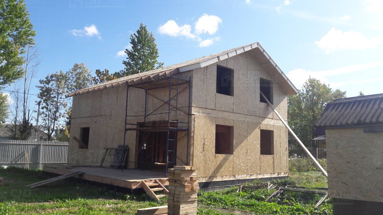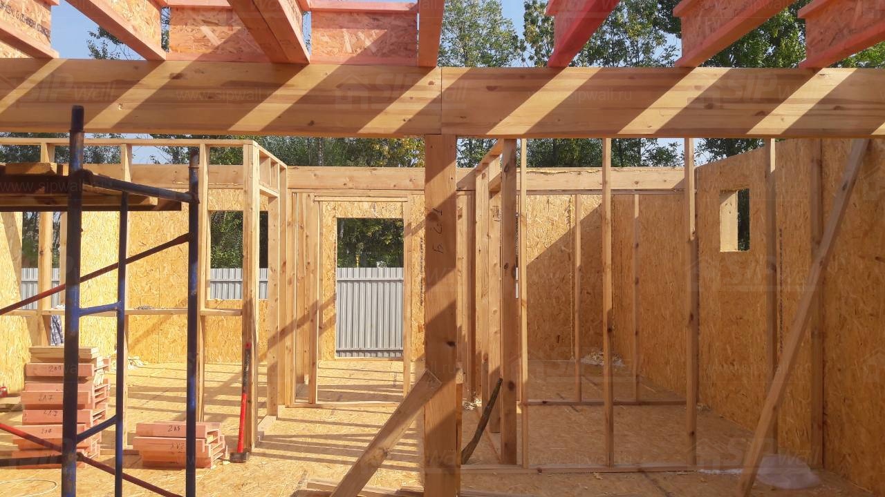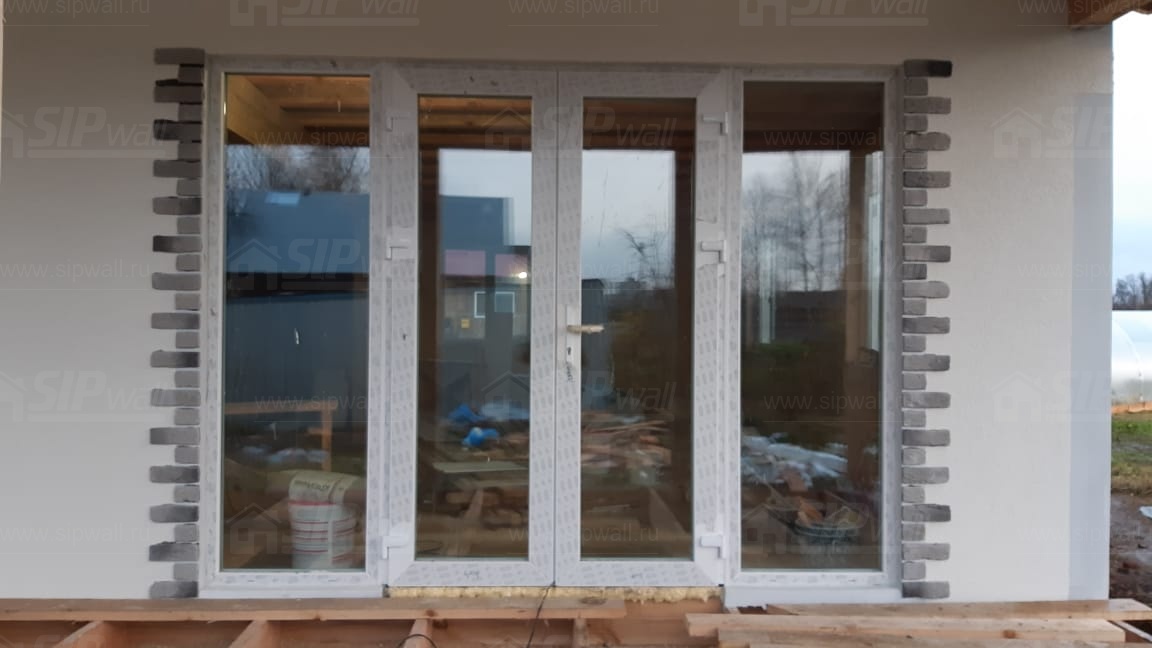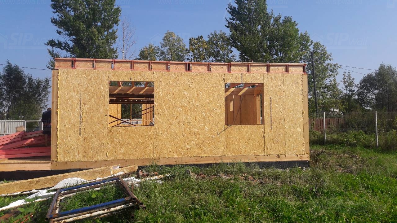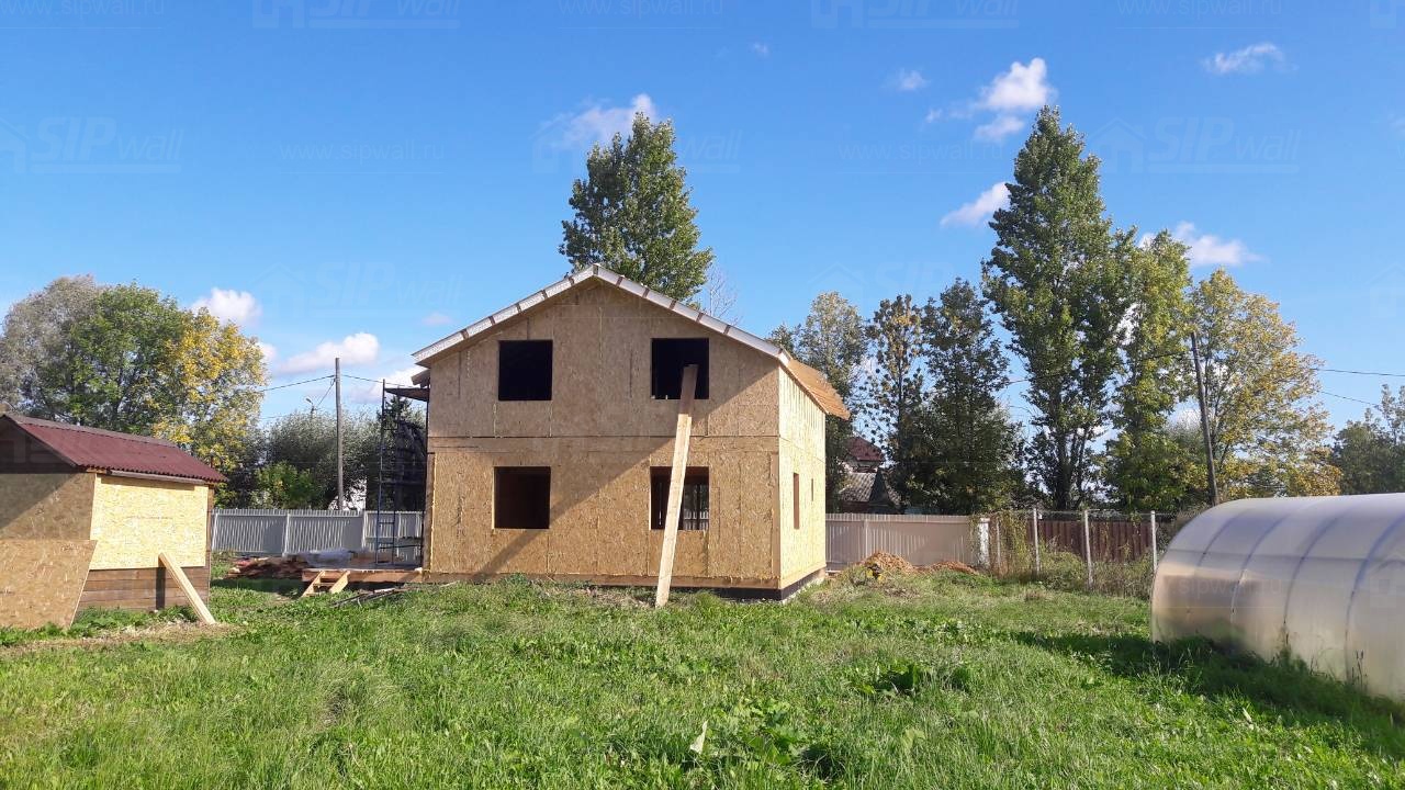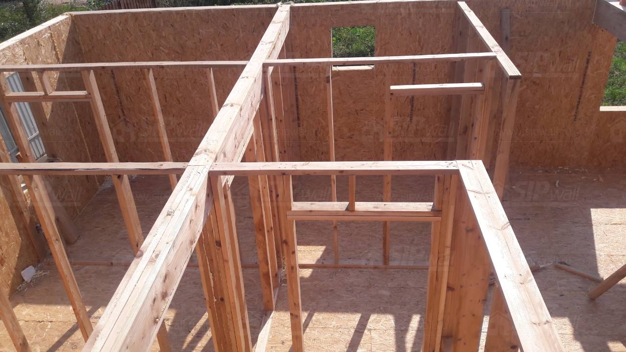 Все СИП панели SIPwall толщиной 224/174/124 мм (плиты OSB-3 толщиной 12 мм "Калевала" Россия и фасадный пенополистирол ПСБ-С 25 по ГОСТ 15588-14 толщиной 200/150/100 мм производства завода "PolarPlast", Россия) нарезаны и обрусованы сухим строганным брусом камерной сушки в соответствии с проектной документацией.