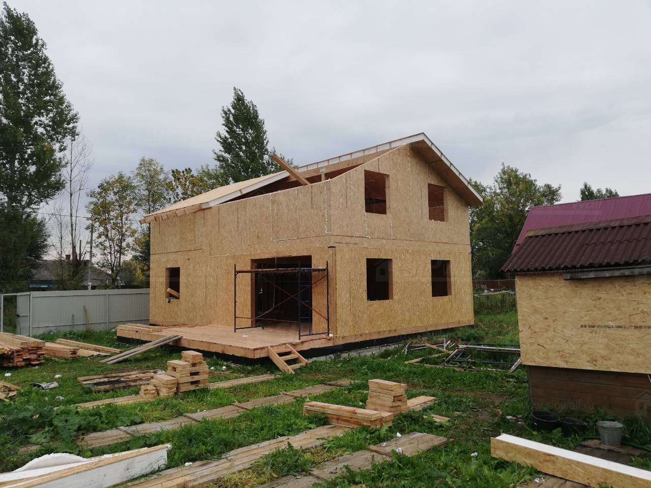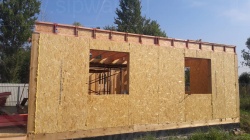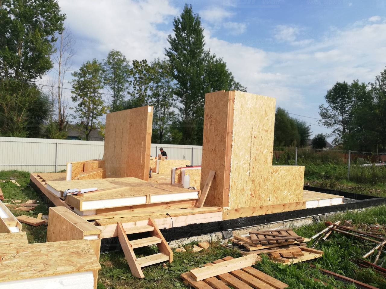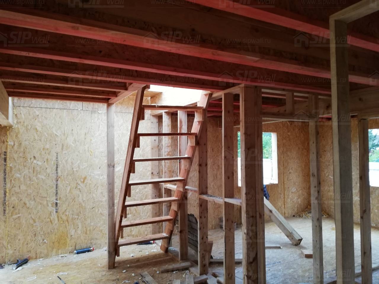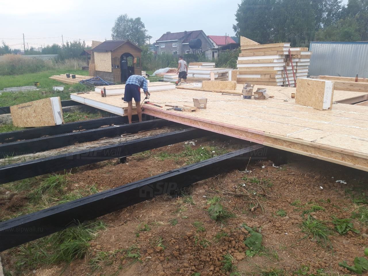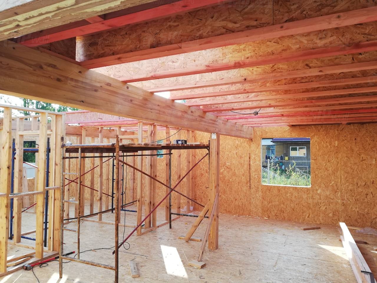 Все СИП панели SIPwall толщиной 224/174/124 мм (плиты OSB-3 толщиной 12 мм "Калевала" Россия и фасадный пенополистирол ПСБ-С 25 по ГОСТ 15588-14 толщиной 200/150/100 мм производства завода "PolarPlast", Россия) нарезаны и обрусованы сухим строганным брусом камерной сушки в соответствии с проектной документацией.