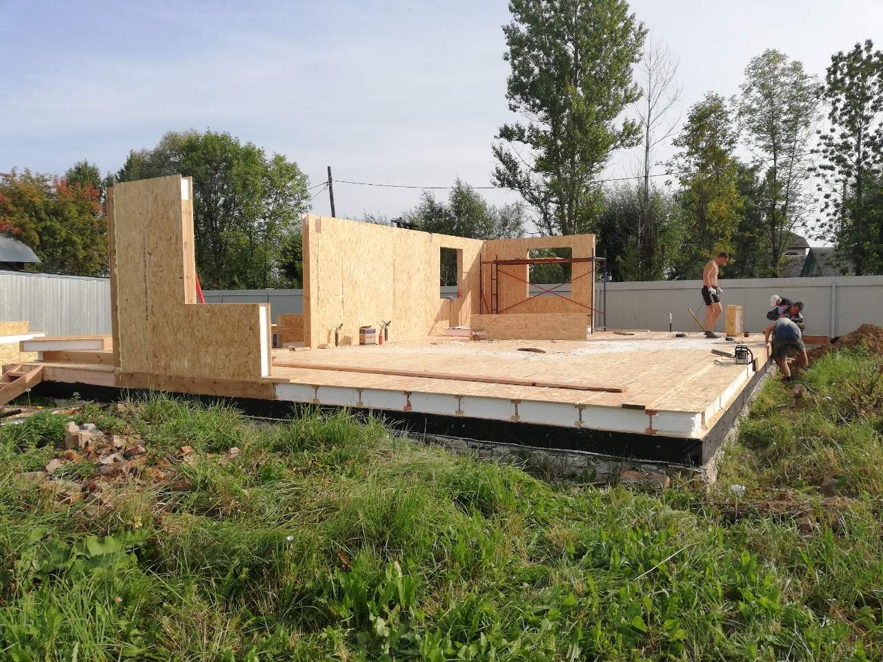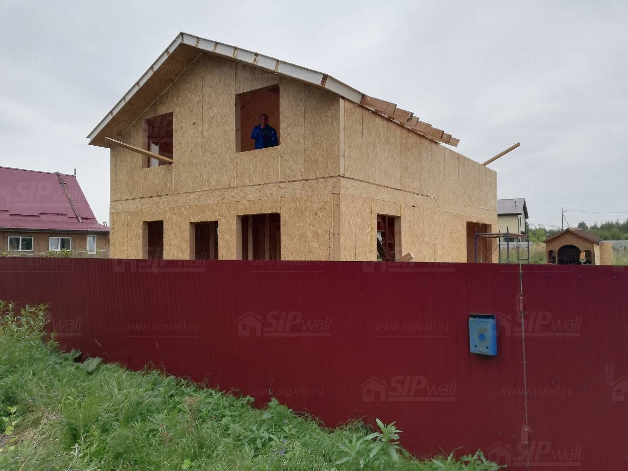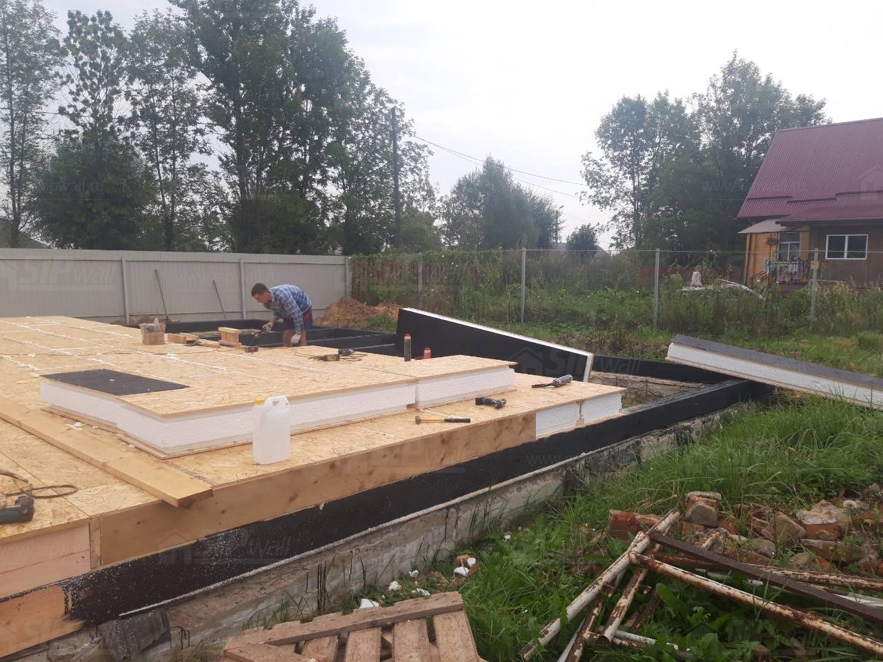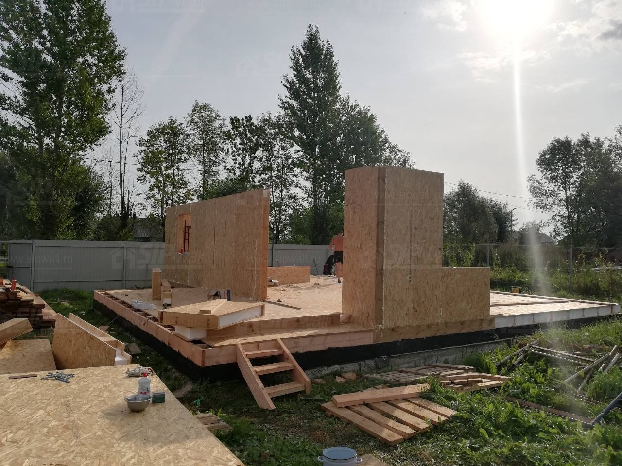 Все СИП панели SIPwall толщиной 224/174/124 мм (плиты OSB-3 толщиной 12 мм "Калевала" Россия и фасадный пенополистирол ПСБ-С 25 по ГОСТ 15588-14 толщиной 200/150/100 мм производства завода "PolarPlast", Россия) нарезаны и обрусованы сухим строганным брусом камерной сушки в соответствии с проектной документацией.
