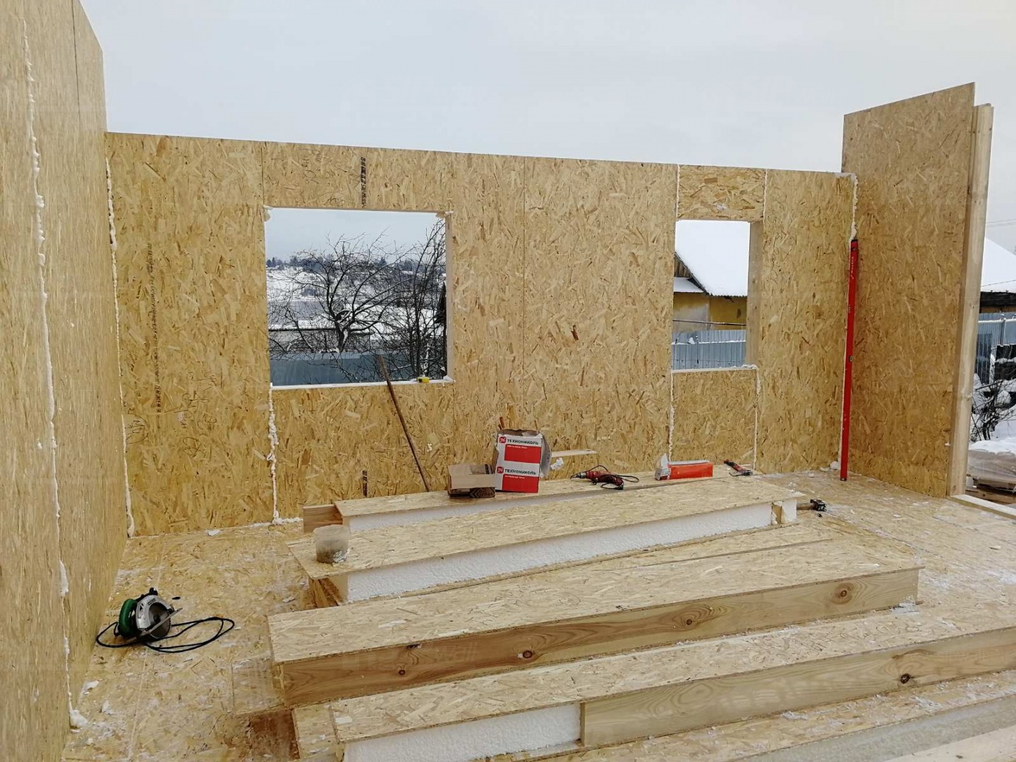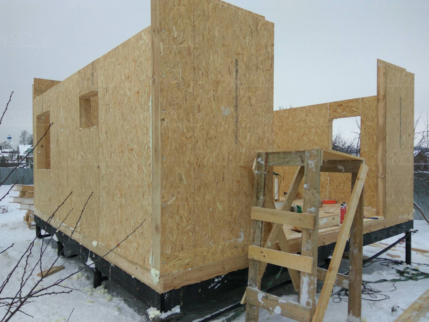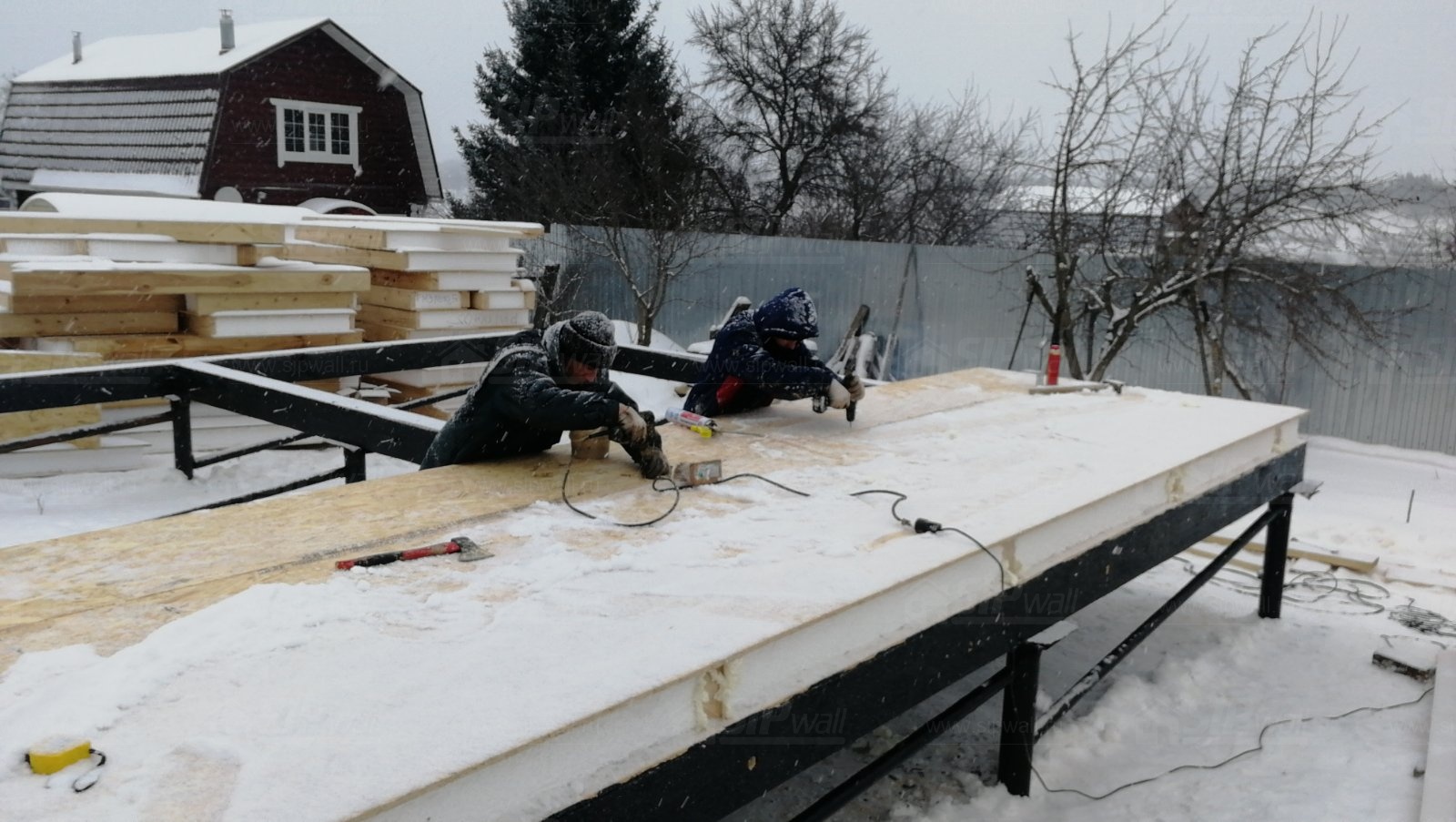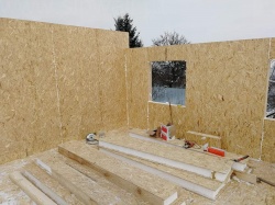 Все СИП панели SIPwall толщиной 224/174/124 мм (плиты OSB-3 толщиной 12 мм "Калевала" Россия и фасадный пенополистирол ПСБ-С 25Ф по ТУ 22.21.41.110−004 – 44755395 −2017 толщиной 200/150/100 мм производства завода "PolarPlast", Россия) нарезаны и обрусованы сухим строганным брусом камерной сушки в соответствии с проектной документацией.