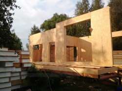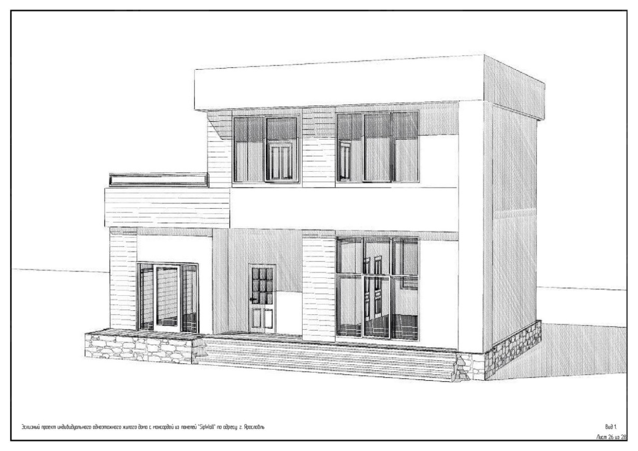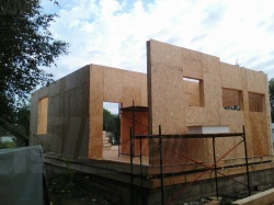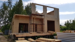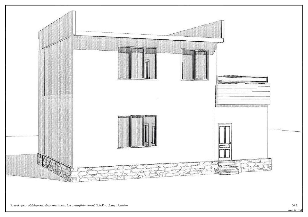 Домокомплект - изготовлен по проекту из СИП панелей произведенный по технологии SIPwall (ЭКОПАН) на собственном заводе расположенном в г. Шуя, Ивановской области. При изготовлении домокомплекта панельно каркасного дома используется только сухой строганный брус камерной сушки, обработанный огнебиозащитным составом.