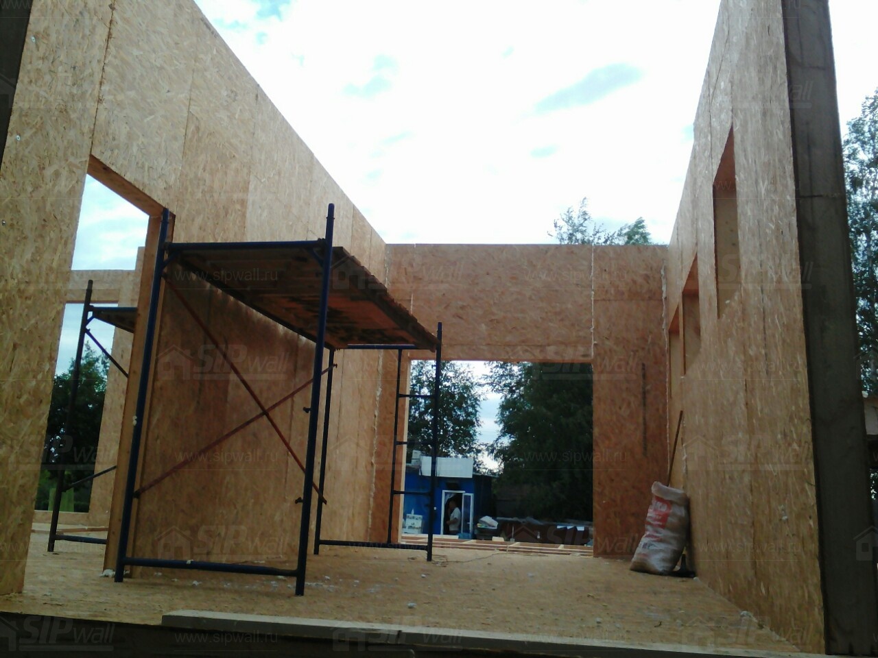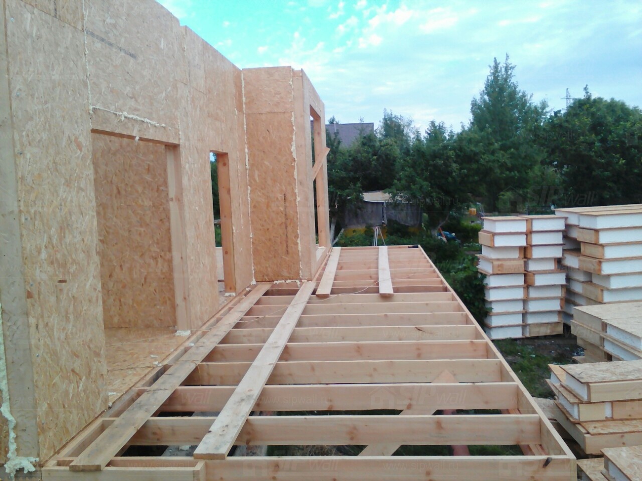 Комплектация домокомплекта: перекрытие на отметке +0.000 - СИП - 224У мм., несущие стены дома выполнены из СИП панелей 174 мм., внутренние несущие стены и внутренние не несущие перегородки выполнены по каркасной технологии. Чердачное перекрытие - СИП - 224У мм, Кровля - стропильная система.