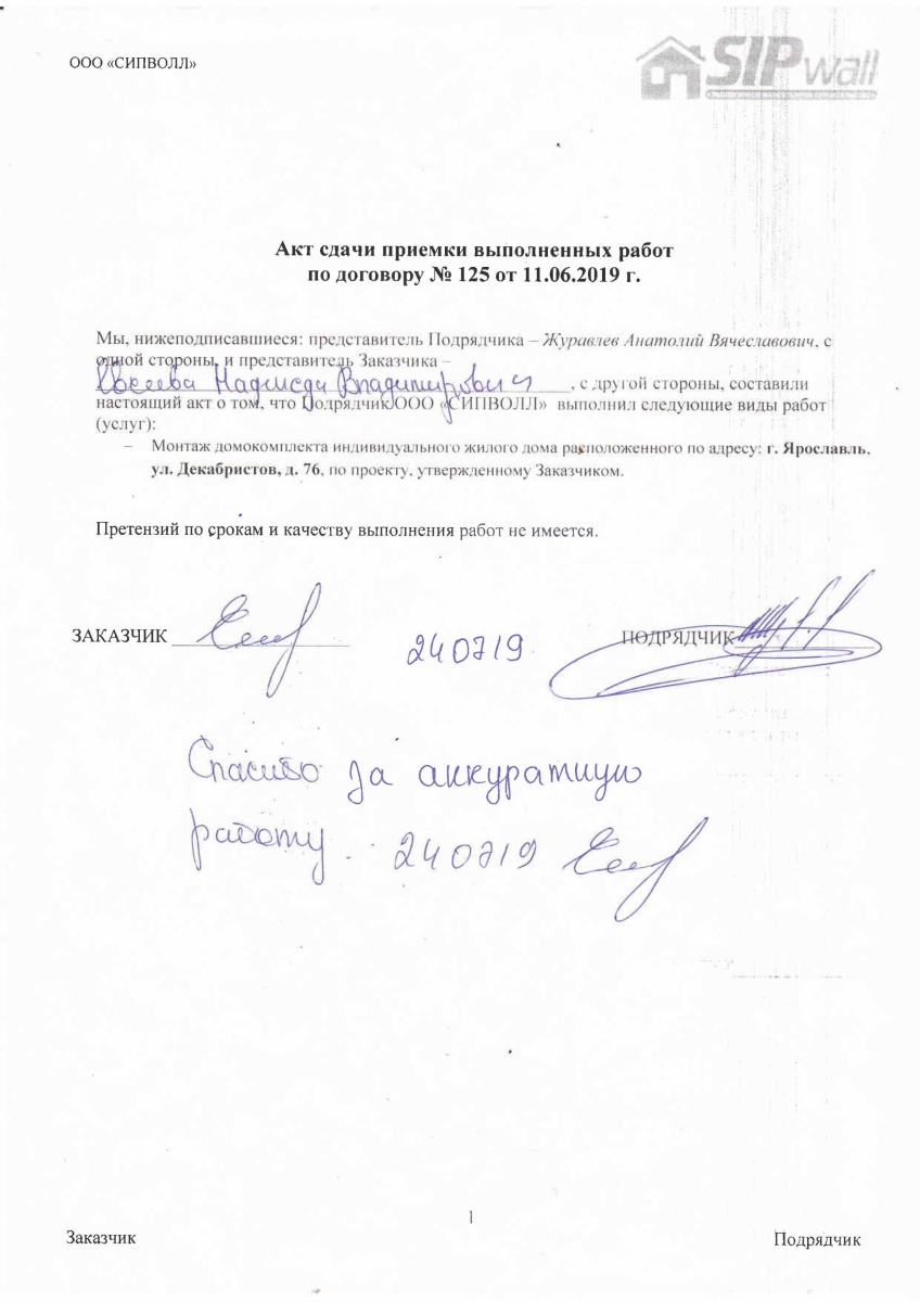 На выходе с завода «СИПВОЛЛ» домокомплект имеет 99-% ную готовность.