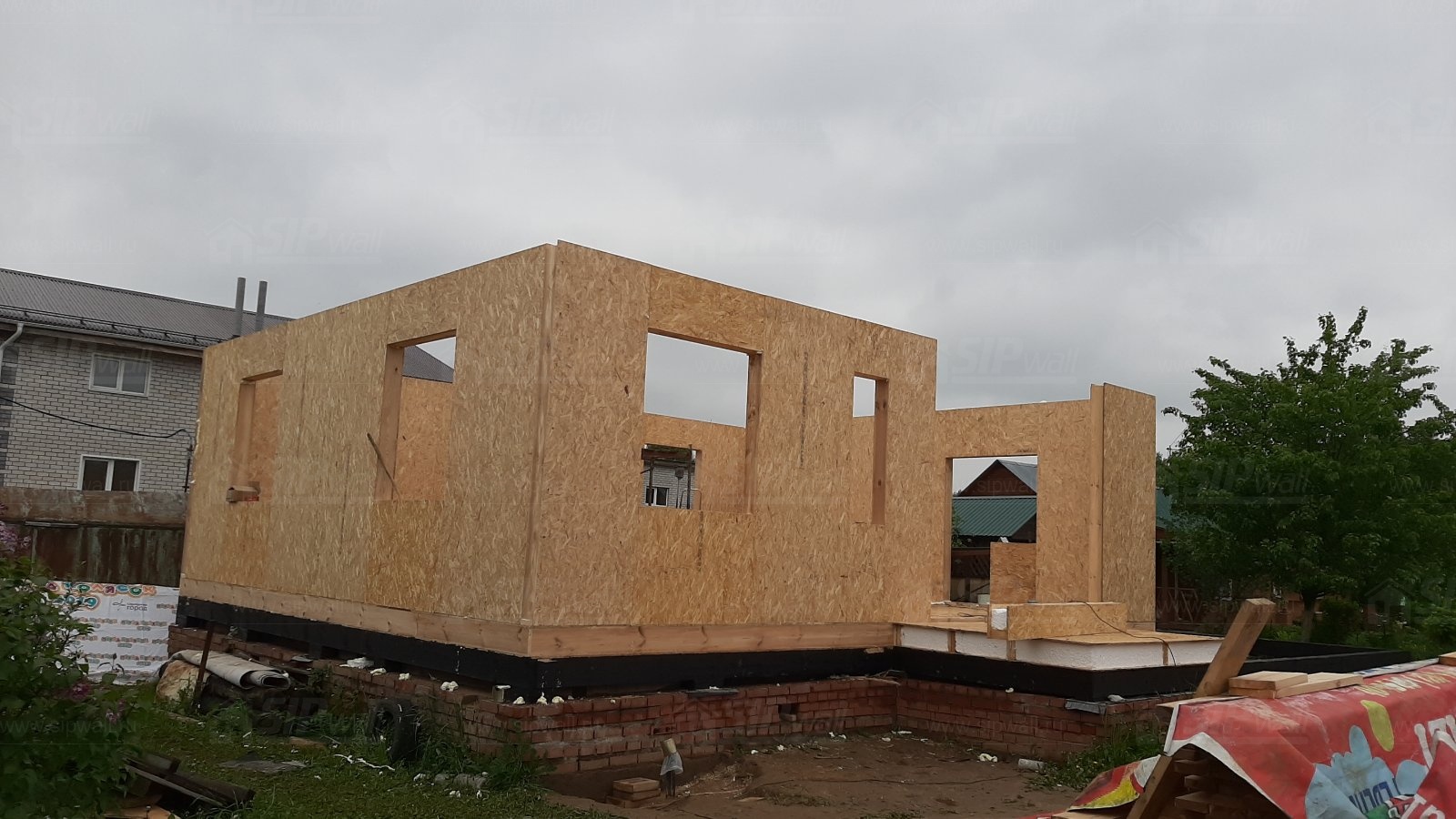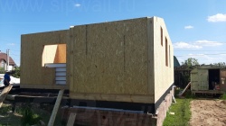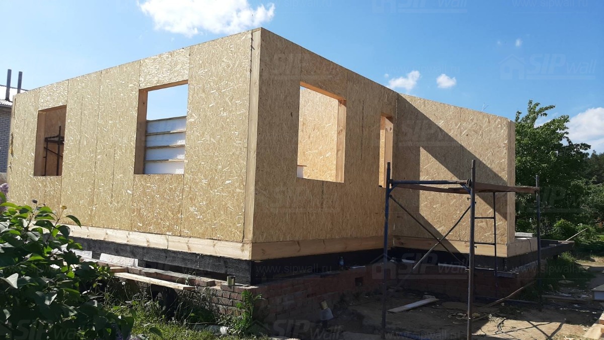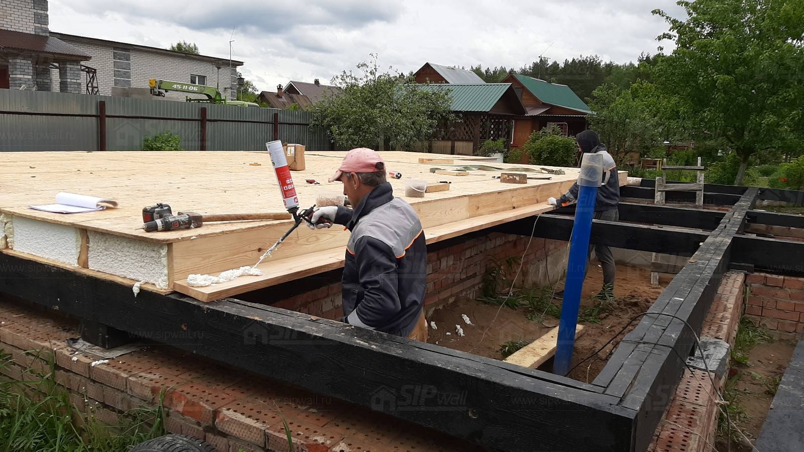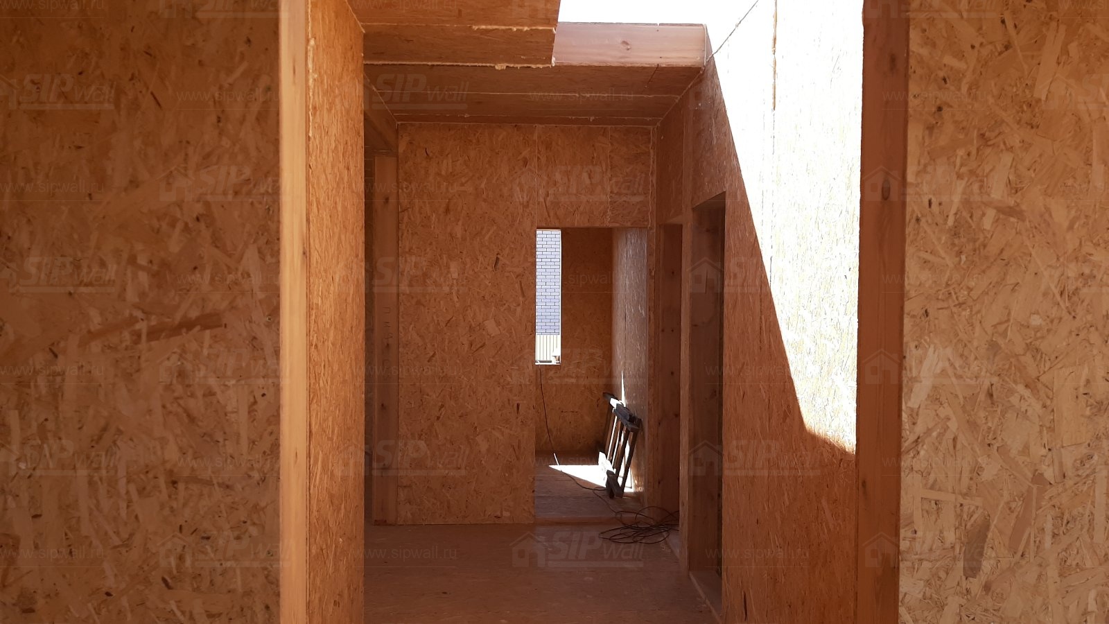 Все СИП панели SIPwall толщиной 224/174/124 мм (плиты OSB-3 толщиной 12 мм "Калевала" Россия и фасадный пенополистирол ППС-14 толщиной 200/150/100 мм производства, Россия) нарезаны и обрусованы сухим строганным брусом камерной сушки в соответствии с проектной документацией.
