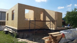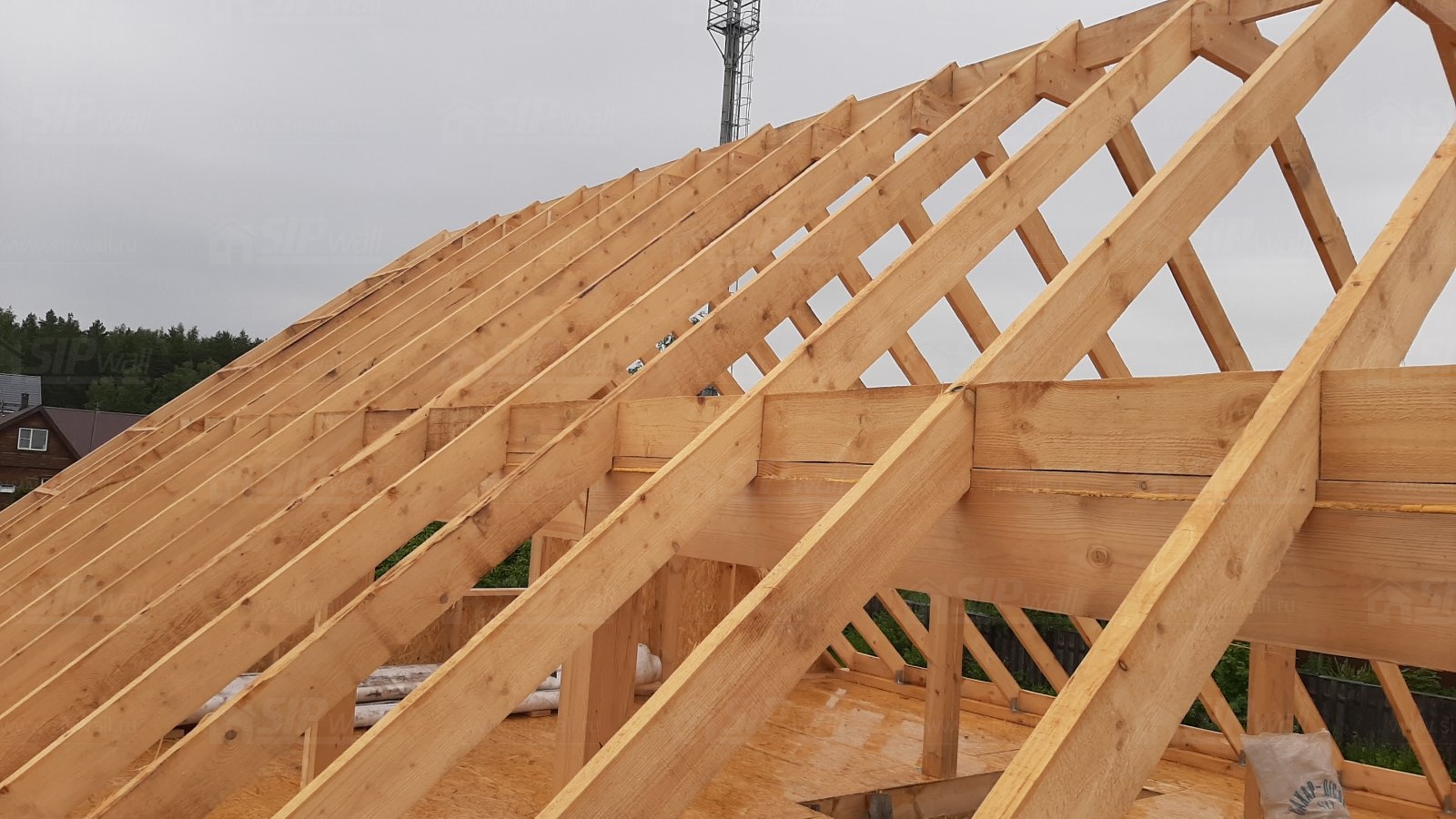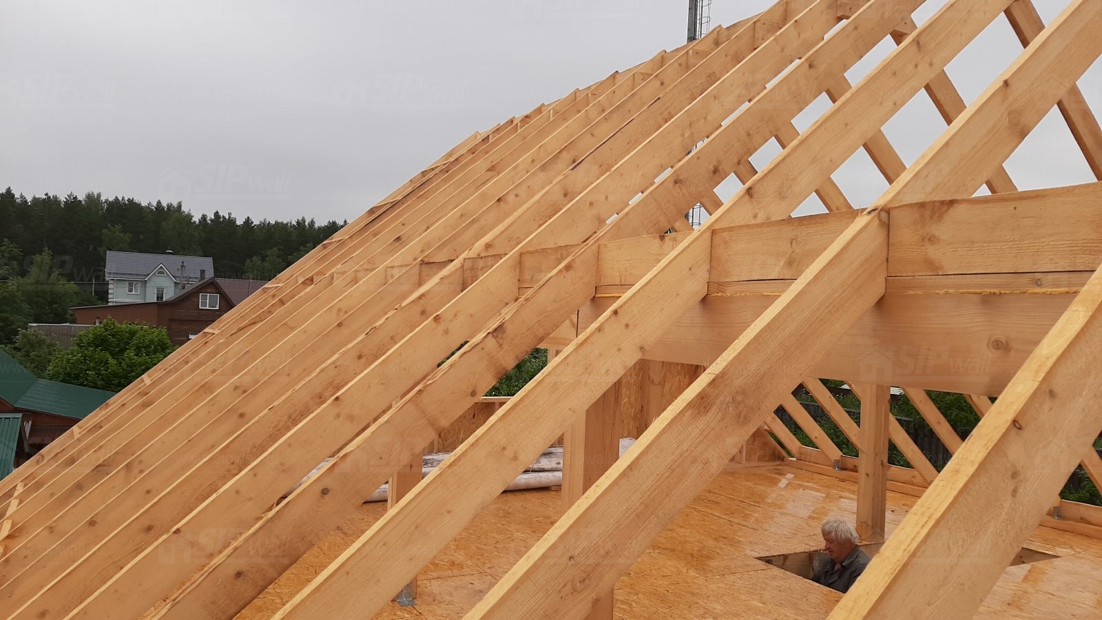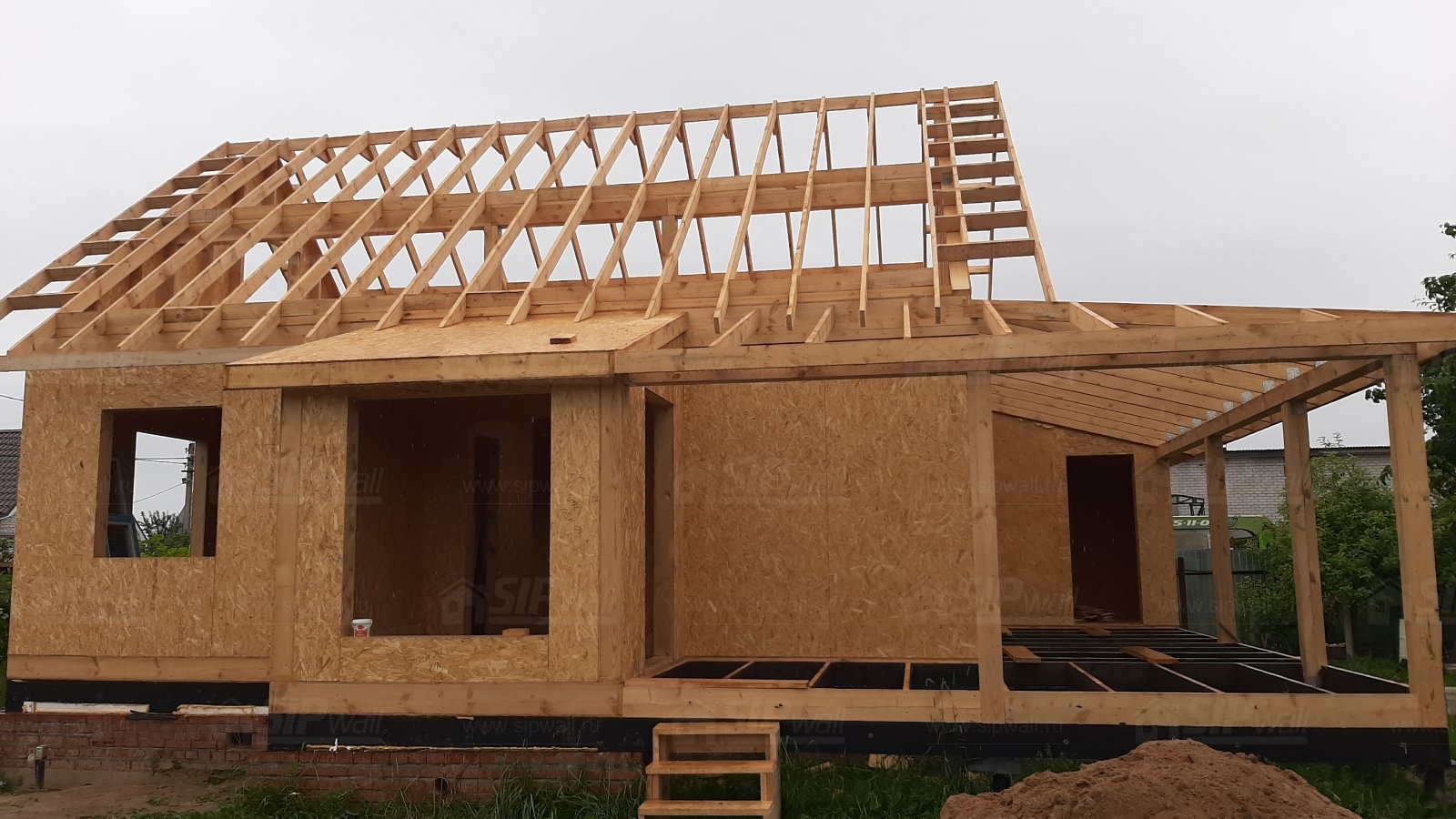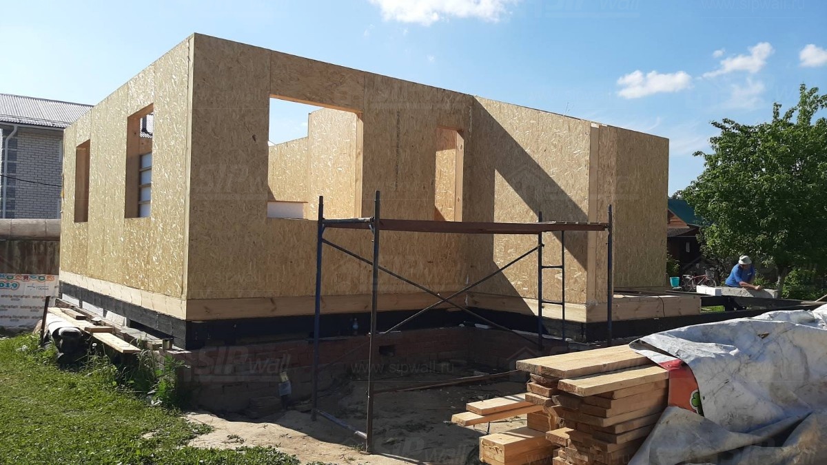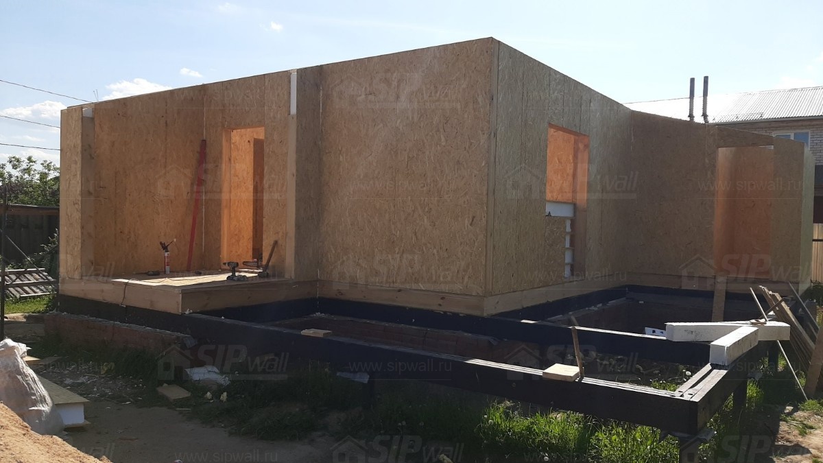 Все СИП панели SIPwall толщиной 224/174/124 мм (плиты OSB-3 толщиной 12 мм "Калевала" Россия и фасадный пенополистирол ППС-14 толщиной 200/150/100 мм производства, Россия) нарезаны и обрусованы сухим строганным брусом камерной сушки в соответствии с проектной документацией.